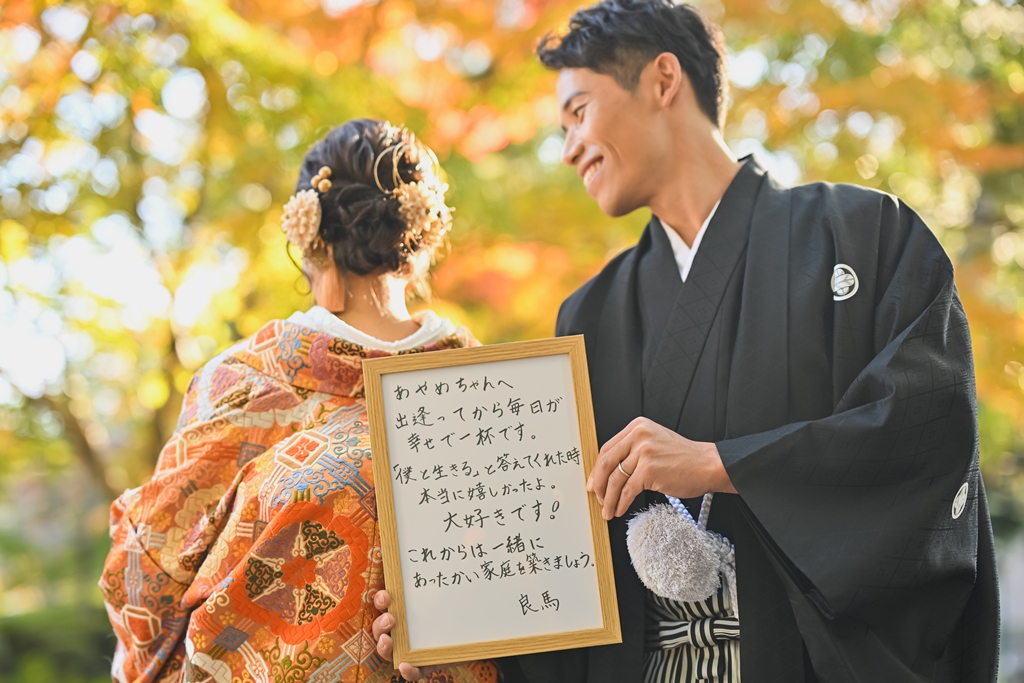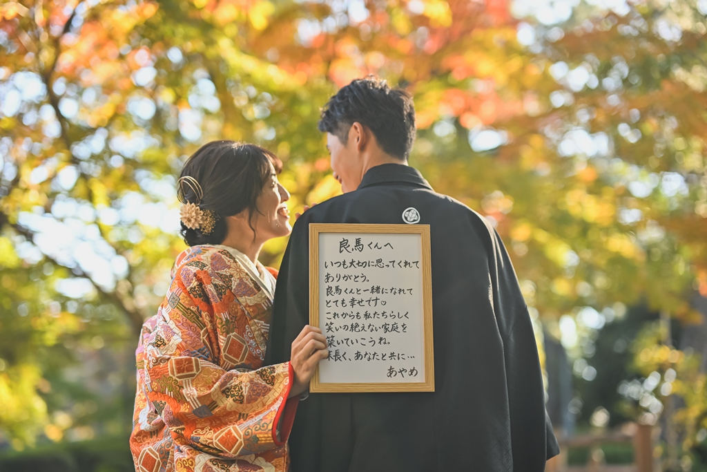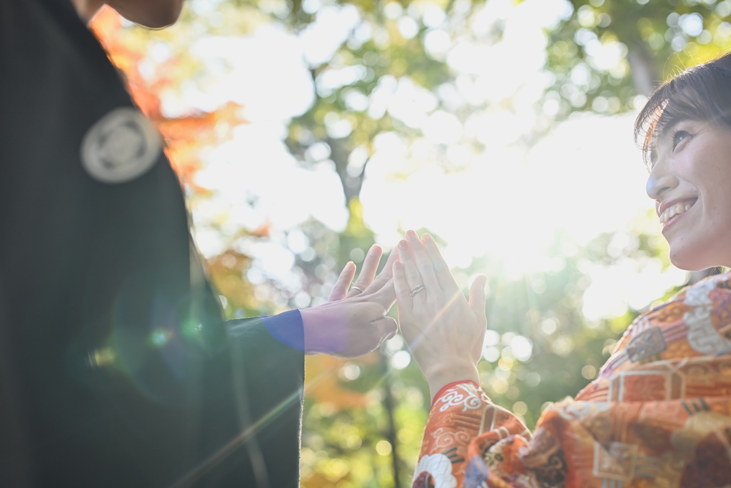- We took a photo shoot of a kimono. The autumn leaves matched the kimono, and it was very beautiful. We were very satisfied with the way the accessories we brought were used in the shoot. The photographer, the dresser, and the air makeup artist were all in a fun atmosphere, so we were able to relax and not be nervous.