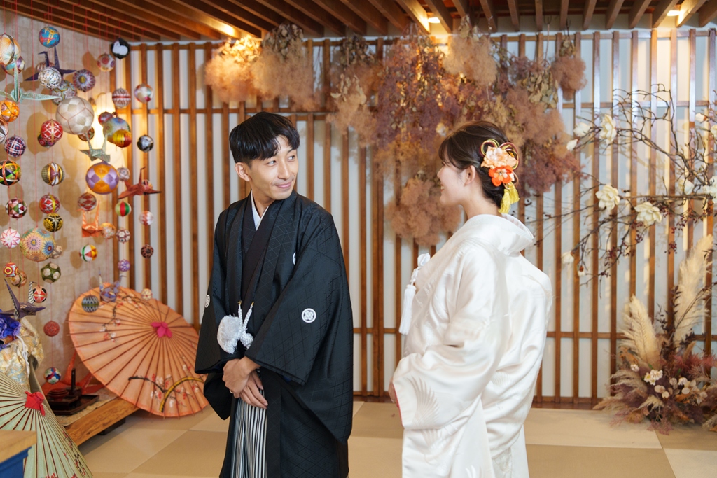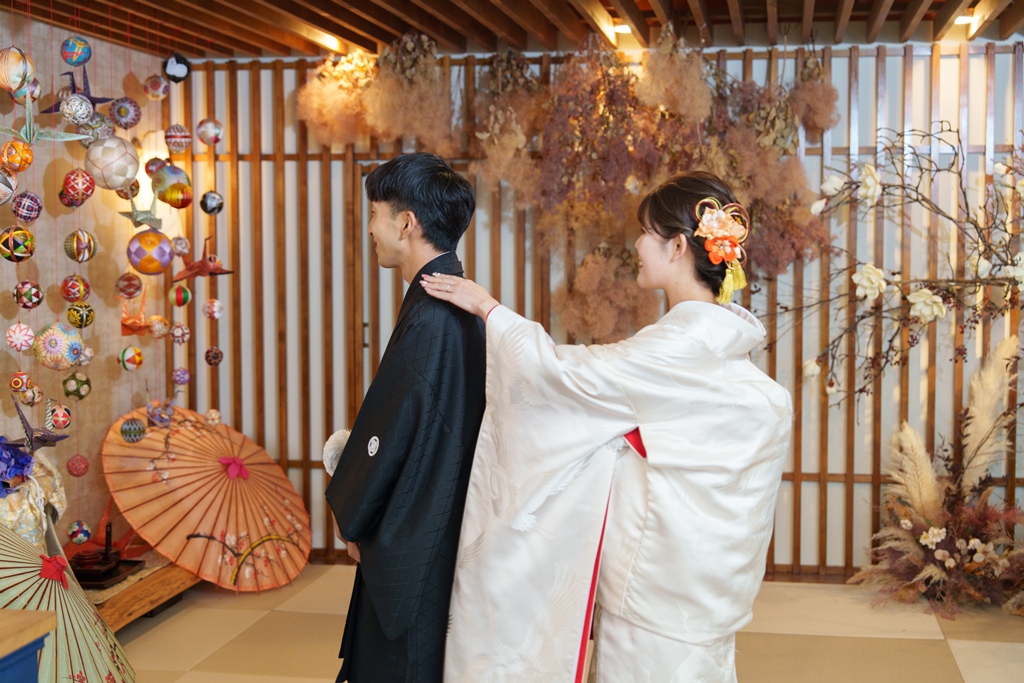 The elegance and subtlety of traditional attire, combined with your individuality and feelings, resulted in each photo telling its own story.The pure white of the shiromuku, the vivid colors of the iro-uchikake, and your dignified posture—all shone alongside your smiles.