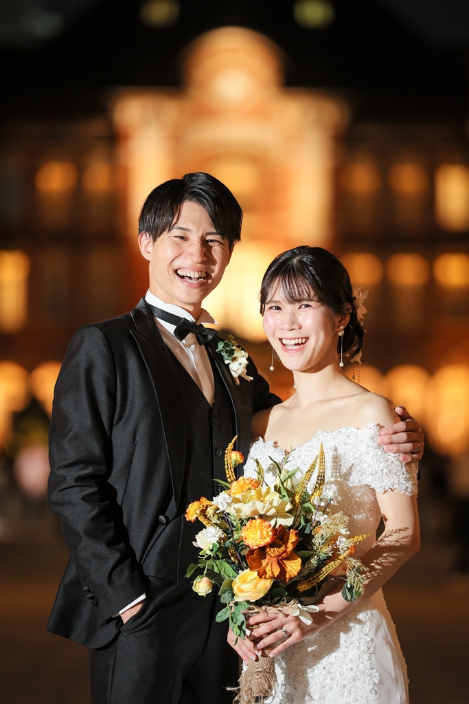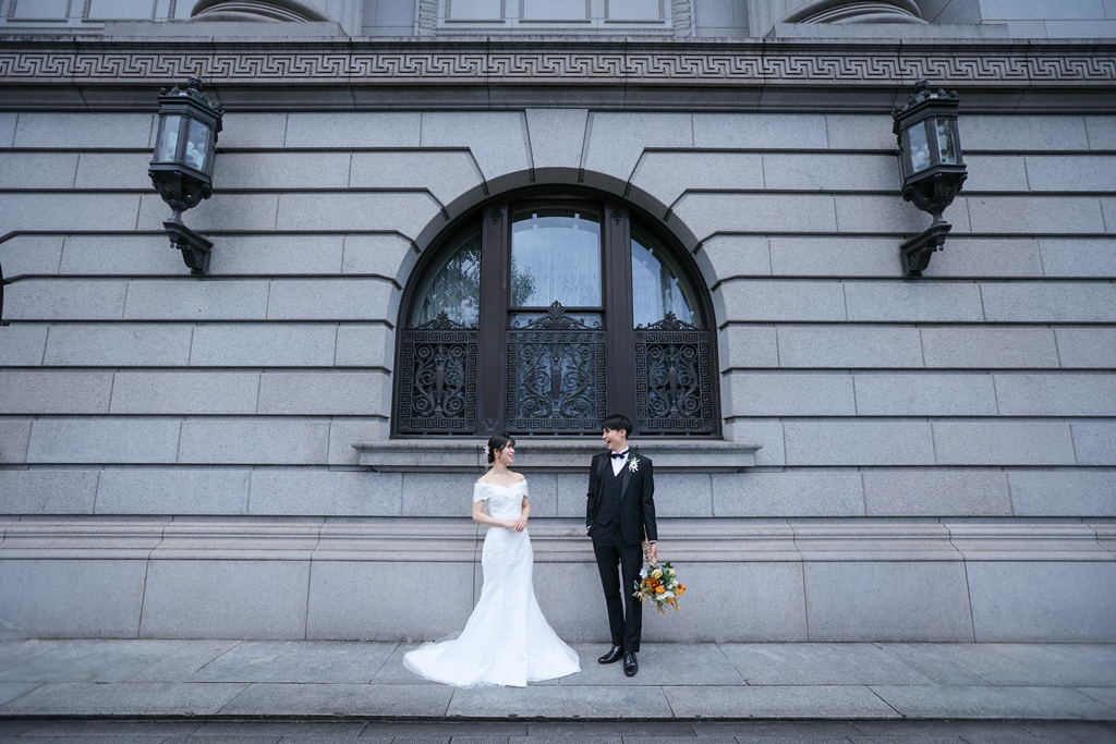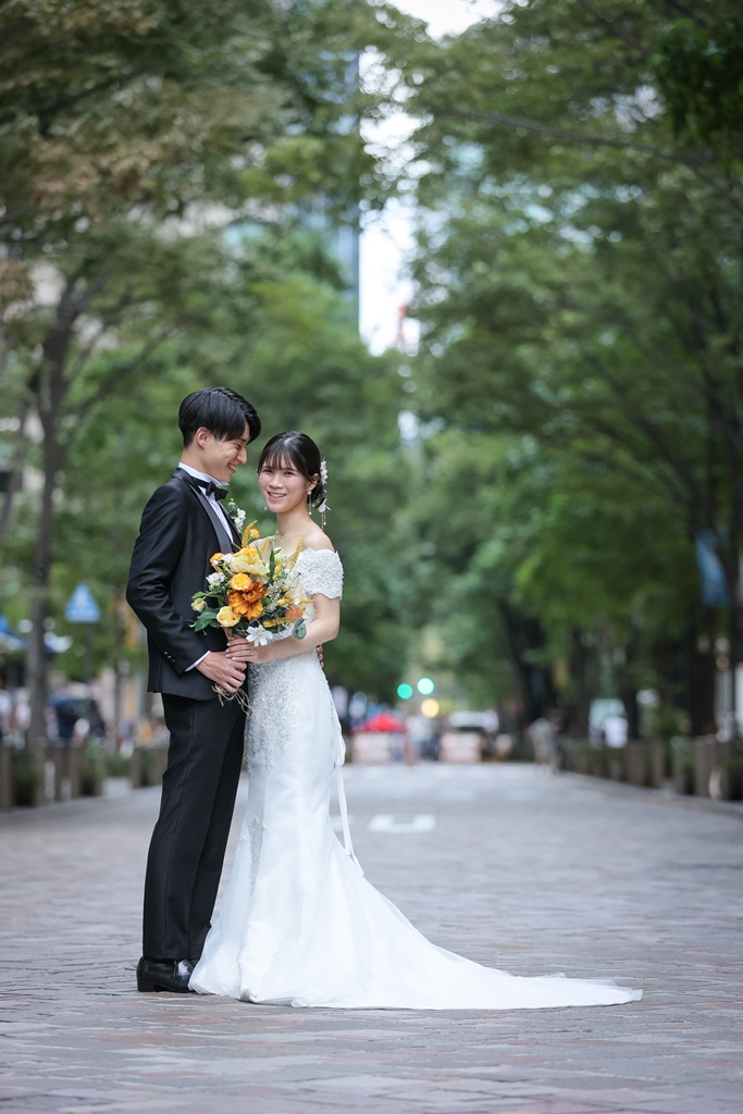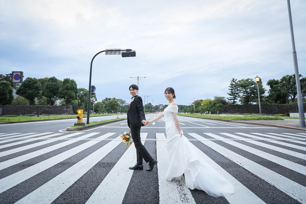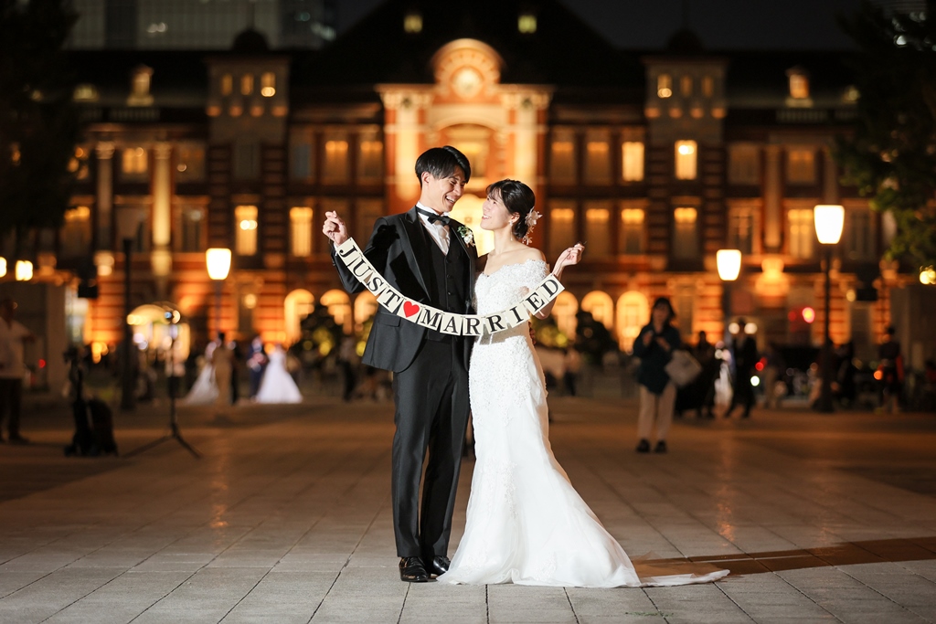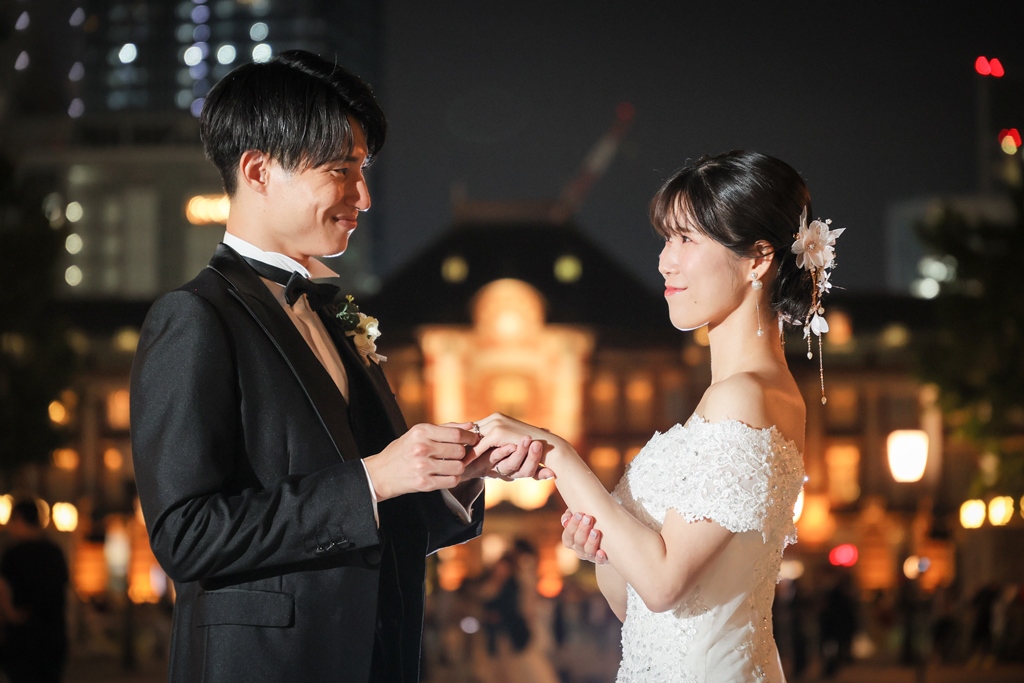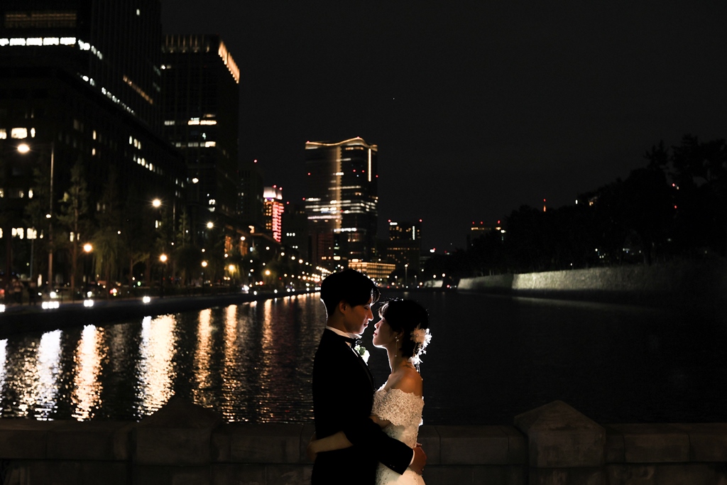 Your Western-style photoshoot at Tokyo Station—truly, great work and thank you for your effort!The silhouette of you two glowing amidst the Marunouchi nightscape was simply stunning. From the shot along the lush green-lined Naka-dori to the elegant atmosphere captured at Wadakura Gate, we were able to bring various concepts to life.