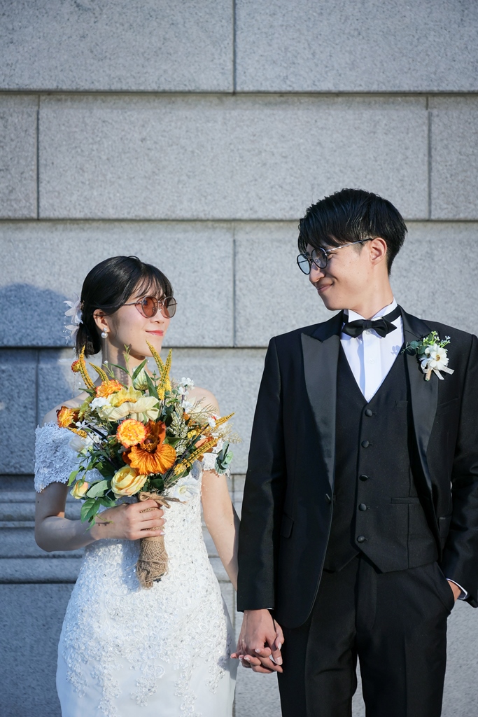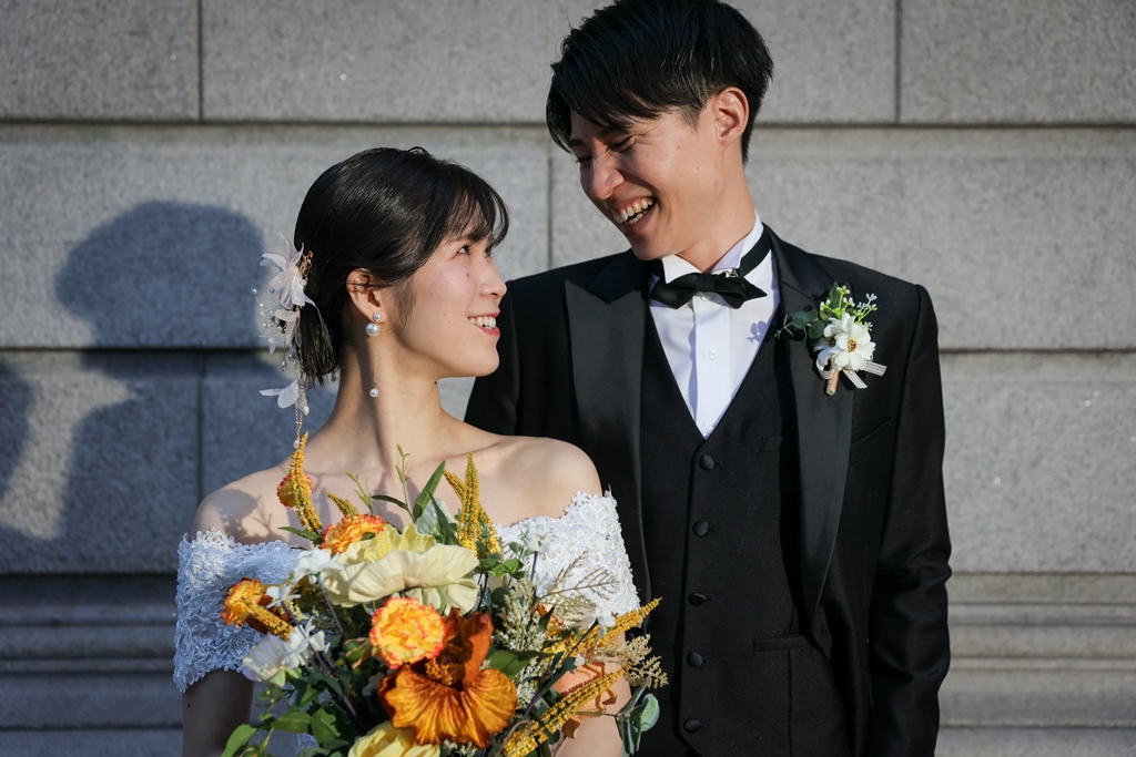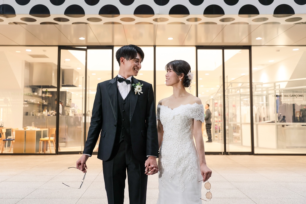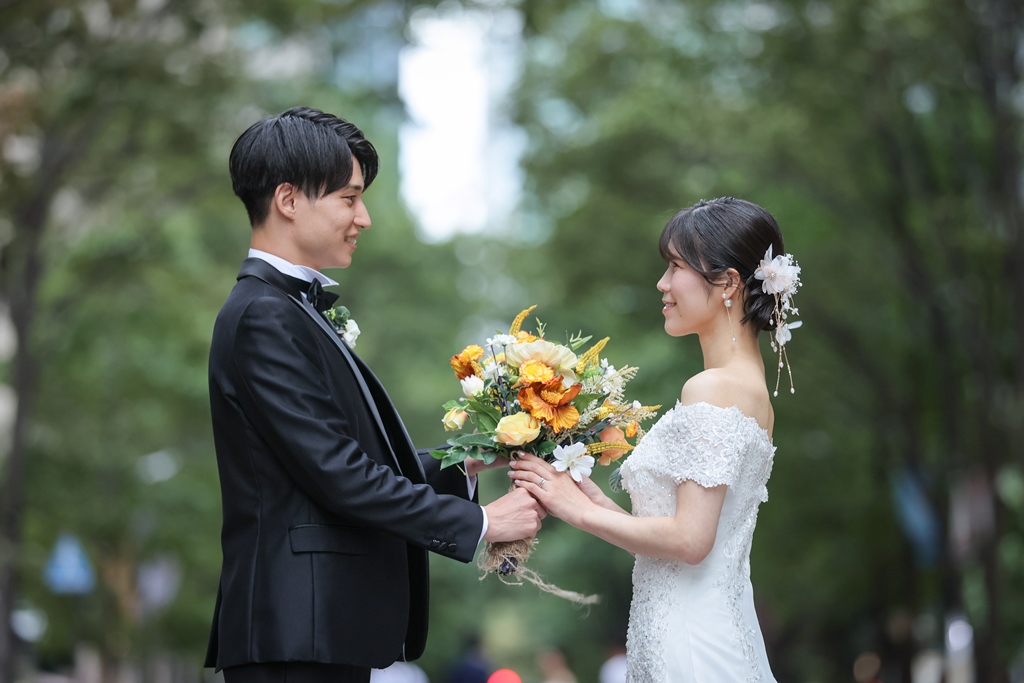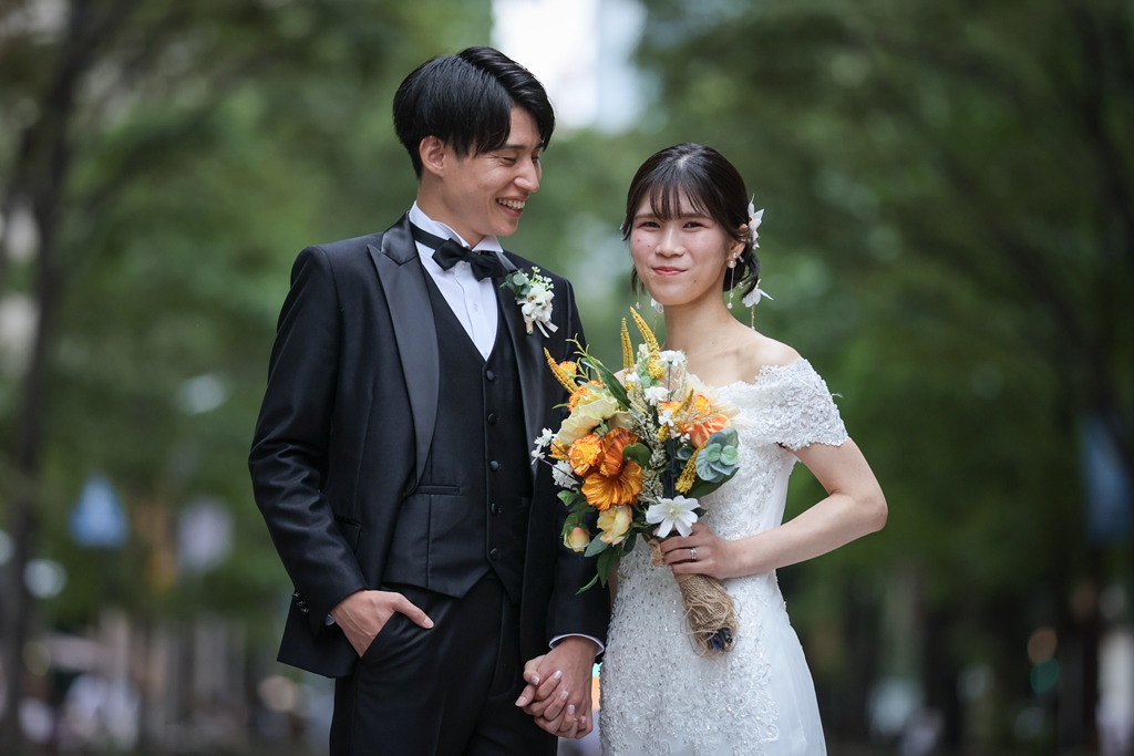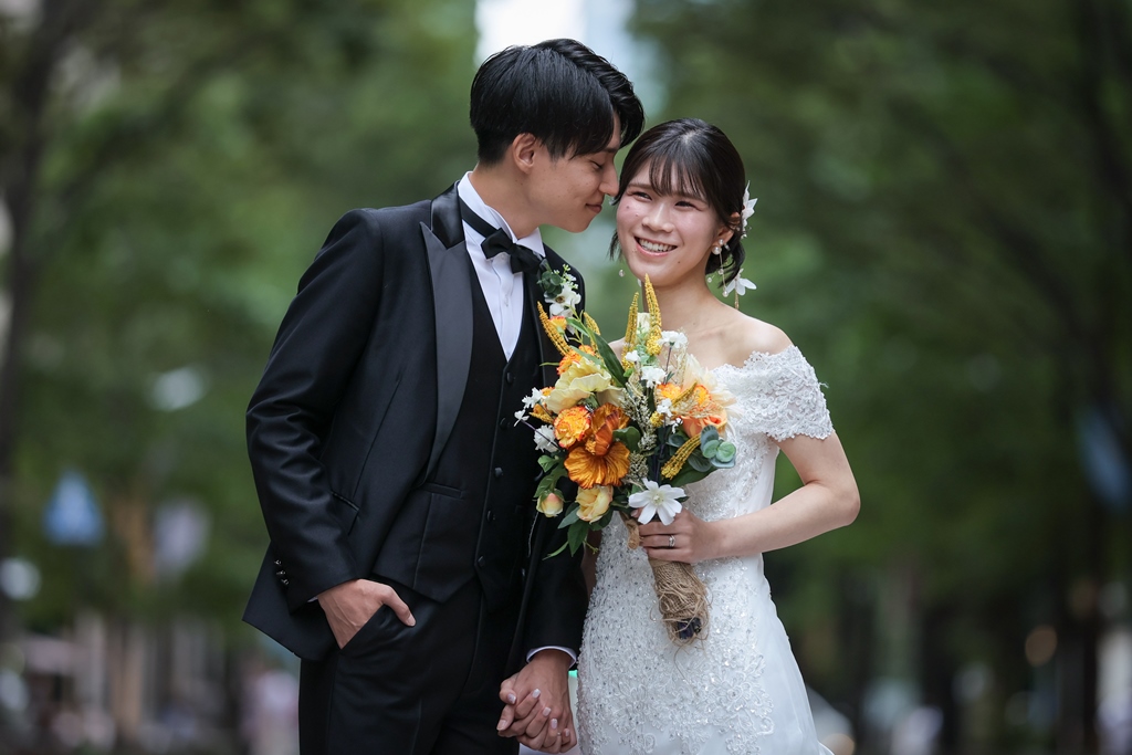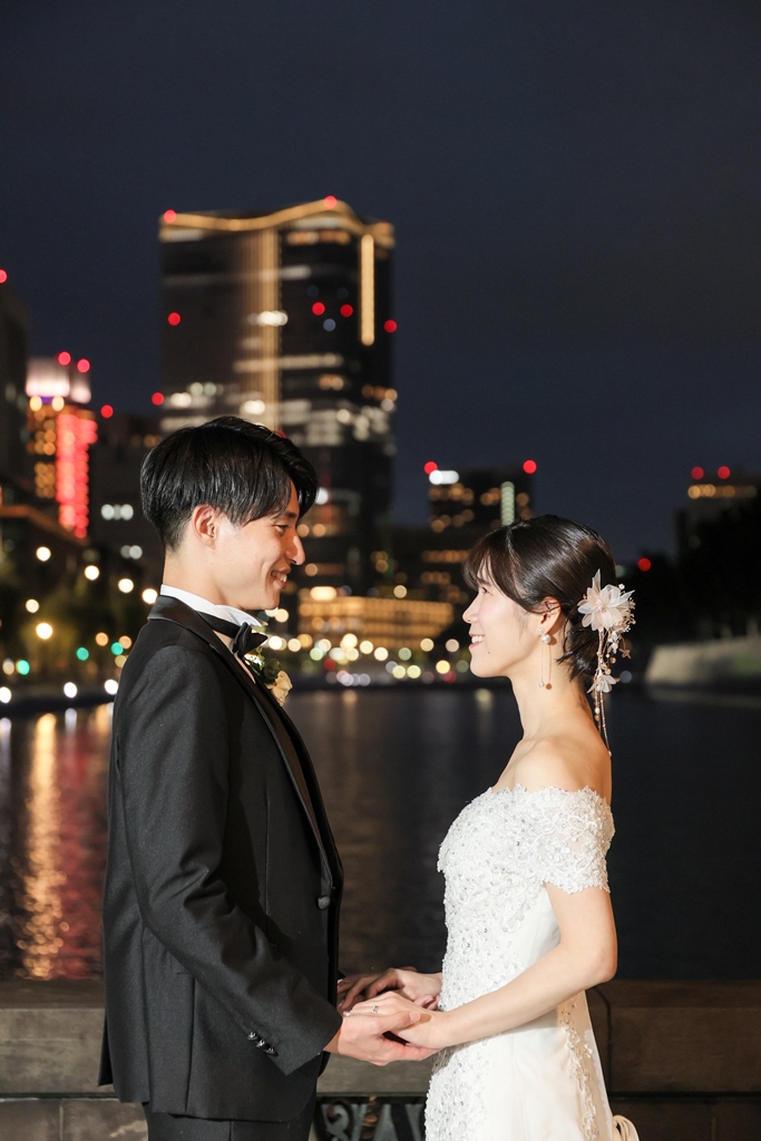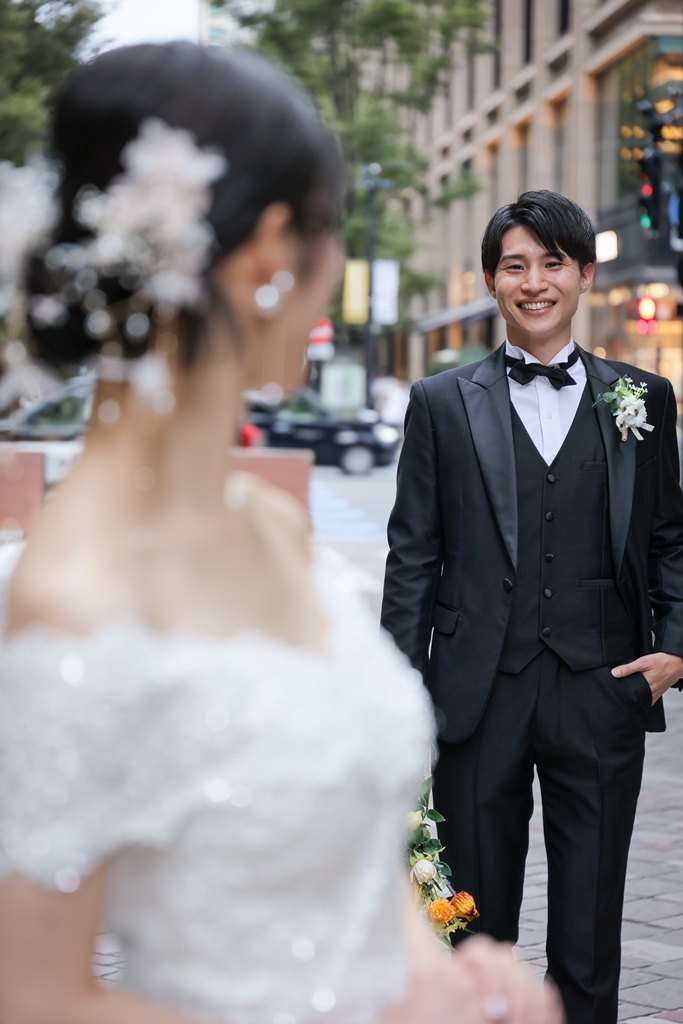 Your Western-style photoshoot at Tokyo Station—truly, great work and thank you for your effort!The silhouette of you two glowing amidst the Marunouchi nightscape was simply stunning. From the shot along the lush green-lined Naka-dori to the elegant atmosphere captured at Wadakura Gate, we were able to bring various concepts to life.