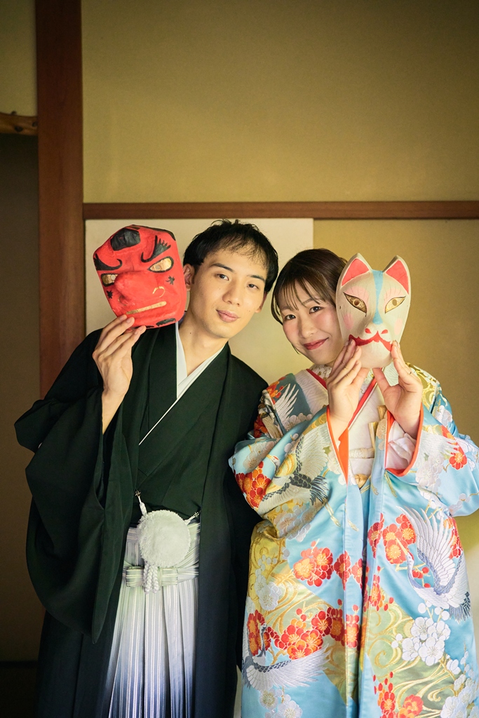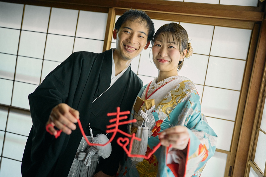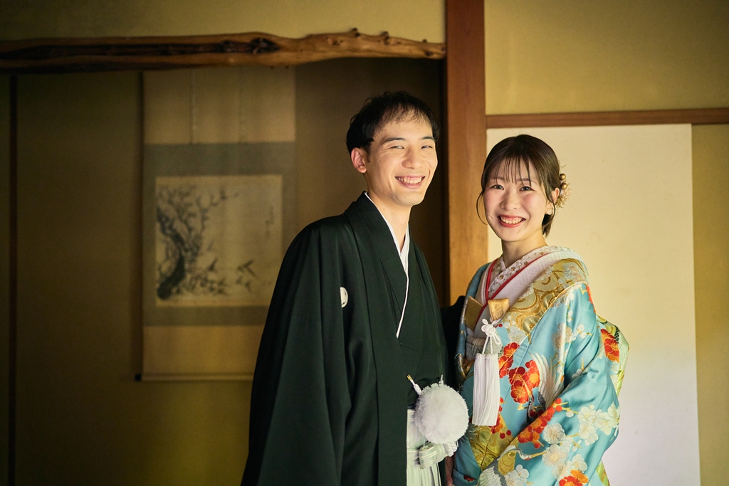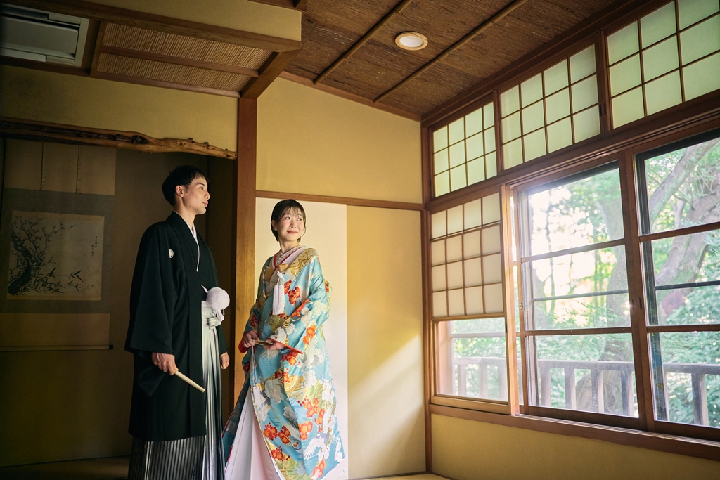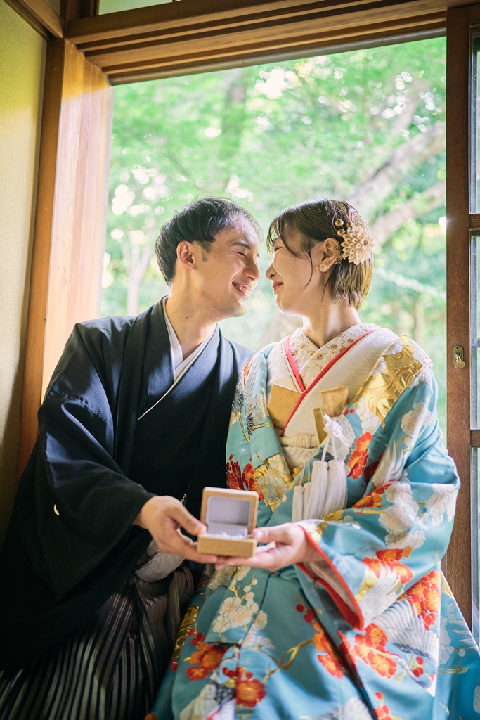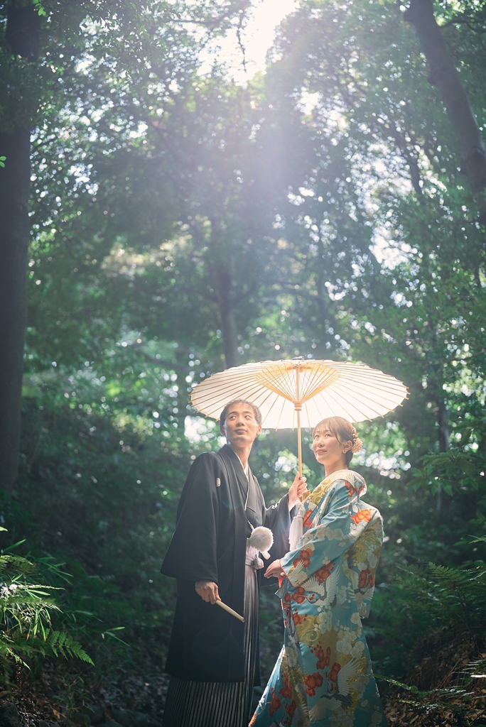 Your soft glances, natural smiles, and the way you held each other’s hands harmonized with the tranquil atmosphere, creating a timeless story captured in both photos and video.The pure white of the shiromuku and the vibrant colors of the iro-uchikake blended beautifully with the garden’s greenery and seasonal colors, making every single shot breathtaking.