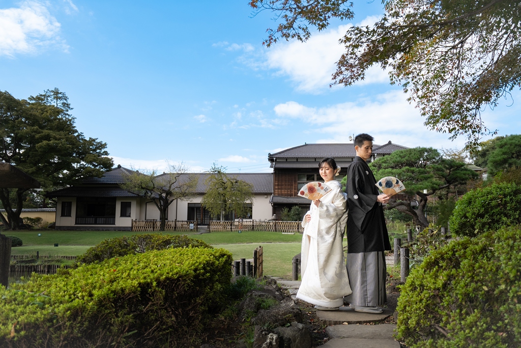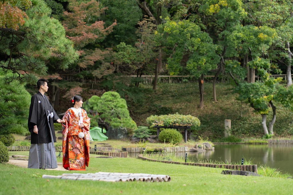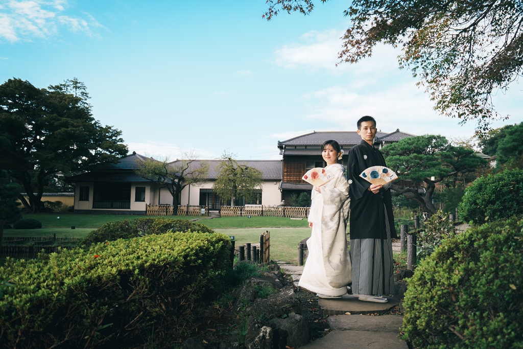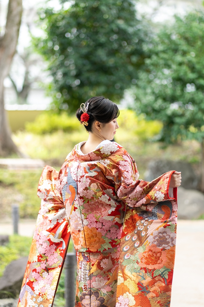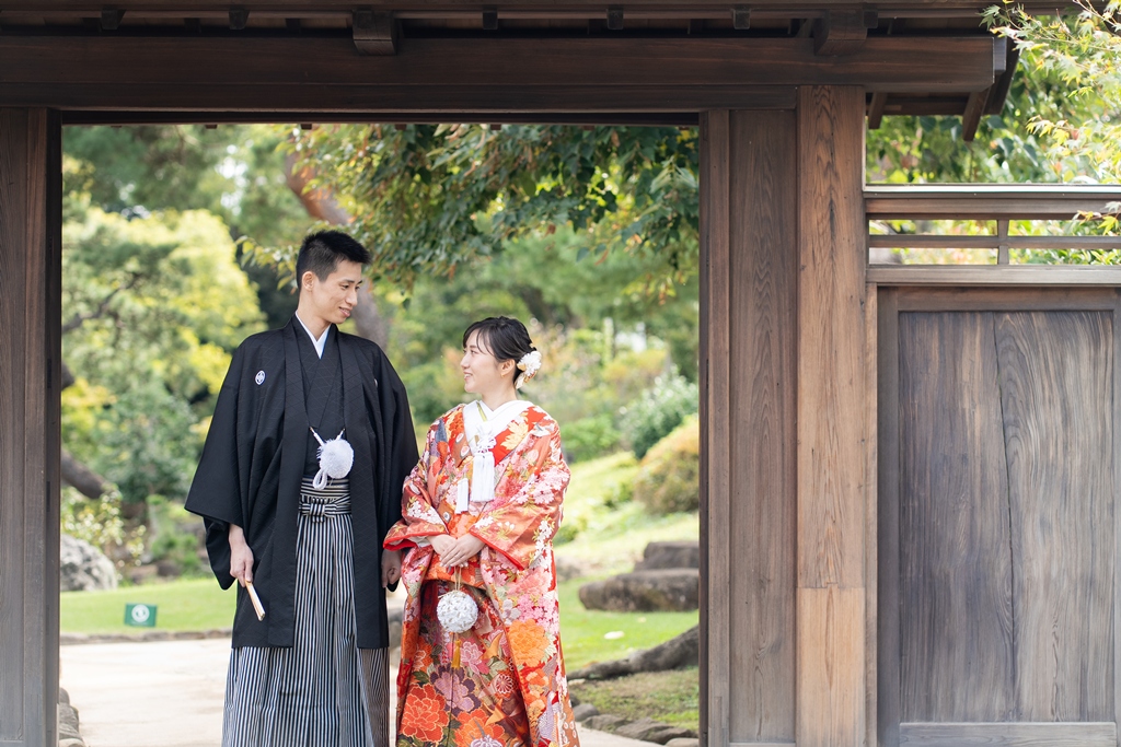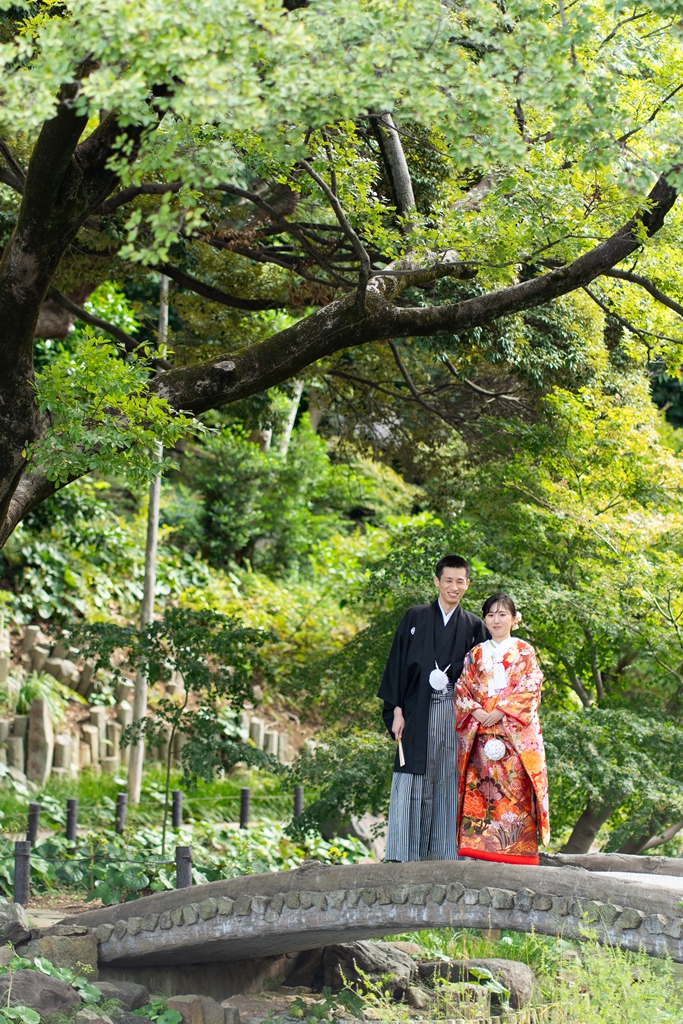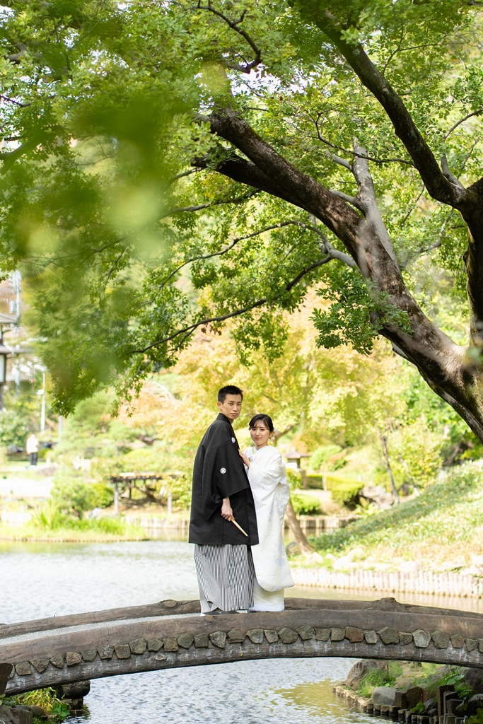 Thank you sincerely for entrusting us with such an important day.Seeing the two of you dressed in traditional attire within the calm and refined atmosphere of Higo-Hosokawa Garden was truly memorable. The beautifully maintained garden harmonized perfectly with your outfits, creating a serene and elegant time throughout the shoot.