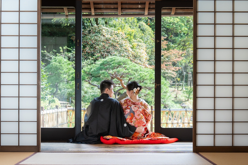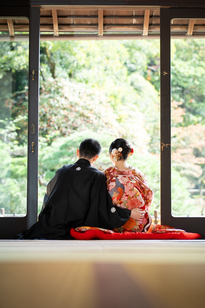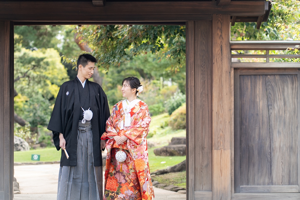 We wanted to take photos at a traditional Japanese location separate from our wedding ceremony. Since we wore a dress and jacket combination at the wedding, we had always hoped to try a photoshoot in traditional Japanese attire. The outfits we saw prior to the shoot were beautiful, which made us even more excited for the day. - FROM