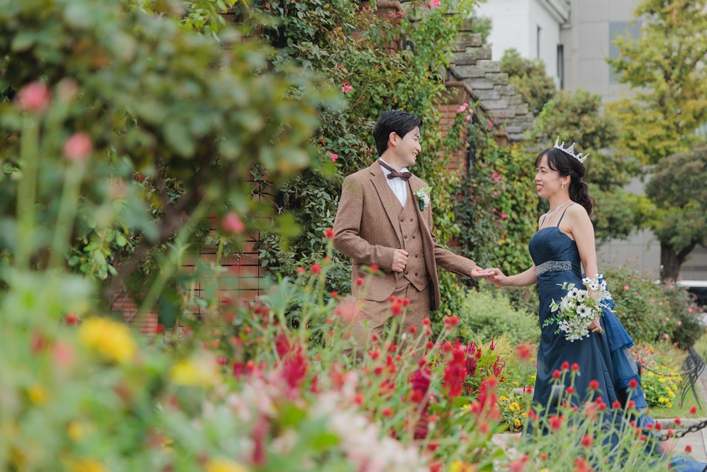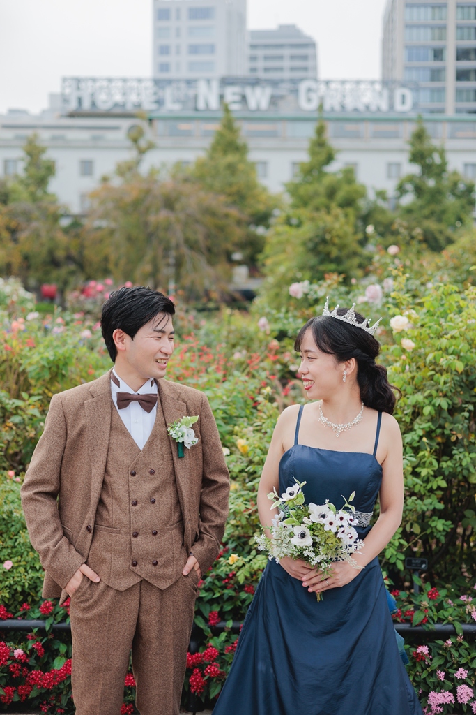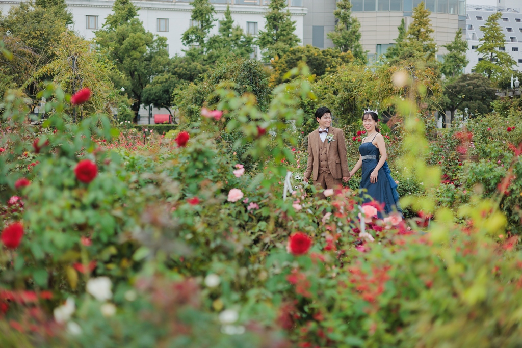 With its beautiful blend of ocean views and lush greenery, Yamashita Park offers the perfect combination of openness and romance that is unique to Yokohama. It was our sincere pleasure to capture your lovely appearance in such a wonderful location.On the day of the shoot, the gentle sea breeze and warm sunlight softly illuminated your dress and tuxedo. Walking along the seaside path, exchanging smiles in front of the rose gardens, and every natural moment between you both reflected your warm connection and created truly beautiful photographs.