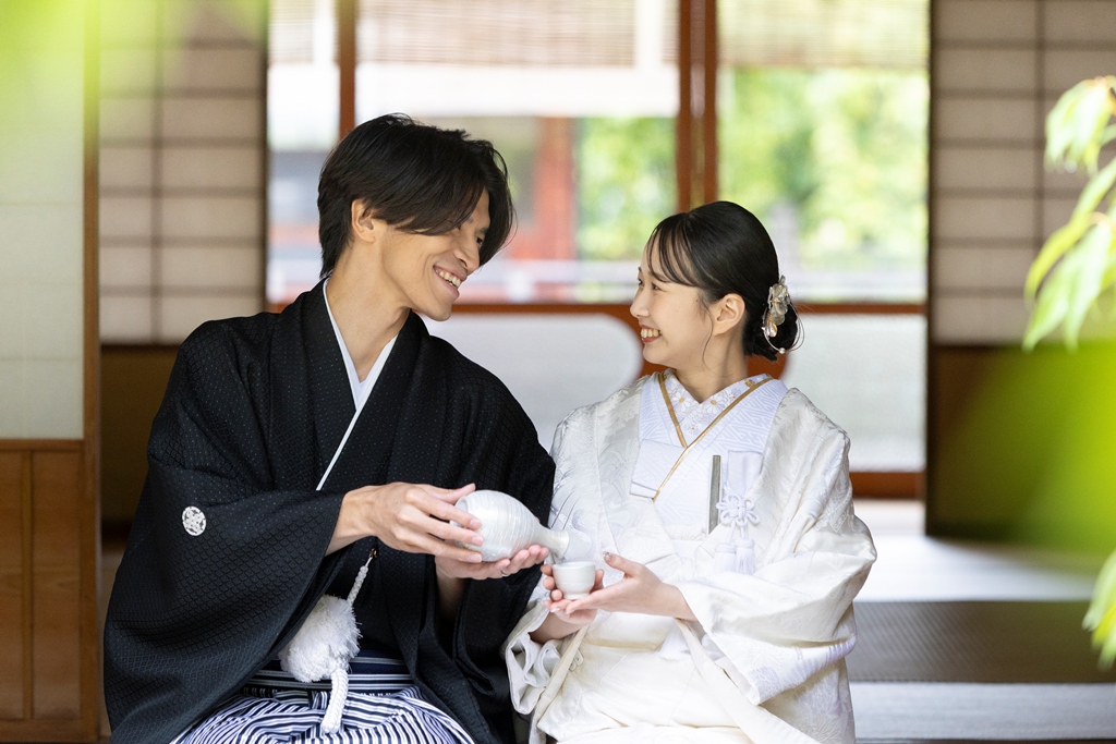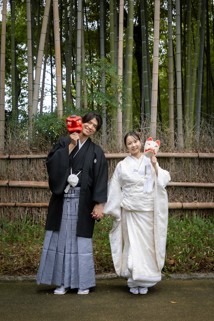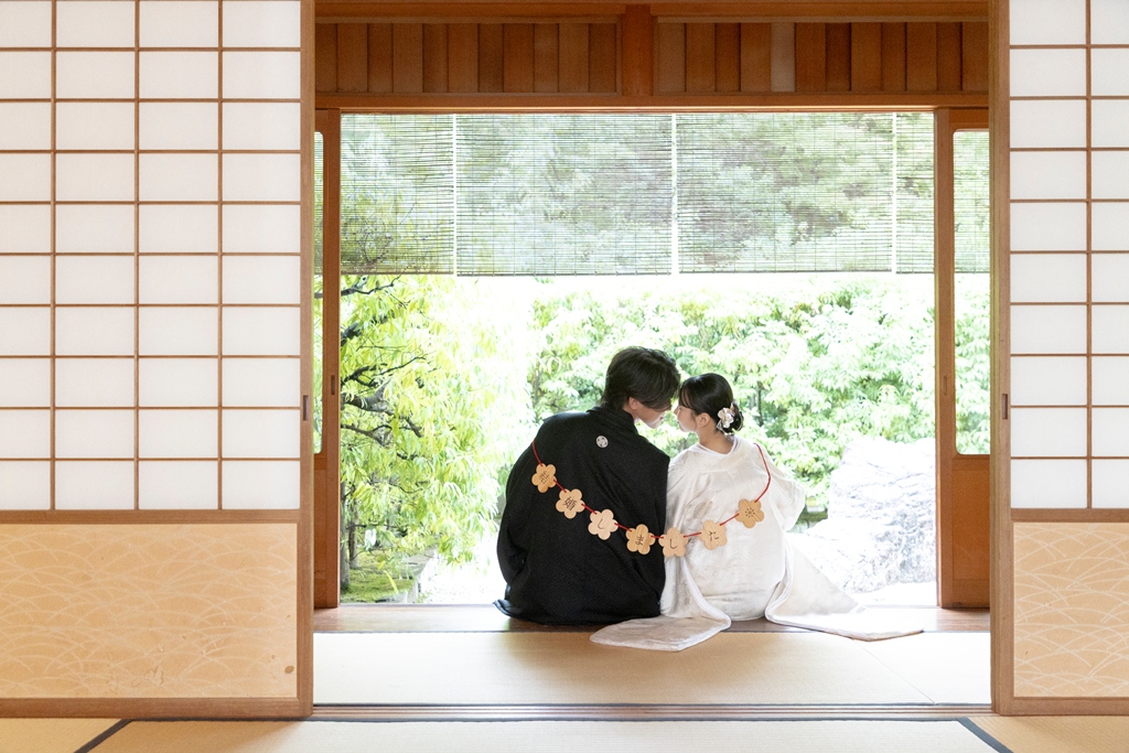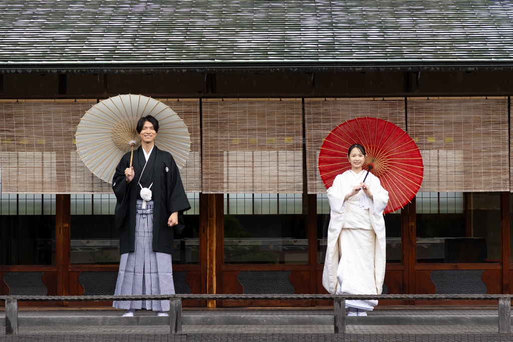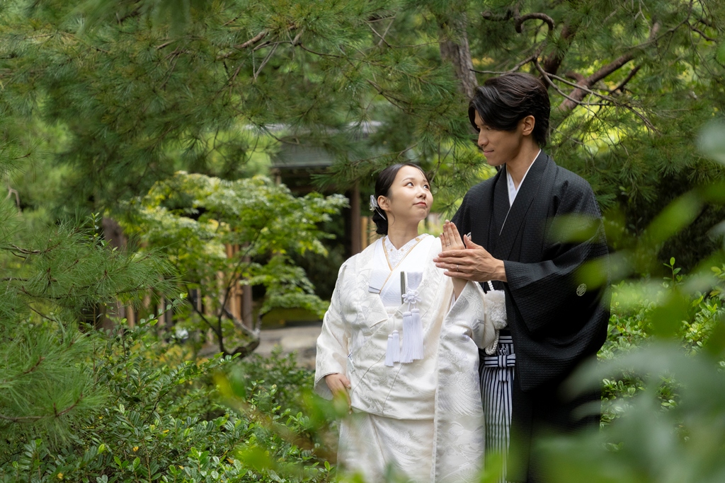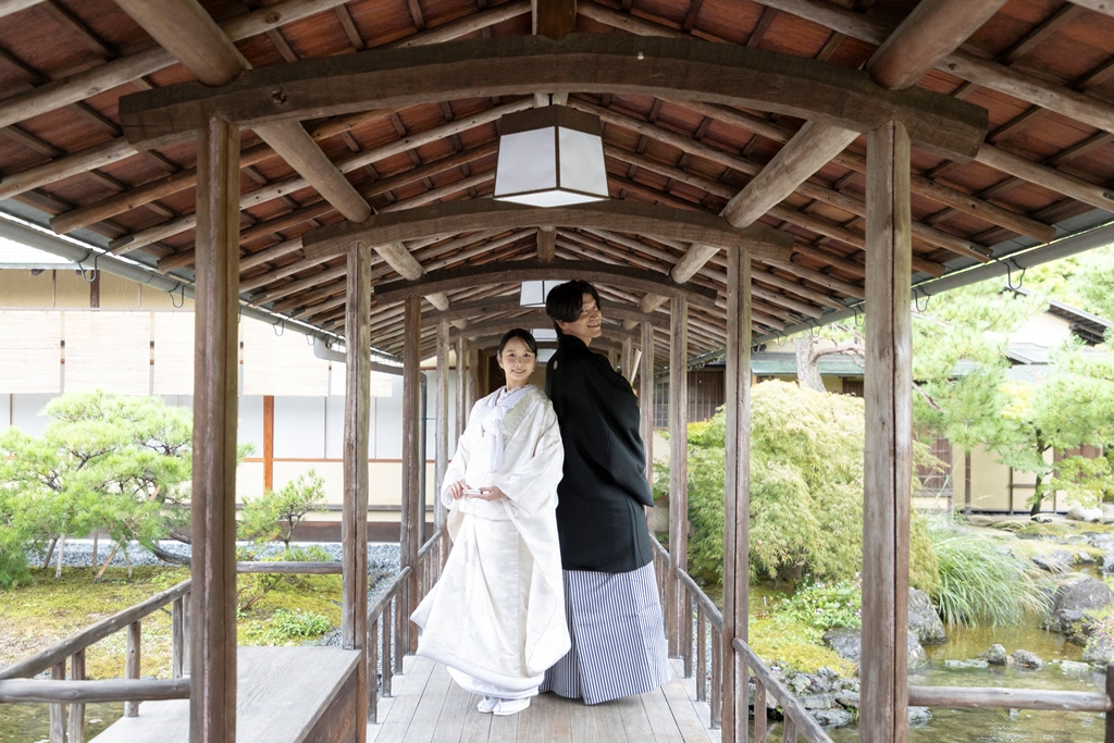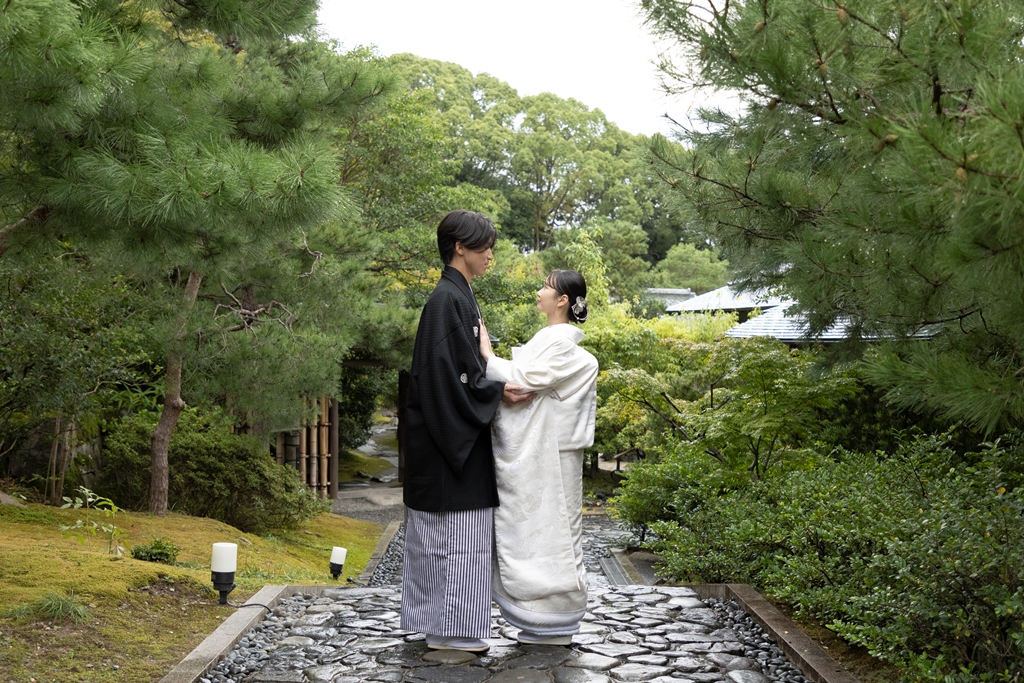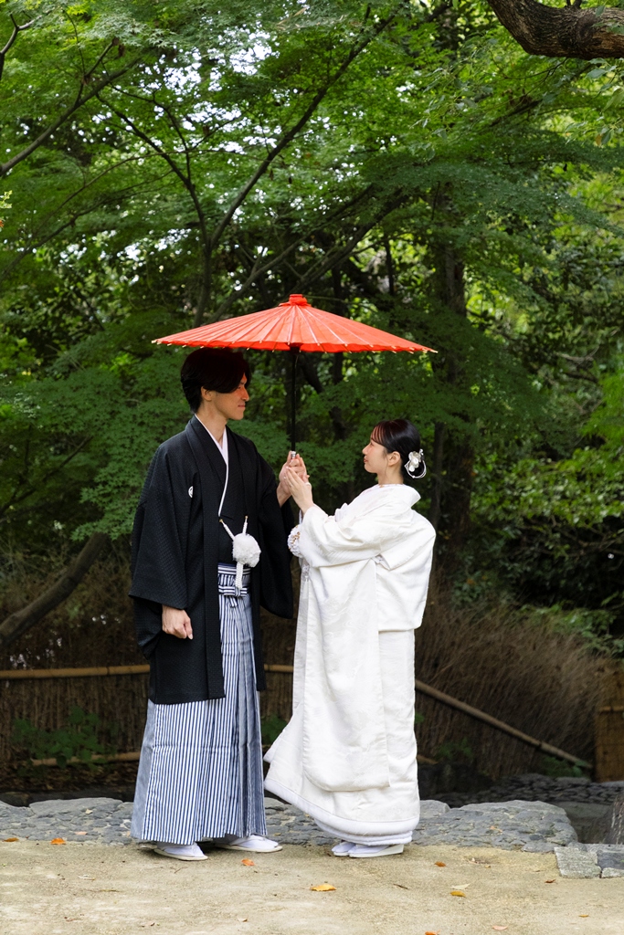 The sky reflected on the water’s surface, the soft shadows cast by the trees, the gentle sound of leaves swaying in the wind, and the quiet presence of traditional architecture — every element enhanced the beauty of your Japanese attire and created breathtaking scenery around you.During the shoot, your expressions as you walked side by side, the tender glances you shared, and the way your kimono sleeves swayed all conveyed the depth of the time you have spent together and the warmth of the future ahead.