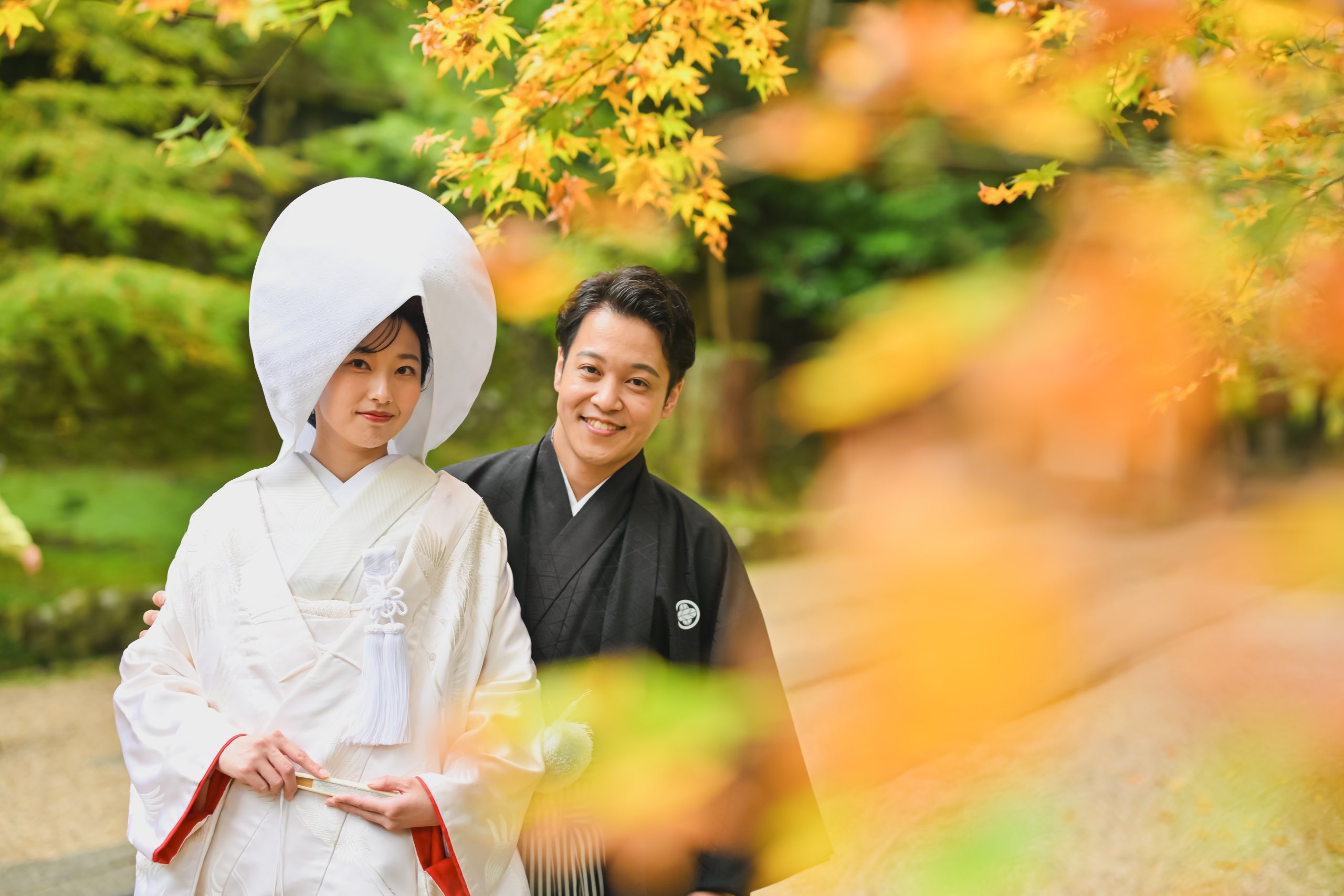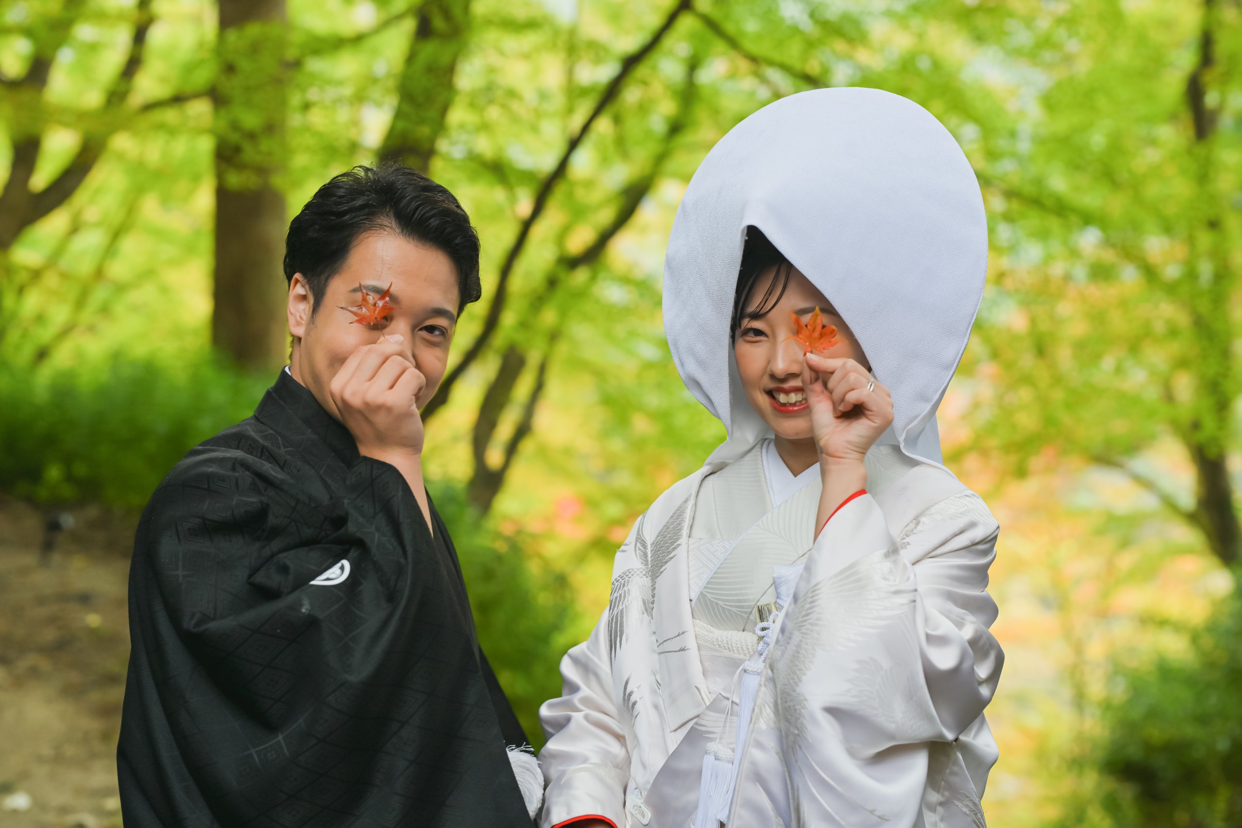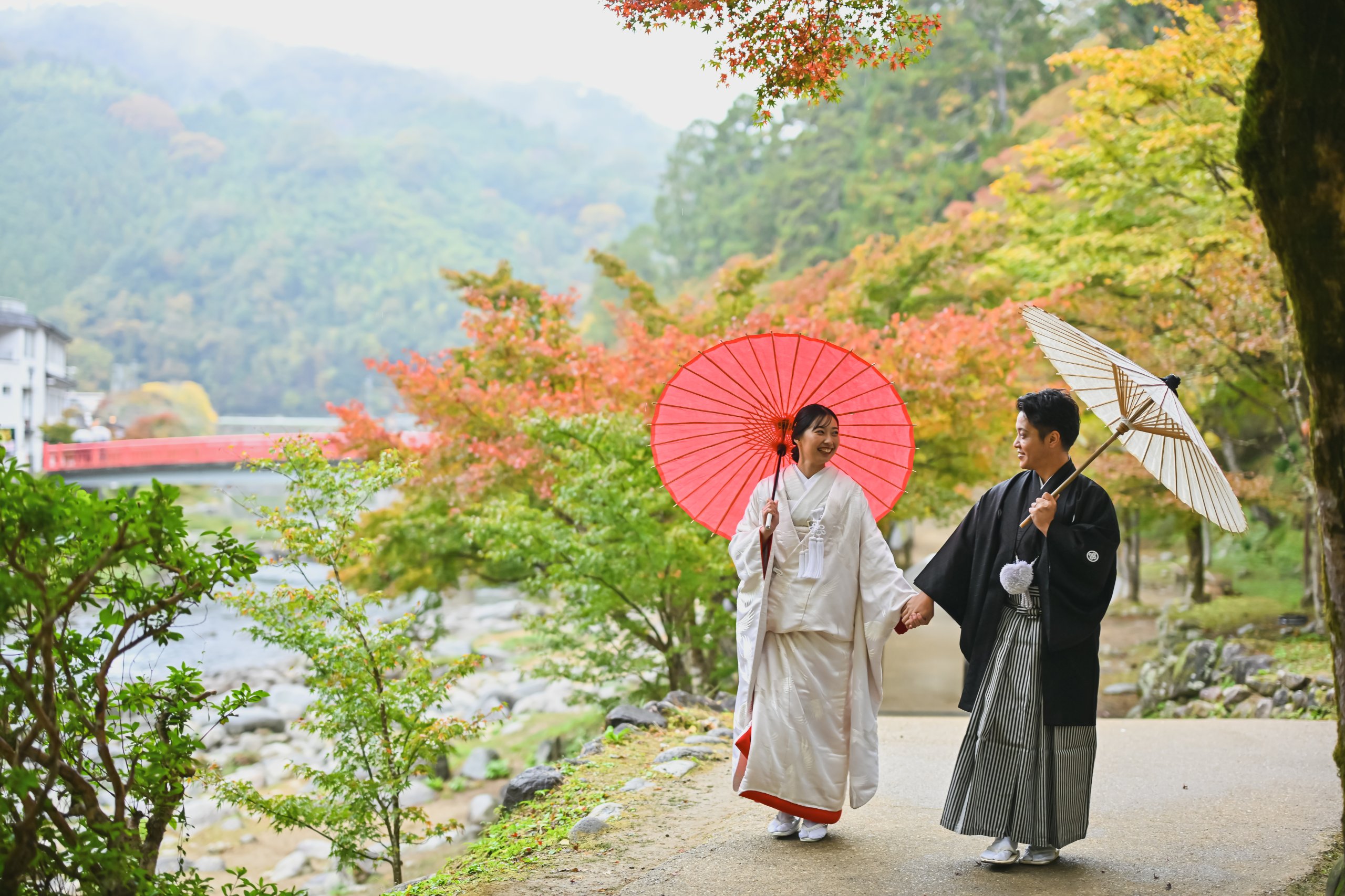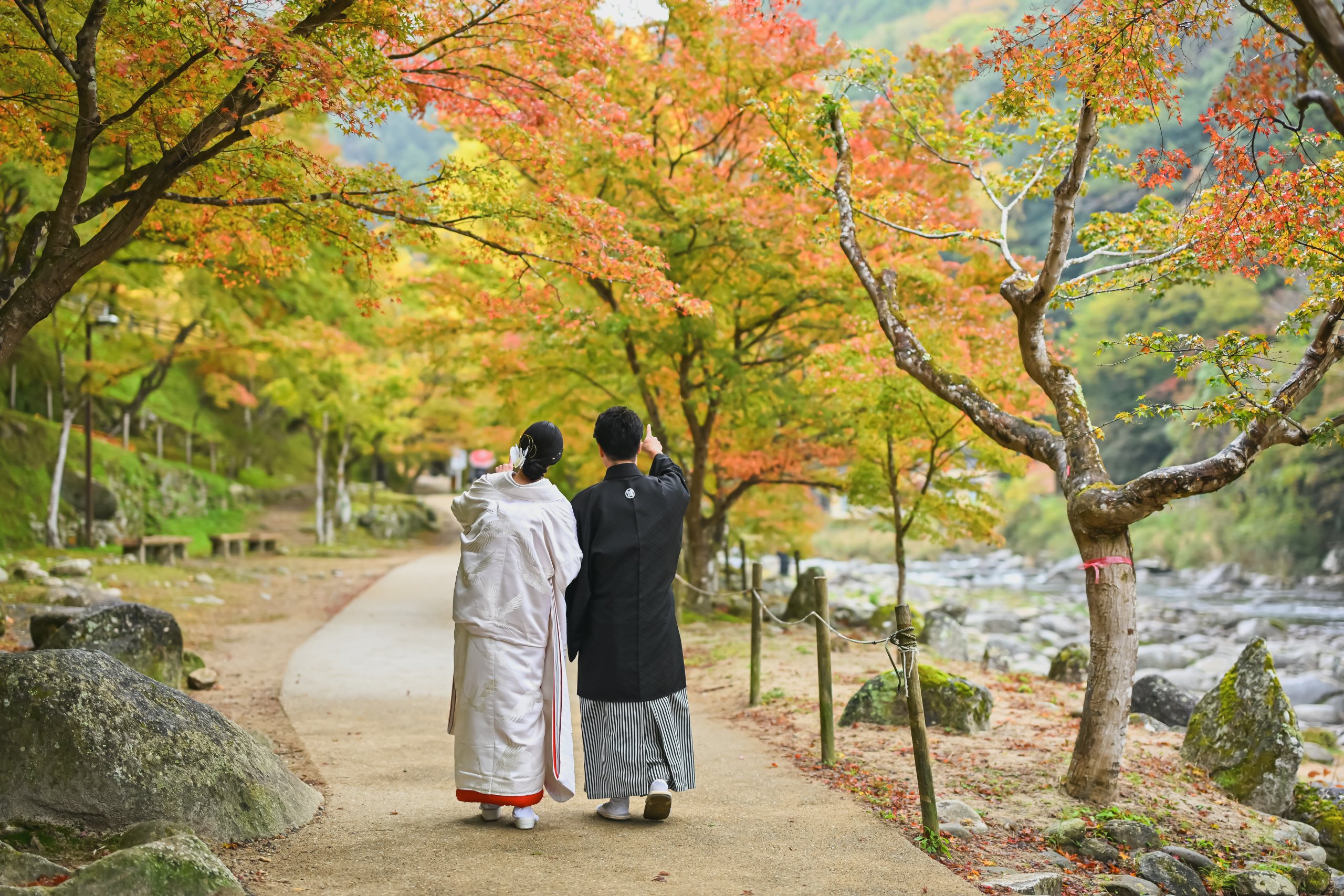 - We wanted to have a kimono pre-shoot at Korankei, a famous sightseeing spot for autumn foliage in Toyota City, and after searching around, we contacted THE SKY WEDDING because we found on the Internet and YouTube that there was a precedent of a pre-shoot at Korankei. After a phone meeting, I was able to get a concrete idea of what we were looking for and an image of what the shoot would look like on the day of the wedding, so we decided to request them to take the photos.