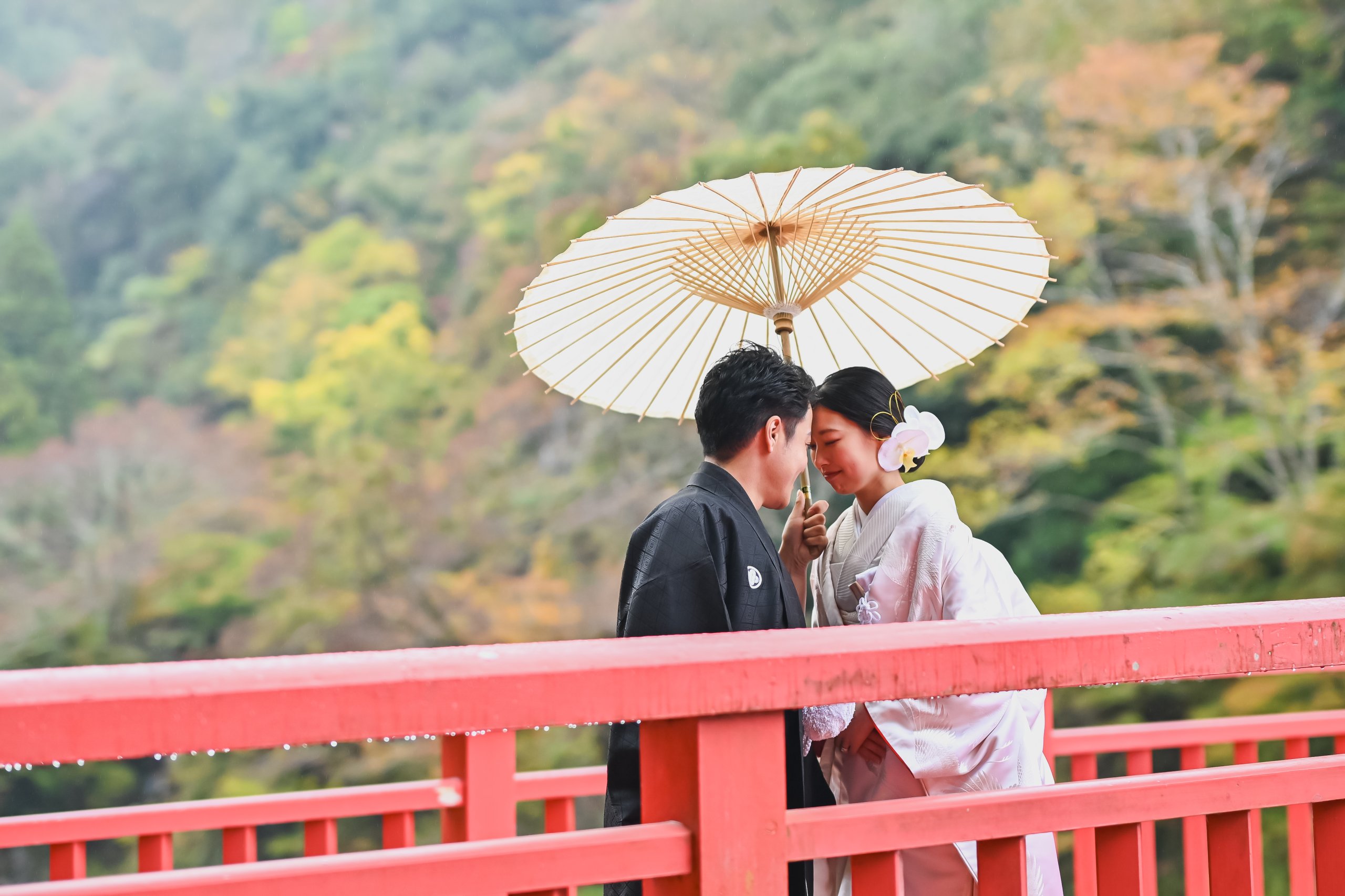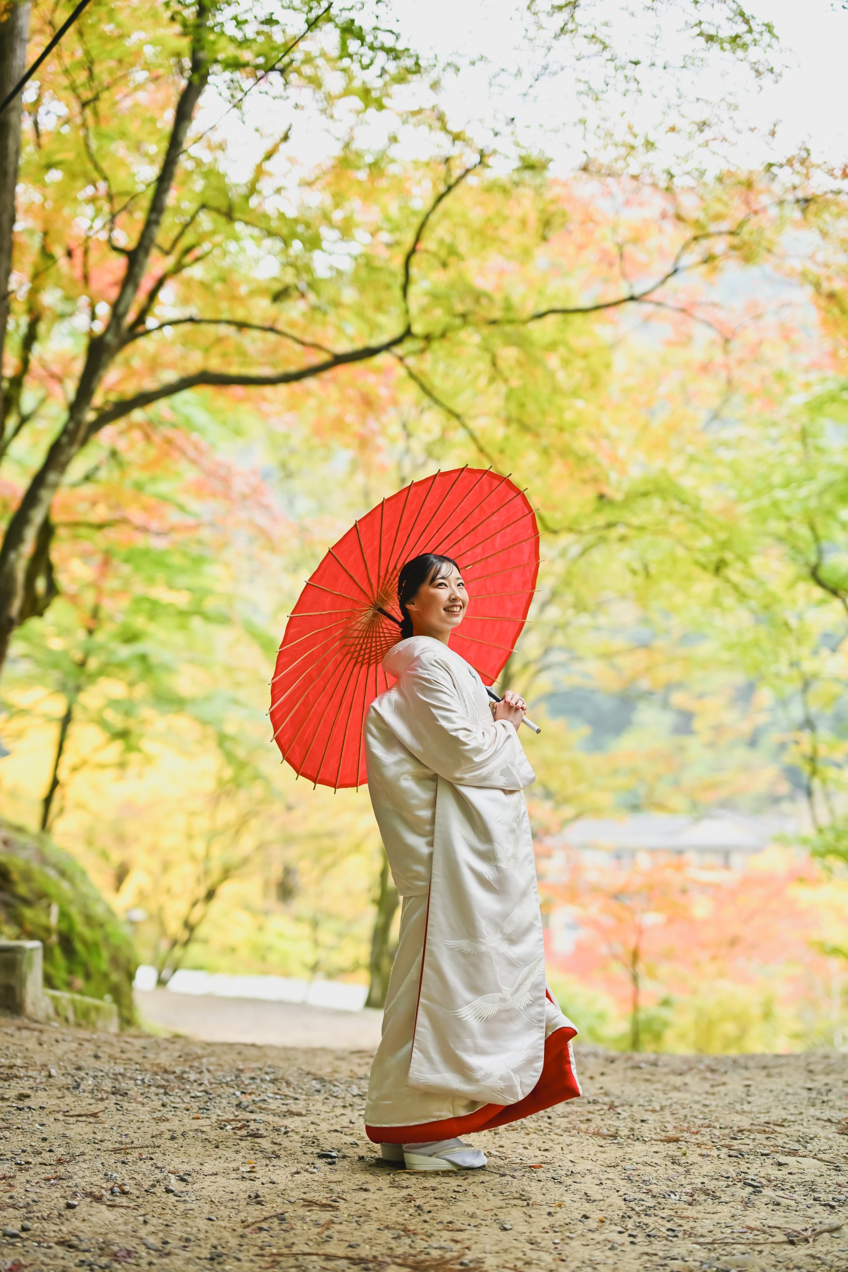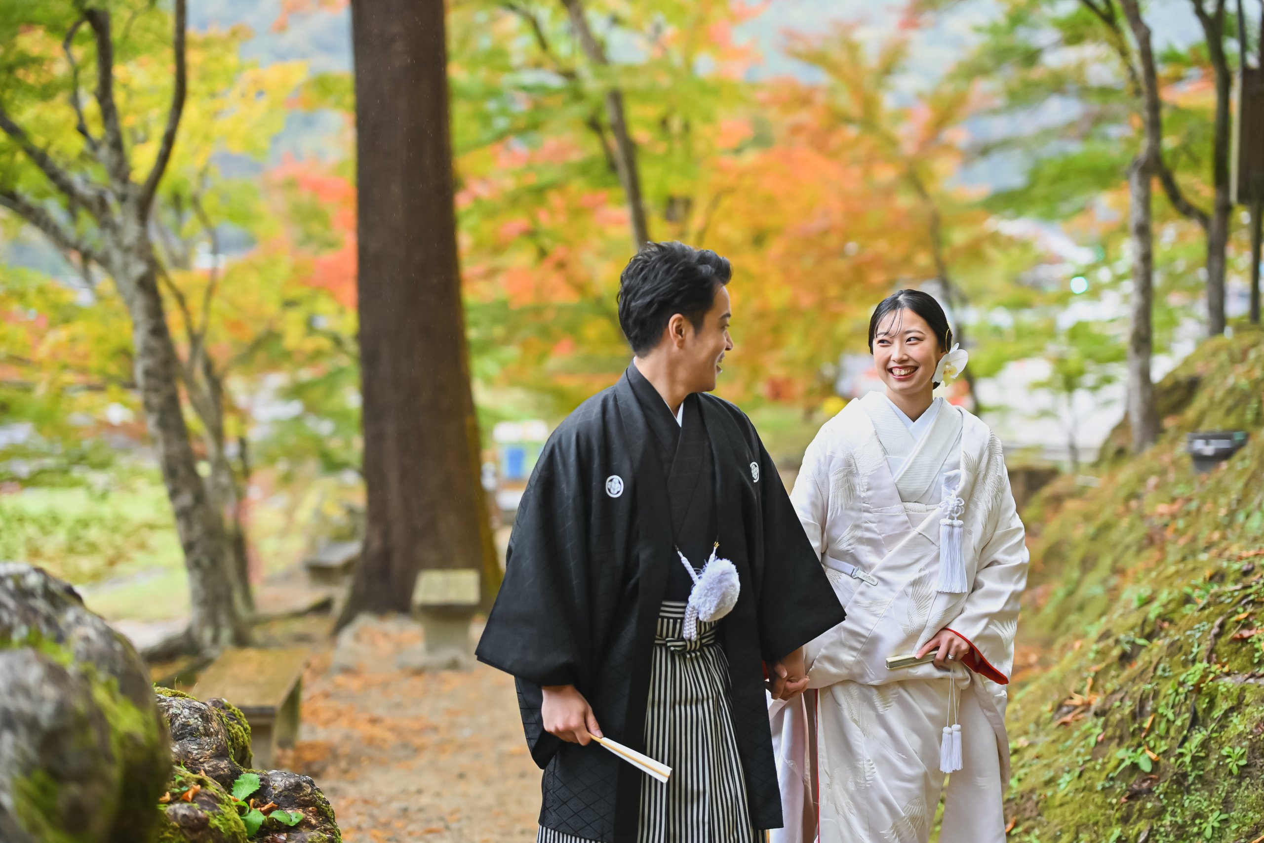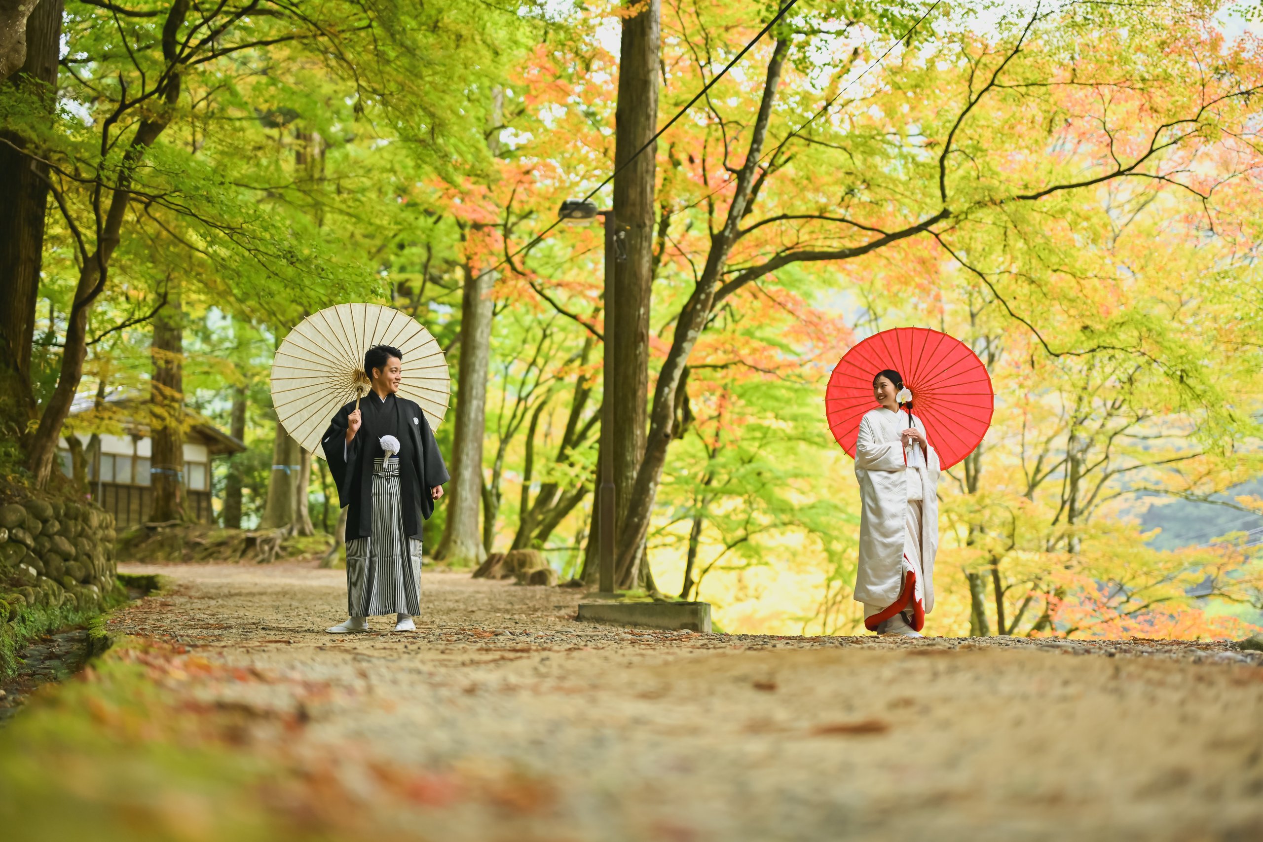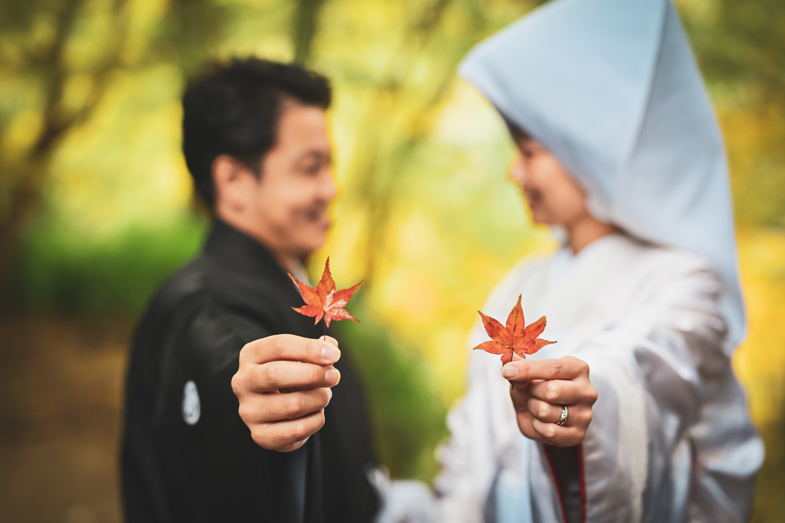 - We wanted to have a kimono pre-shoot at Korankei, a famous sightseeing spot for autumn foliage in Toyota City, and after searching around, we contacted THE SKY WEDDING because we found on the Internet and YouTube that there was a precedent of a pre-shoot at Korankei. After a phone meeting, I was able to get a concrete idea of what we were looking for and an image of what the shoot would look like on the day of the wedding, so we decided to request them to take the photos.