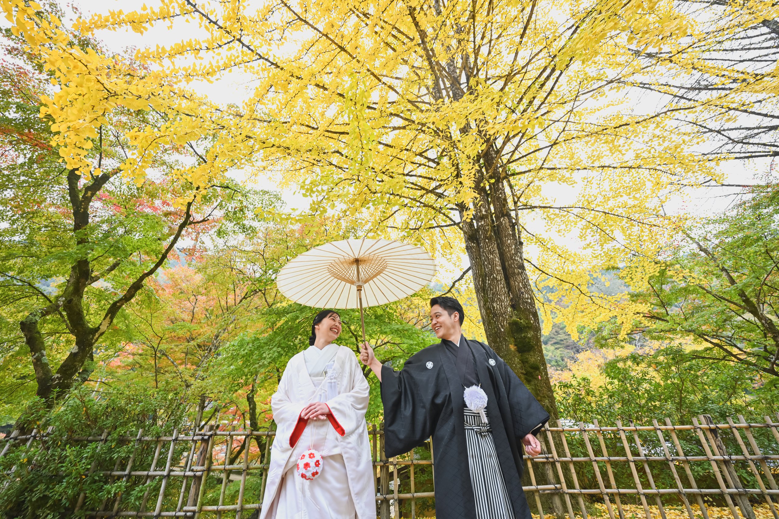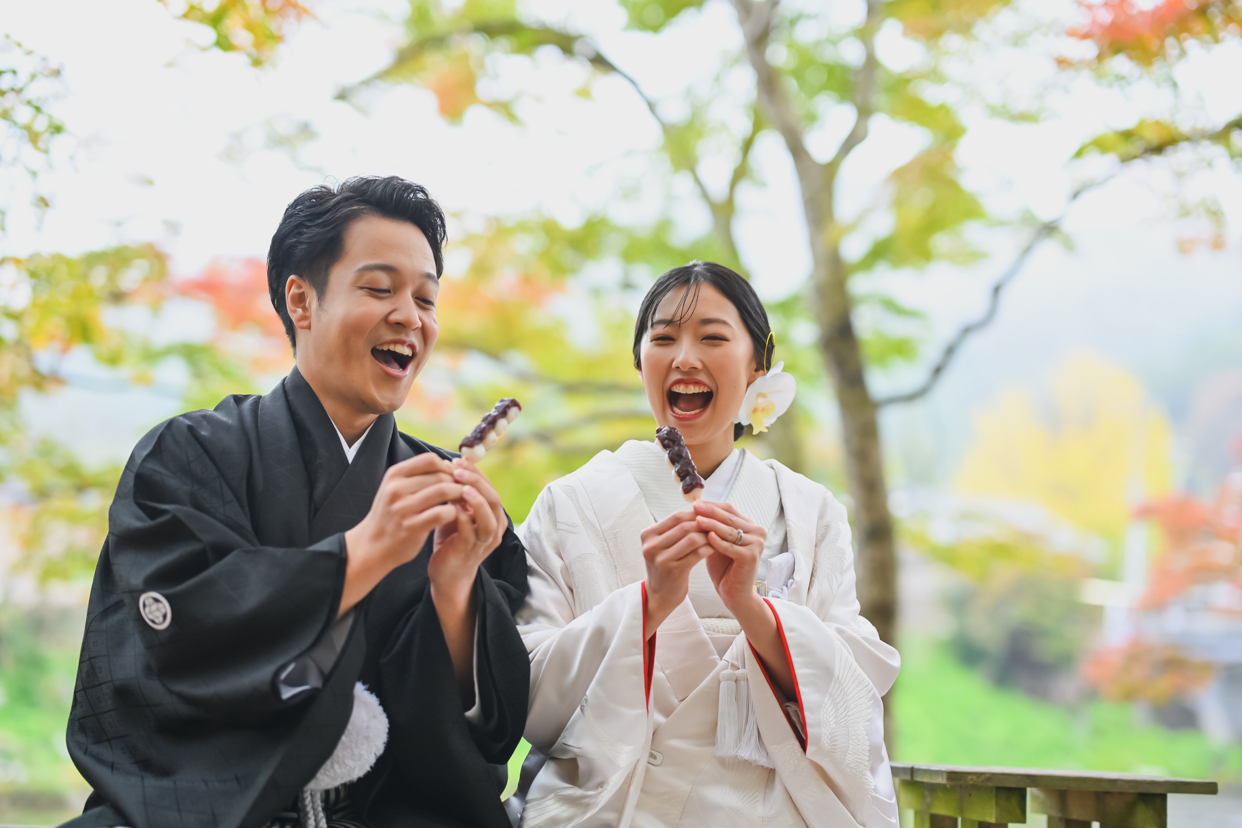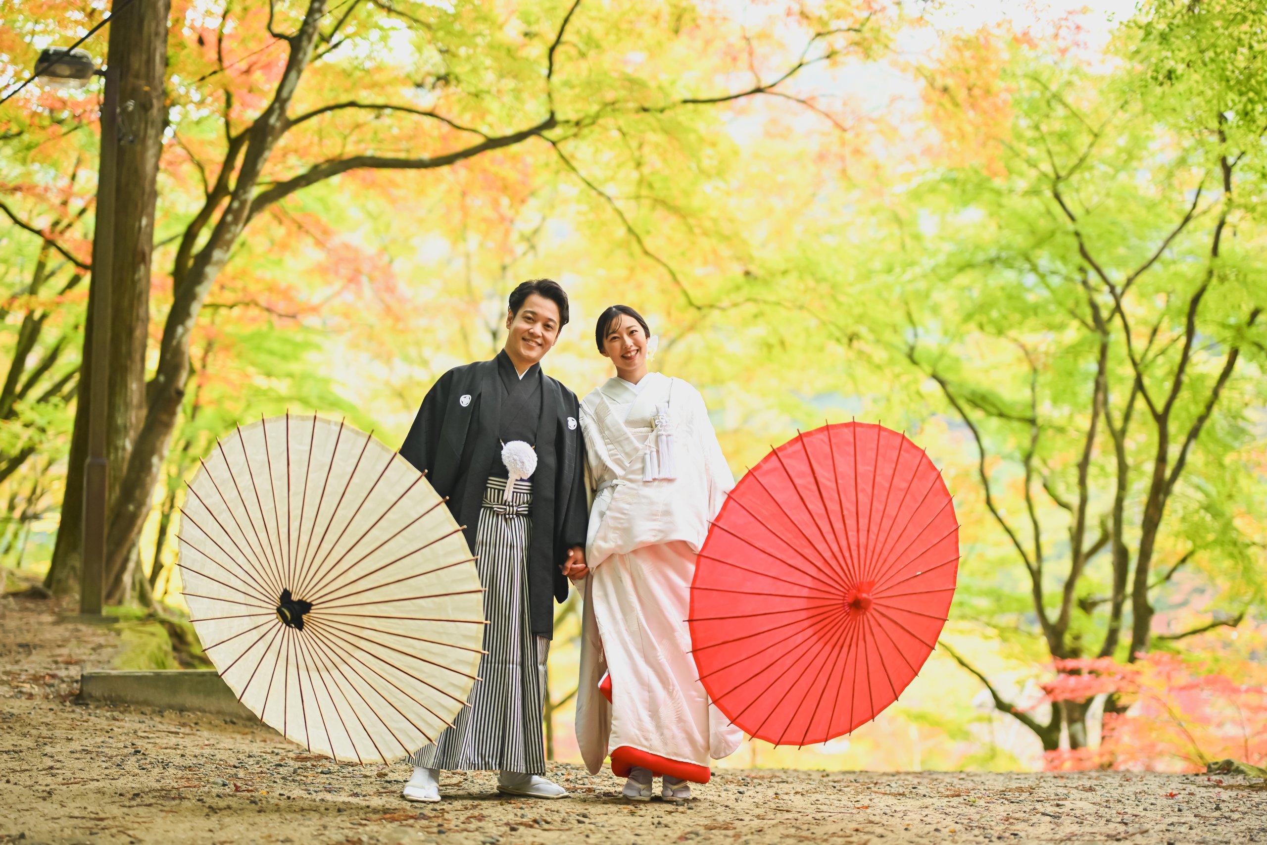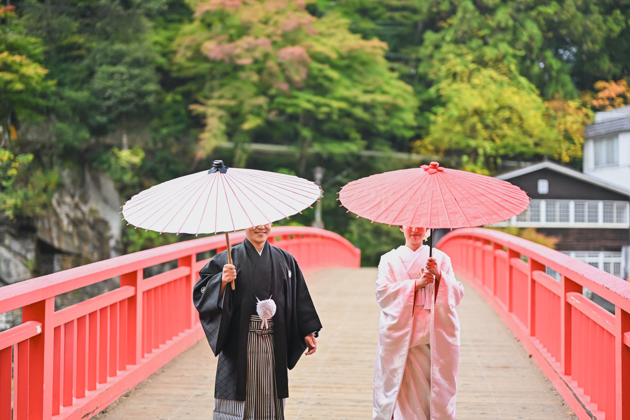 - We wanted to have a kimono pre-shoot at Korankei, a famous sightseeing spot for autumn foliage in Toyota City, and after searching around, we contacted THE SKY WEDDING because we found on the Internet and YouTube that there was a precedent of a pre-shoot at Korankei. After a phone meeting, I was able to get a concrete idea of what we were looking for and an image of what the shoot would look like on the day of the wedding, so we decided to request them to take the photos.