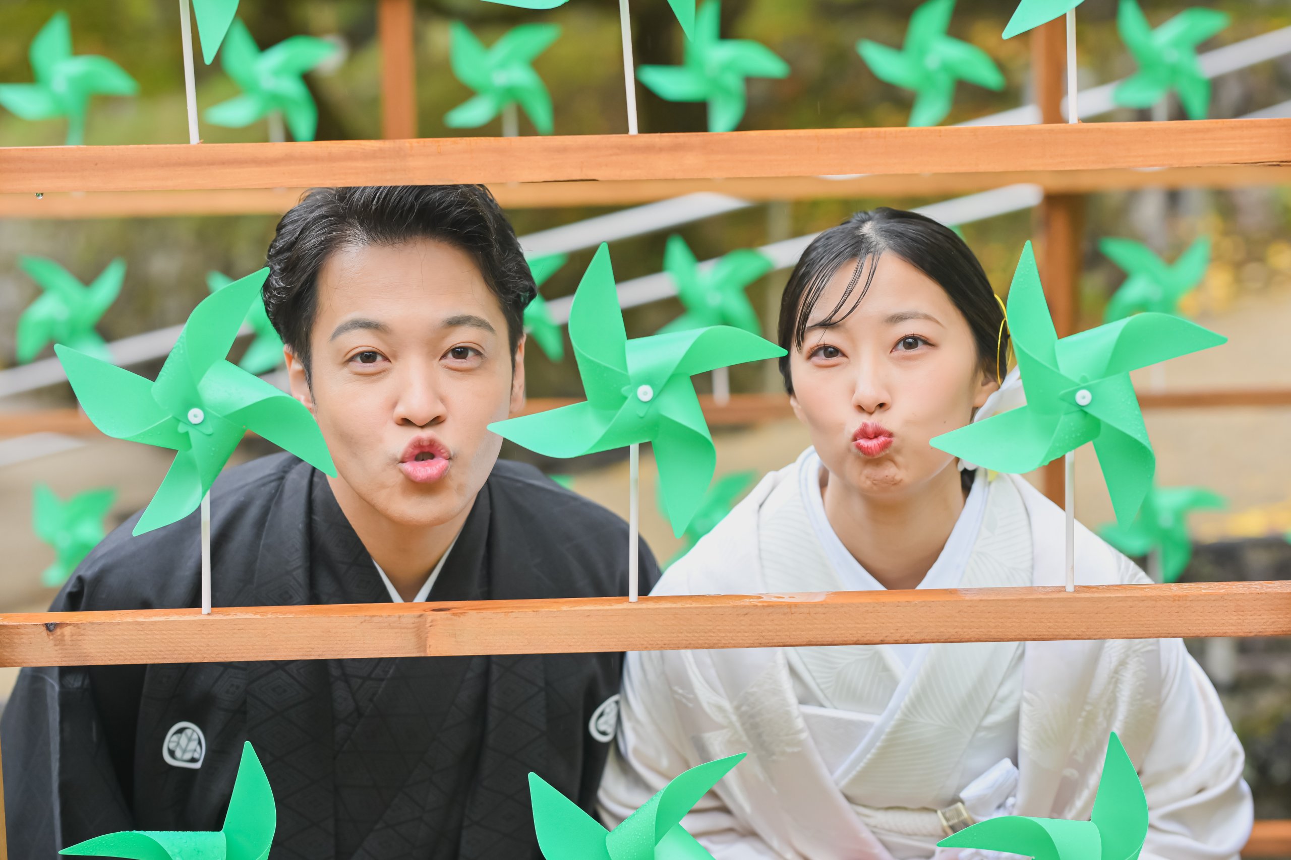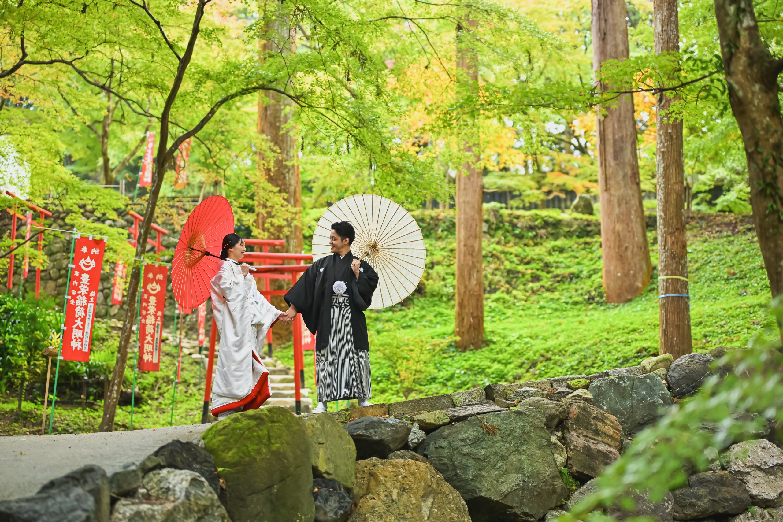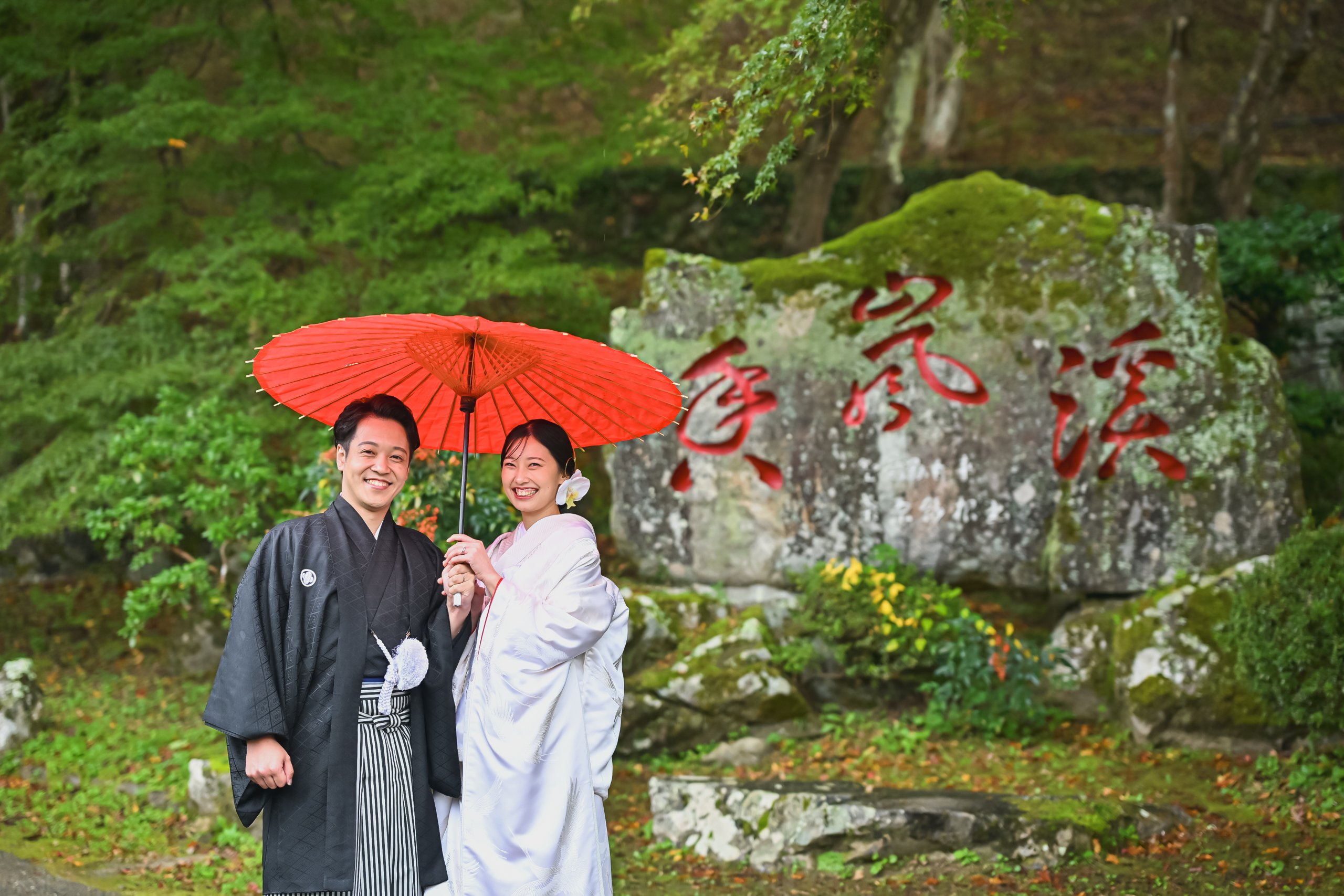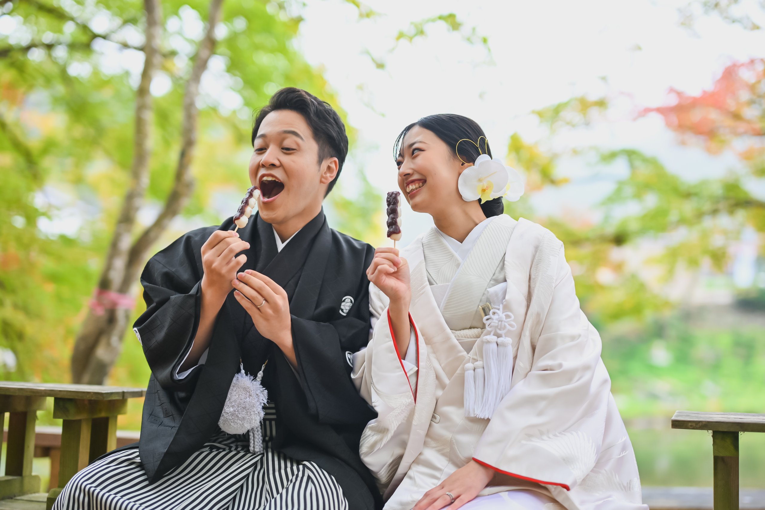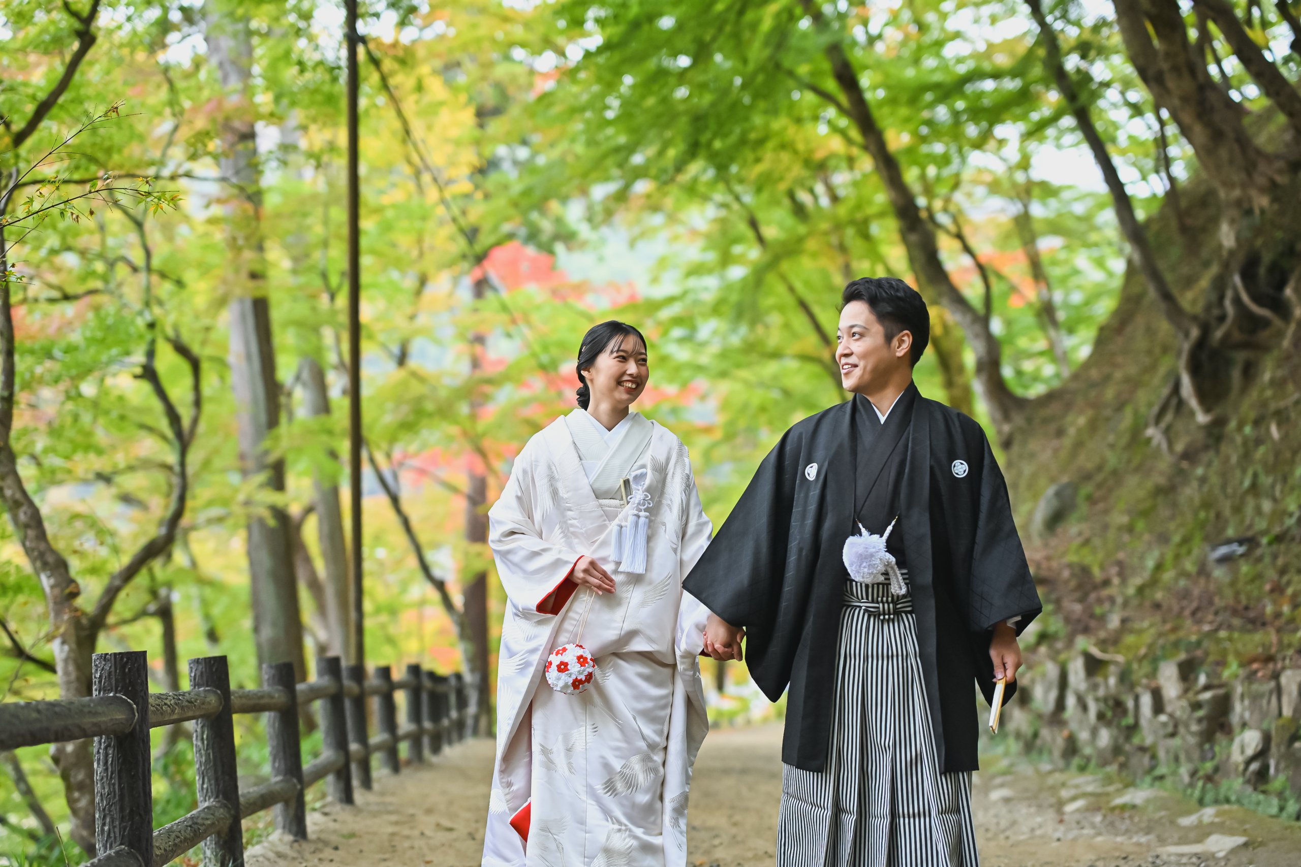 - We wanted to have a kimono pre-shoot at Korankei, a famous sightseeing spot for autumn foliage in Toyota City, and after searching around, we contacted THE SKY WEDDING because we found on the Internet and YouTube that there was a precedent of a pre-shoot at Korankei. After a phone meeting, I was able to get a concrete idea of what we were looking for and an image of what the shoot would look like on the day of the wedding, so we decided to request them to take the photos.