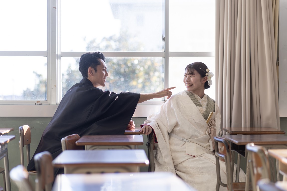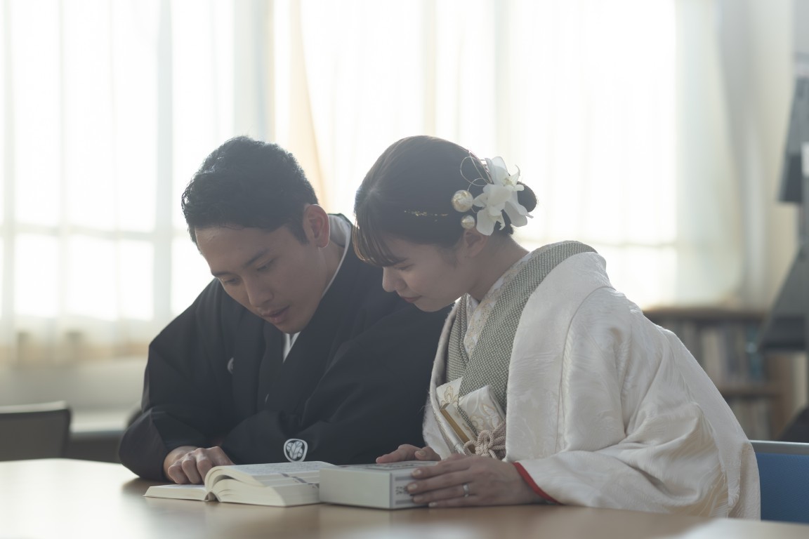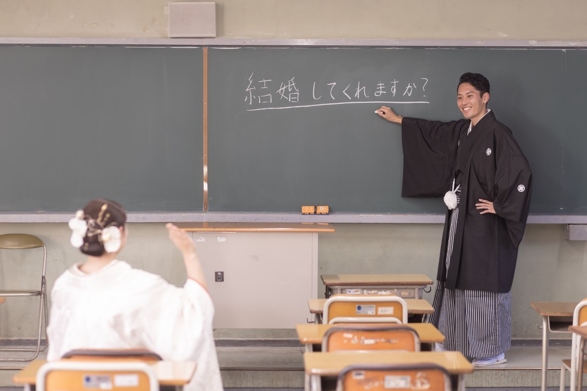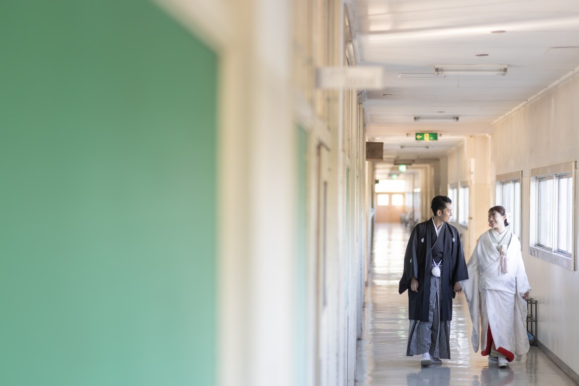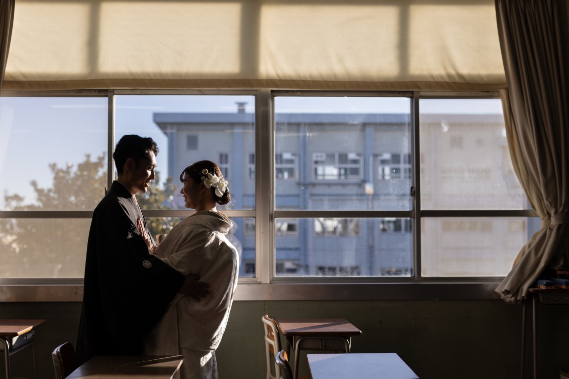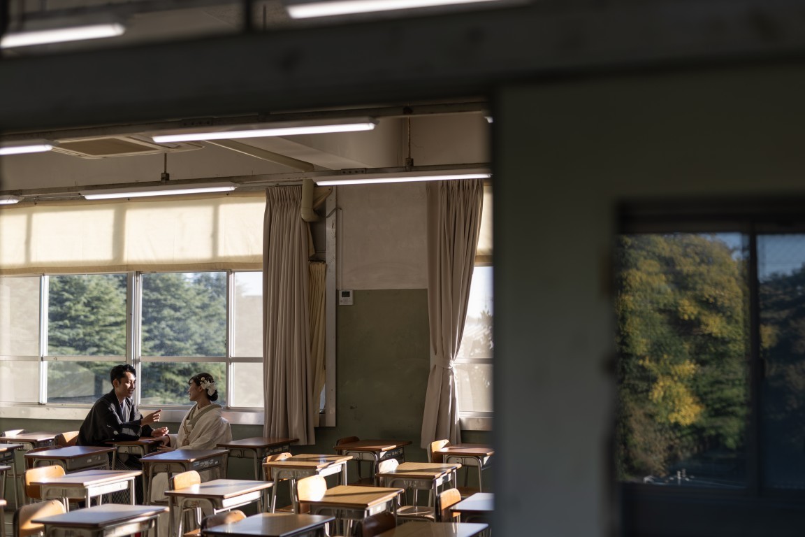 A precious moment for the couple, woven together in a traditional Japanese photoshoot at the school where they first met
