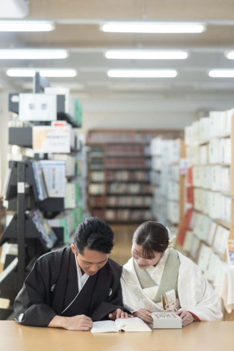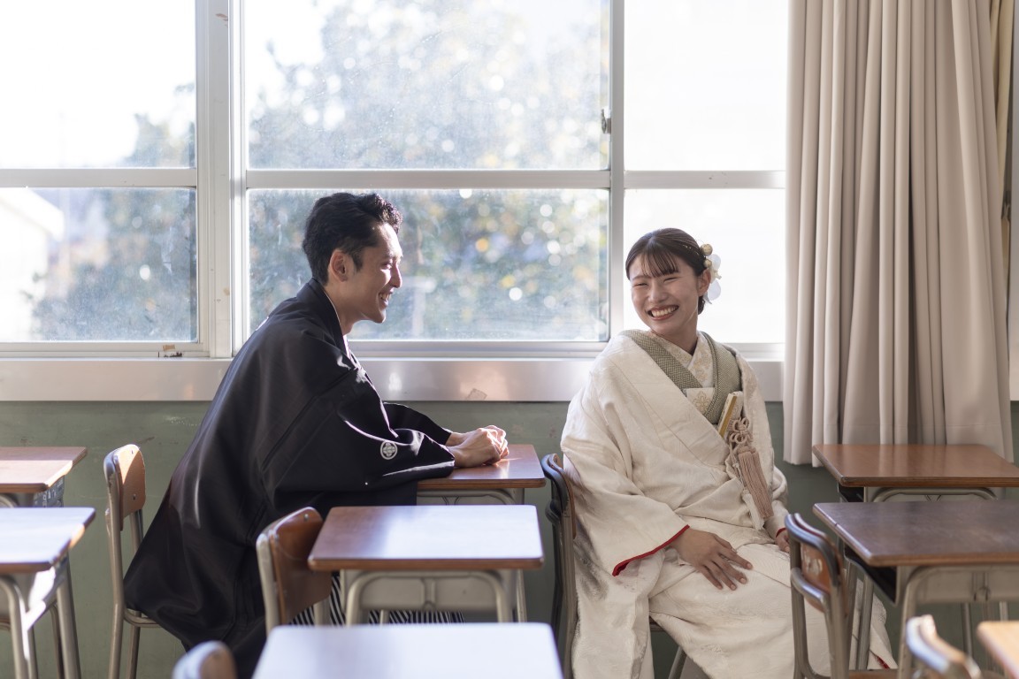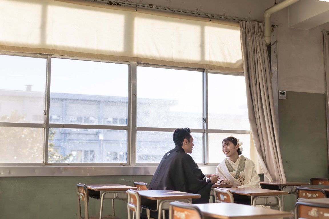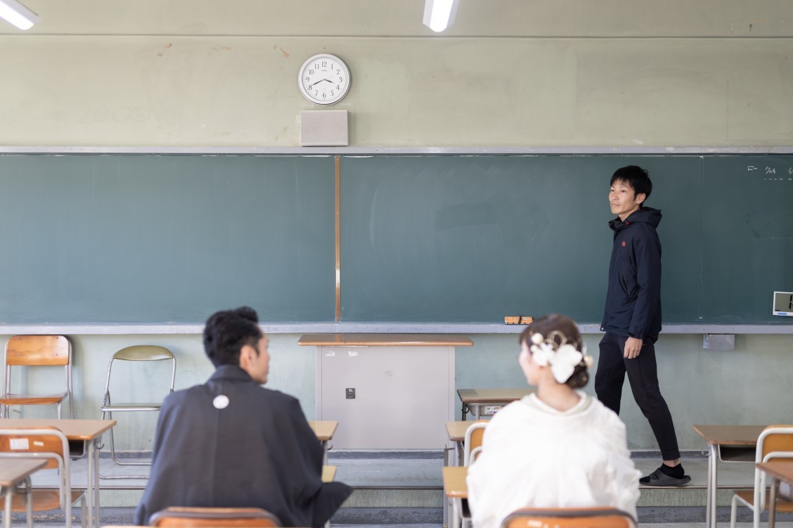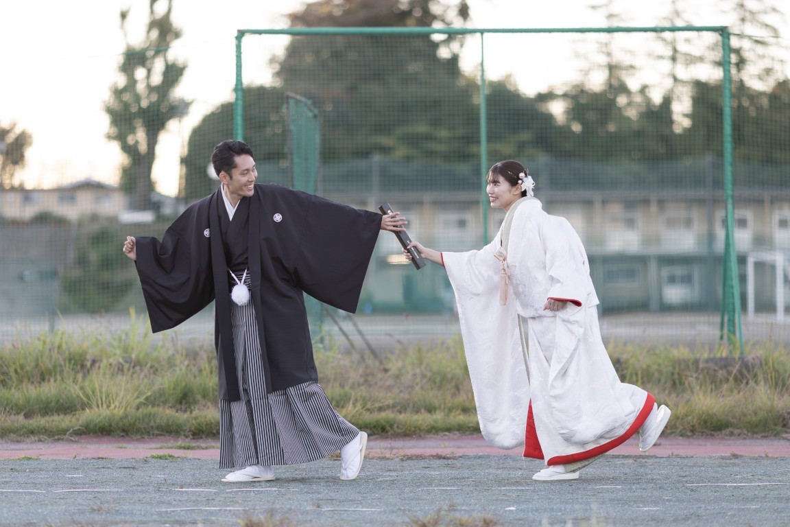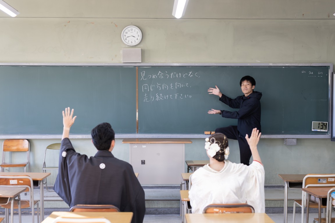 A precious moment for the couple, woven together in a traditional Japanese photoshoot at the school where they first met