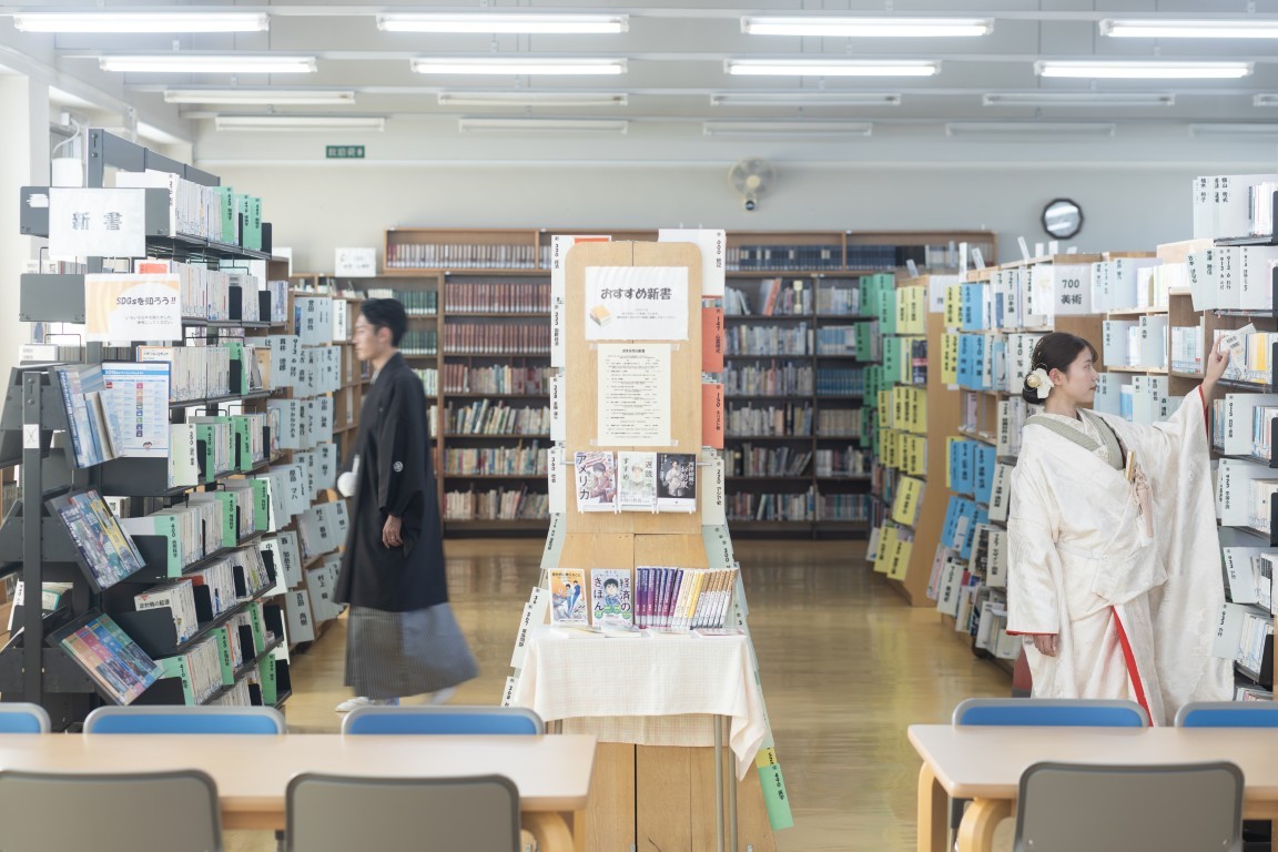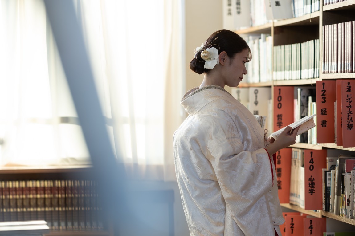 Their special attire, Japanese clothing, harmonized with the calm atmosphere of their alma mater,