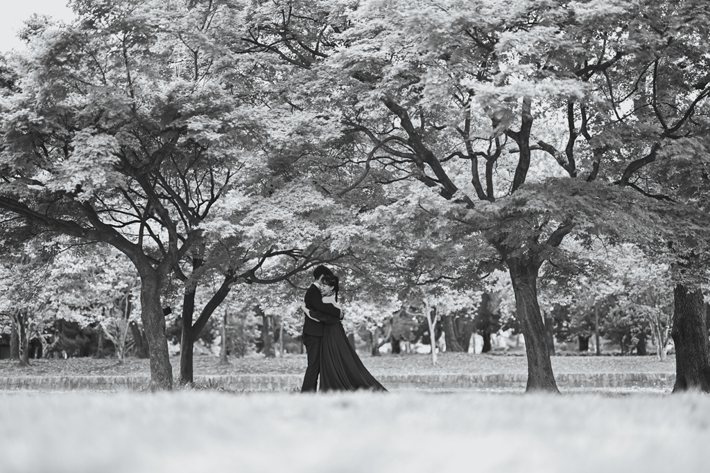 Shooting in Shonai Ryokuchi Park in a trendy black dress, just like the two of you!