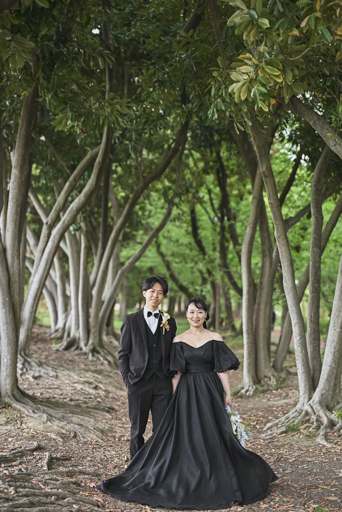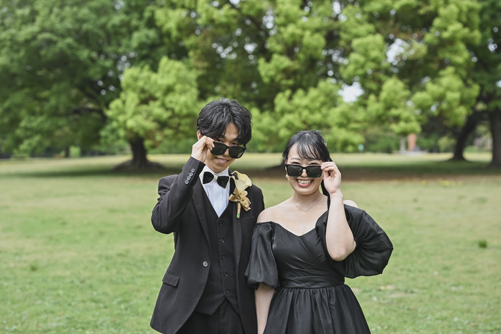 Thank you for the Western-style location shoot at Shonai Ryokuchi Park.The trendy black colored dress looked great on them.