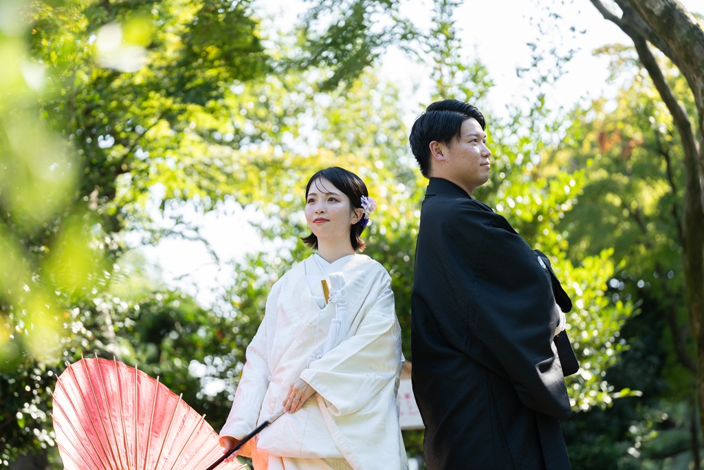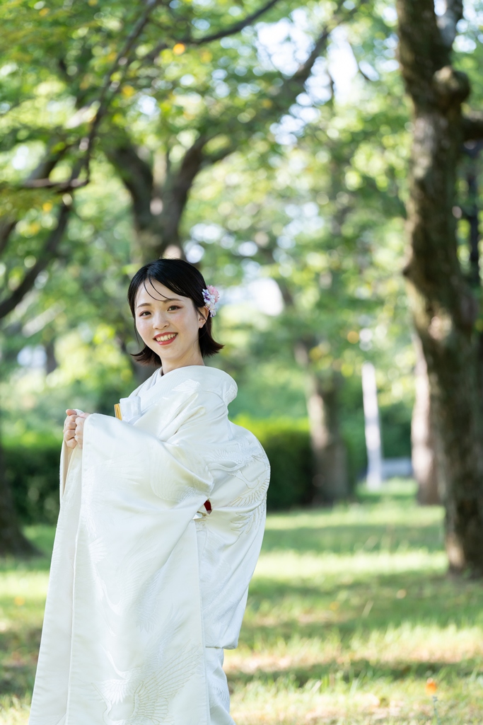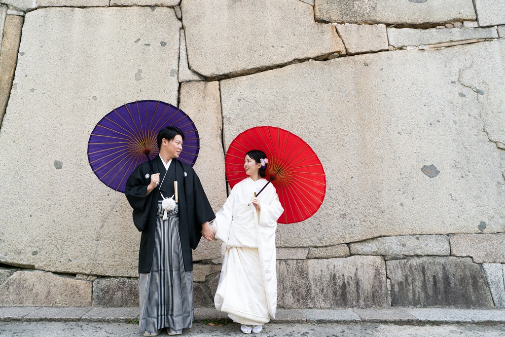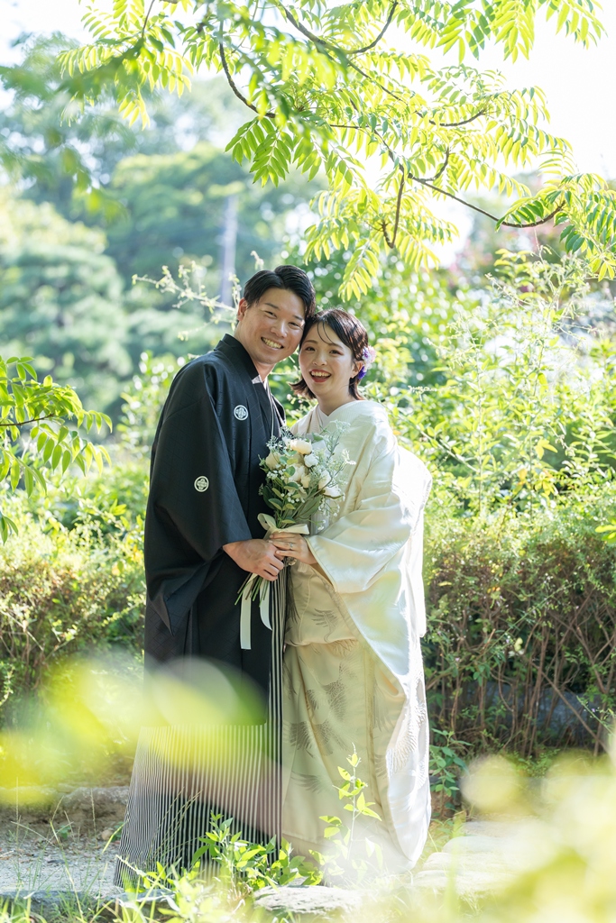 The flowing white kimono, the dignified and elegant montsuki hakama—each element beautifully reflected the essence of Japanese tradition, wrapped in a timeless and almost mystical atmosphere.Your smiles, so harmoniously blended with nature and history, brought the photographs to life with a sense of story that transcended the frame.