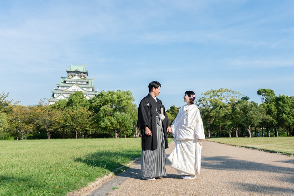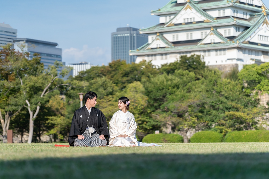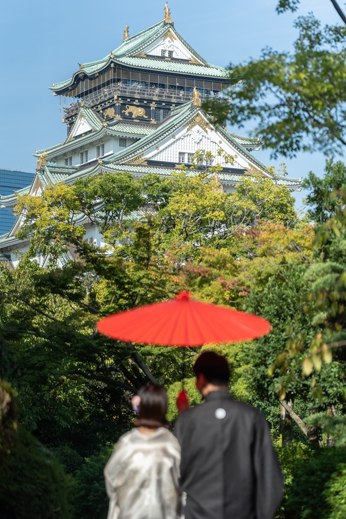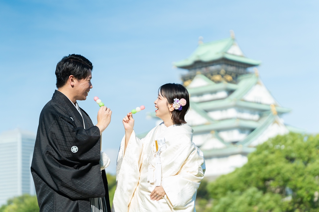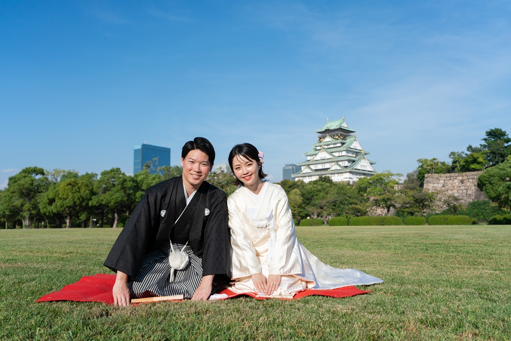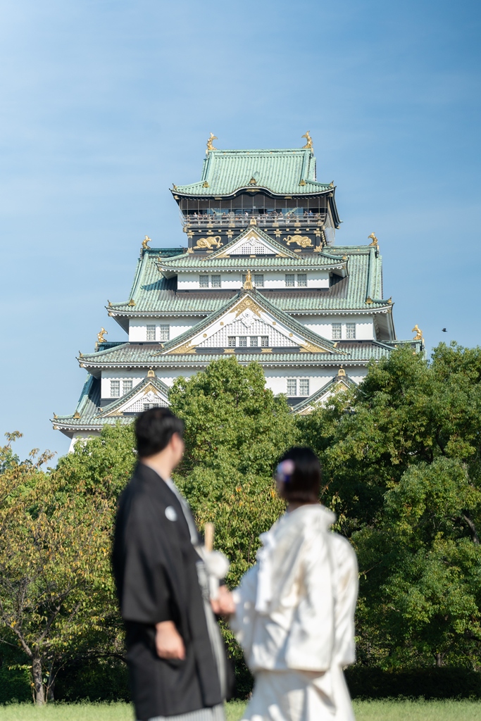Against the majestic and historic backdrop of Osaka Castle, the two of you dressed in exquisite kimono created a truly breathtaking scene.