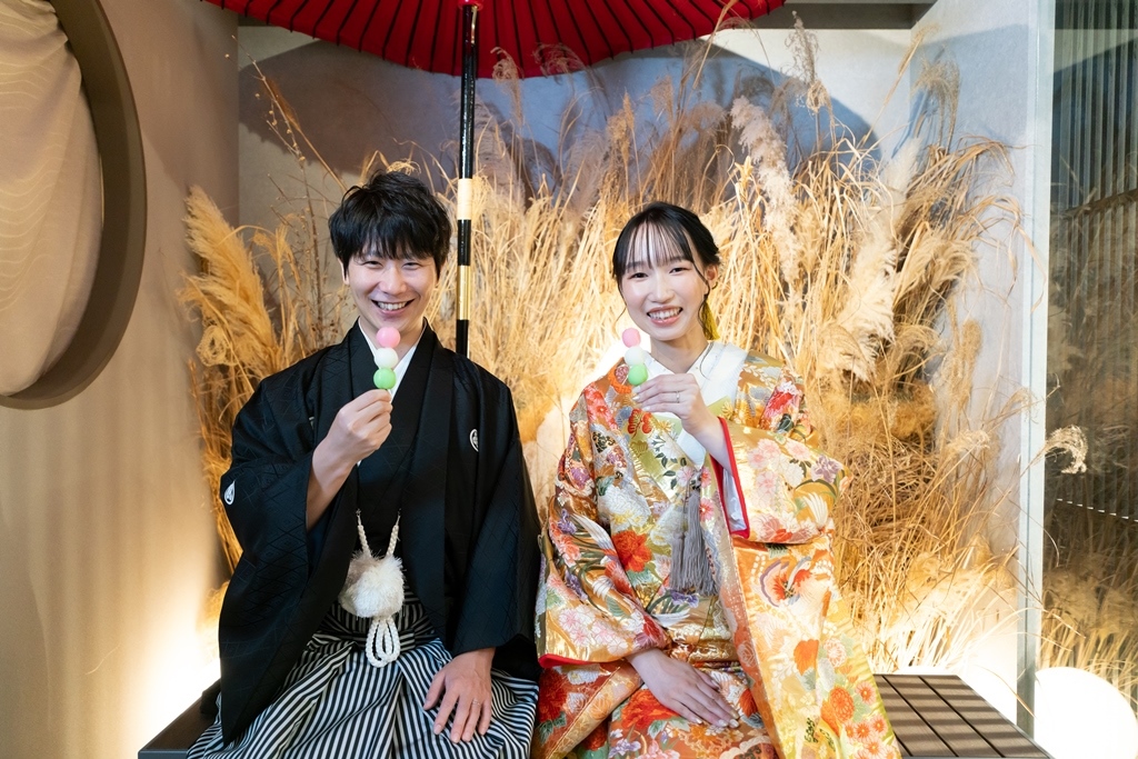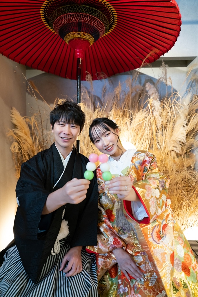 You also used items such as Japanese umbrellas and dango dumplings to capture many handsome smiling photos of the couple.