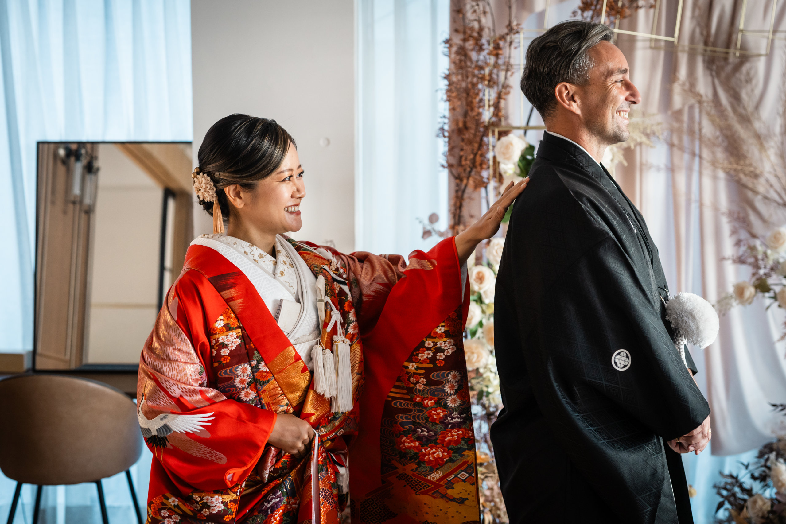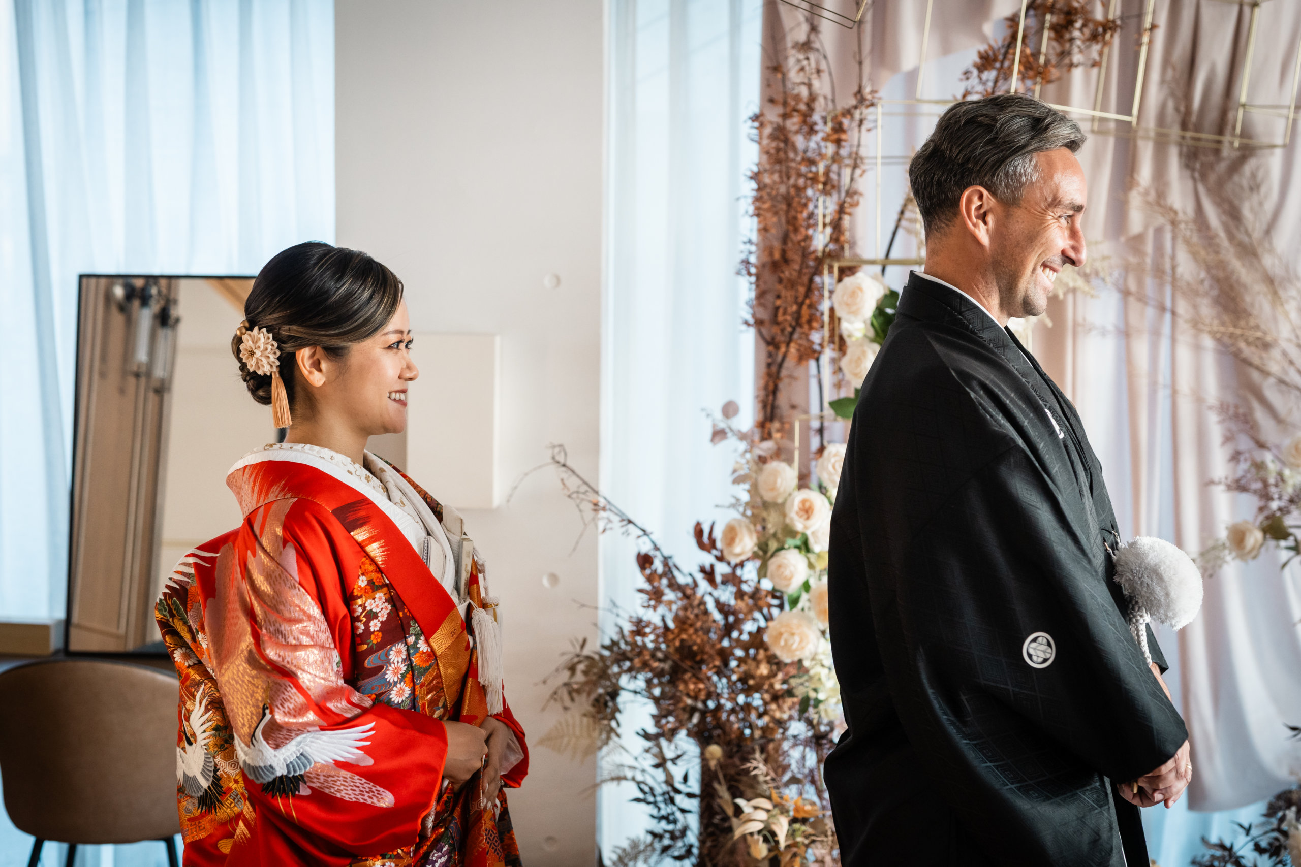 The moment of your first meet in the uchikake kimono was truly unforgettable, and it was a joy for our entire team to capture such a meaningful and emotional moment. Seeing your natural smiles and the love you share made the experience very special for us as well.We sincerely hope that the memories created through this photo session will remain close to your hearts for many years to come.