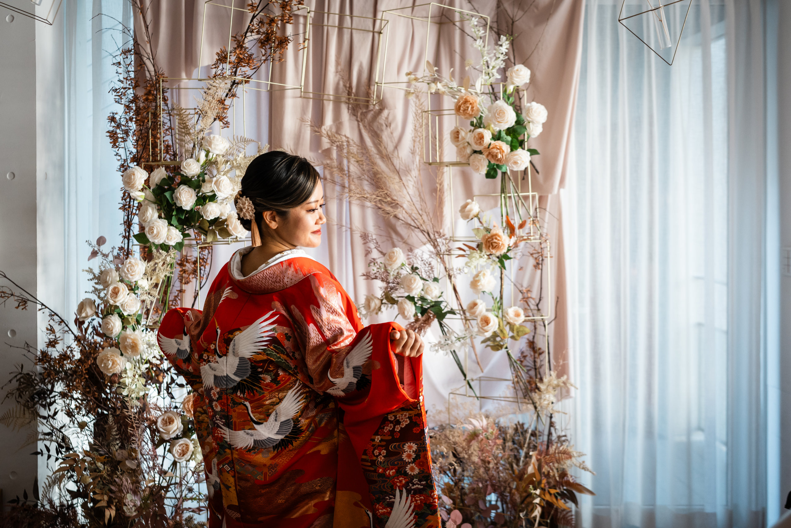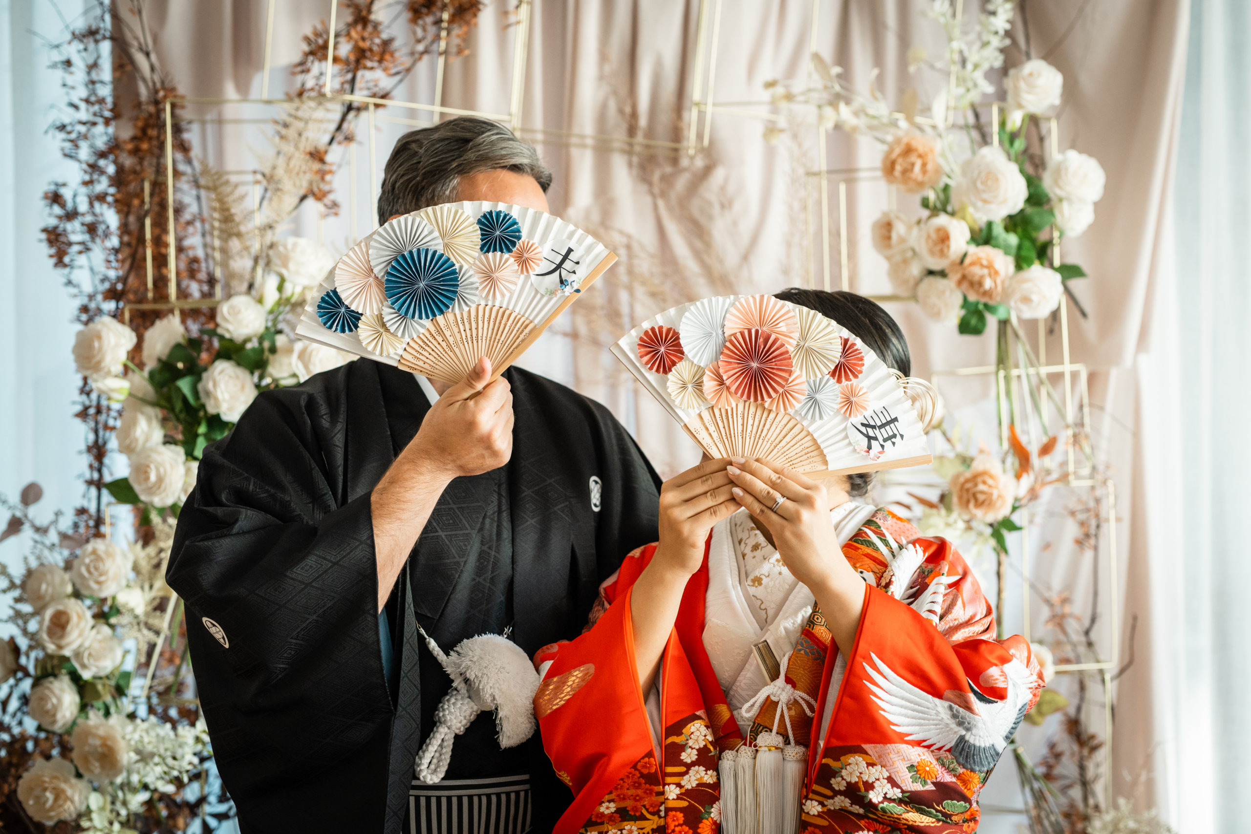 A Japanese-Style Studio Photo Wedding Capturing the First Meet in a Colorful Uchikake