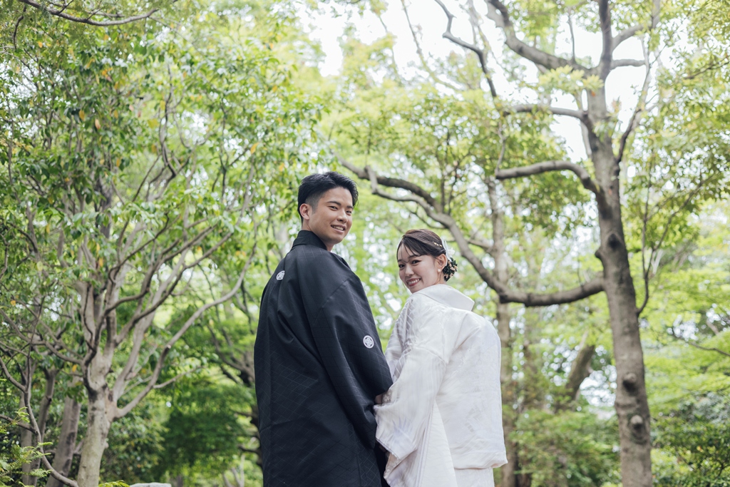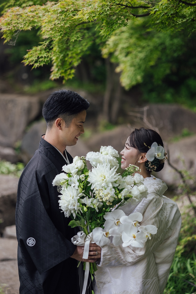 Surrounded by nature that shifts beautifully with the seasons, Heisei Garden is graced by the gentle flow of water and the soothing sound of wind—almost as if the landscape itself is blessing your union. With its tranquil and dignified atmosphere, it was the perfect stage to highlight the elegance of traditional Japanese attire. Amidst that serene setting, your smiles and gestures harmonized with nature, yet stood out with striking beauty.
