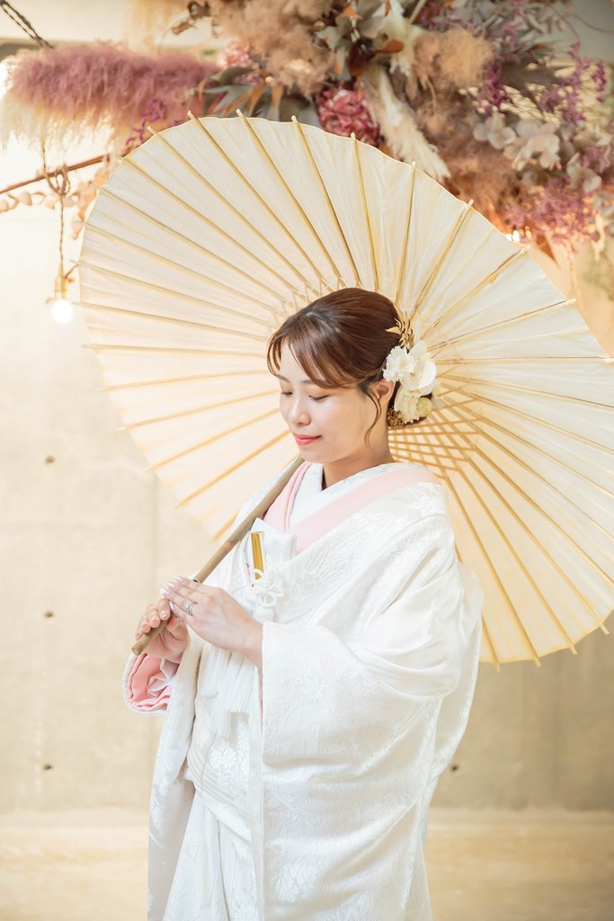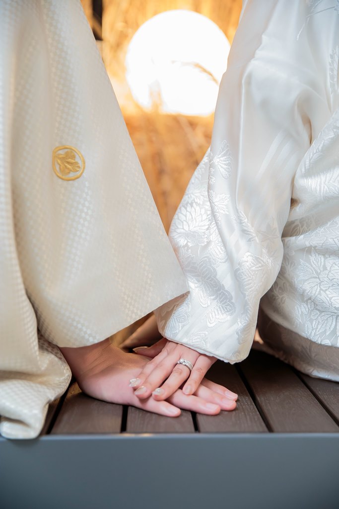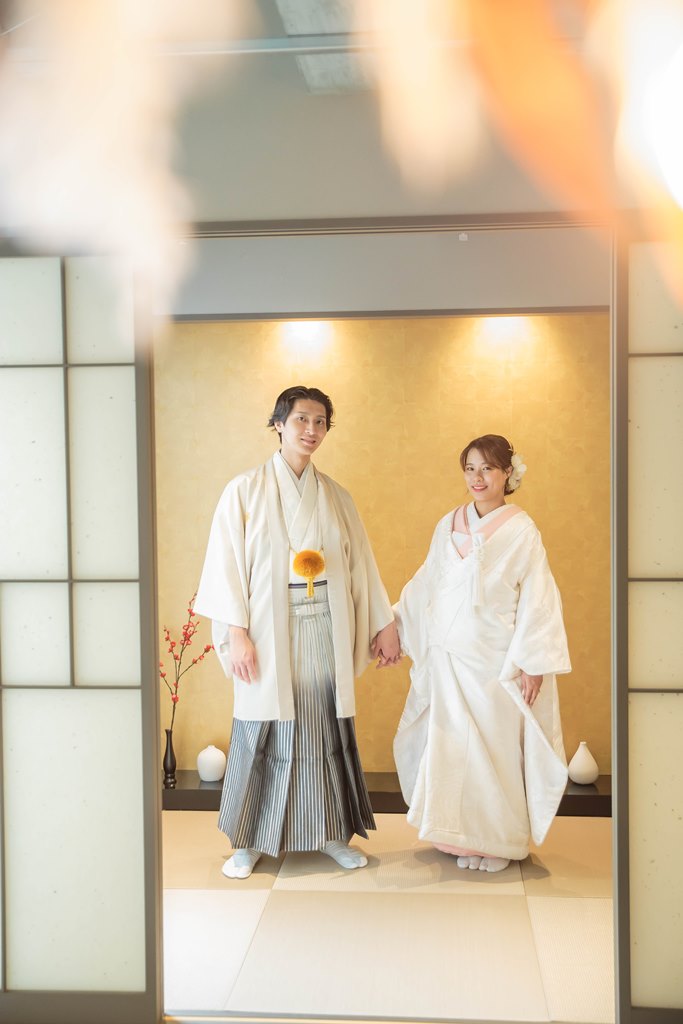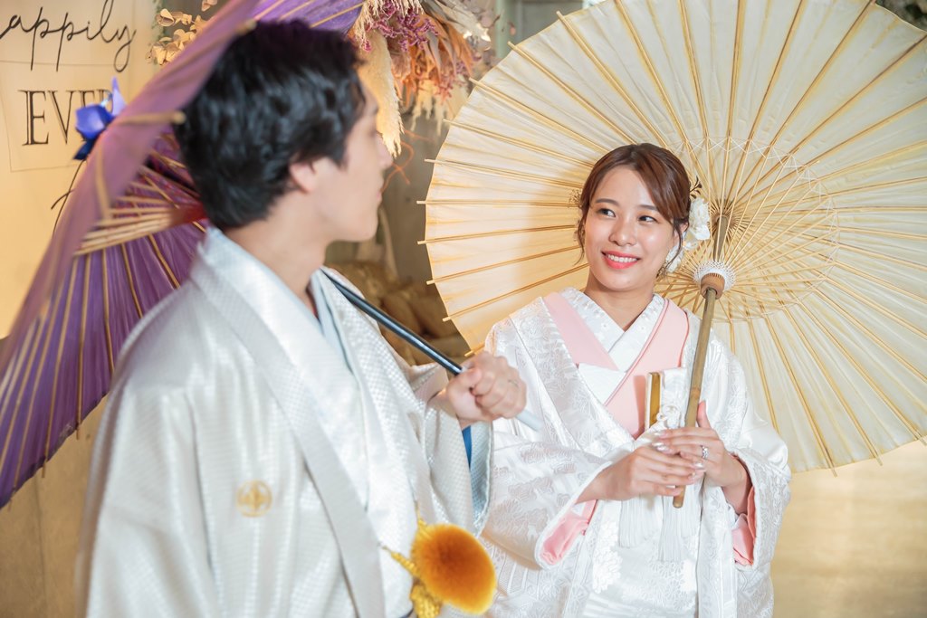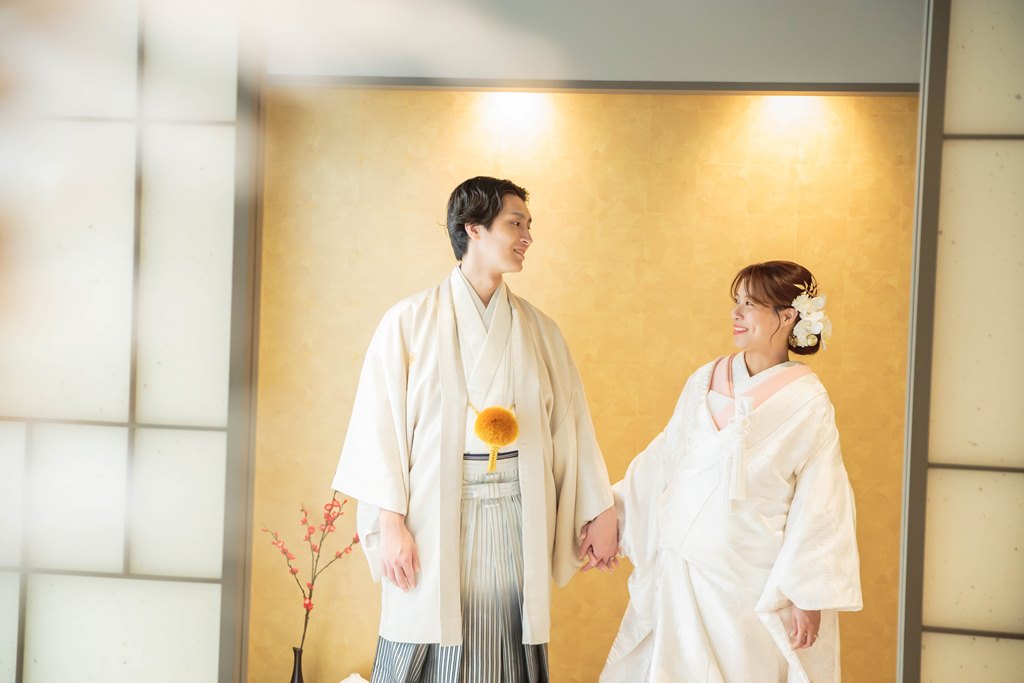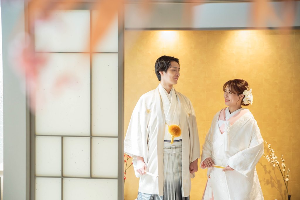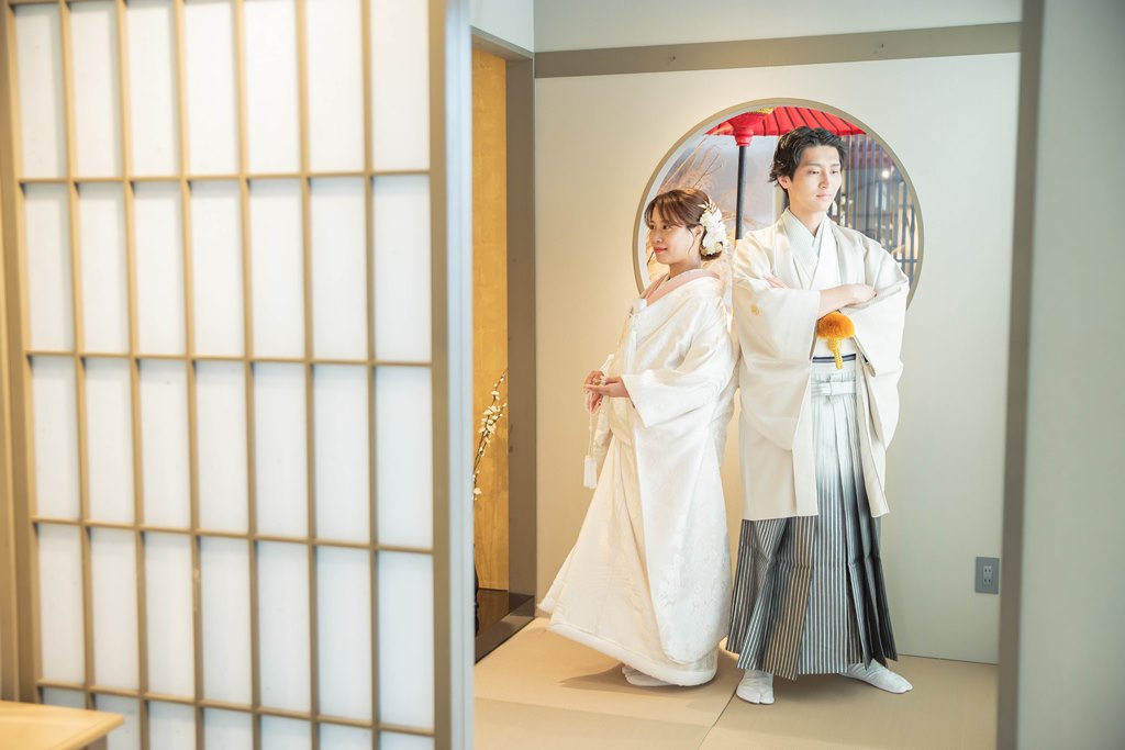 In the studio, you looked stylish in the classic white wedding kimono and the trendy light-colored formal attire, capturing your joyful expressions throughout the session.
