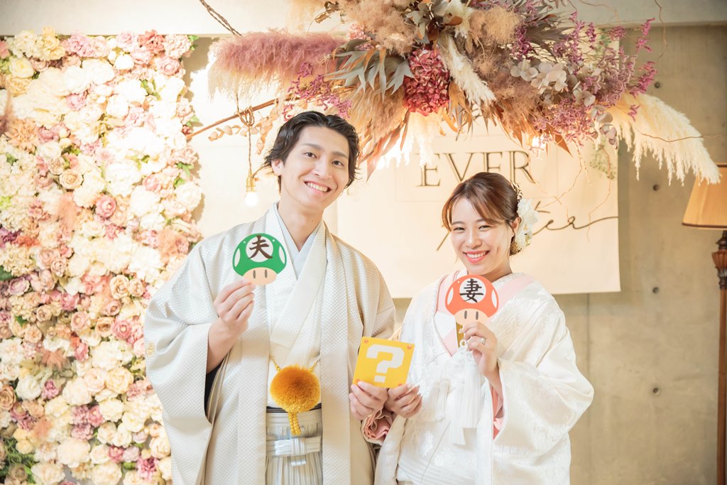 - I wanted to preserve the memories of our wedding, so I was looking for a place in Kansai to do a pre-wedding shoot. I found your studio through your website and social media, which sparked my interest. After visiting the store and trying on some outfits, I felt the atmosphere was great, so I decided to go with you. I was also grateful that I could request the creation of an opening movie and a welcome board.