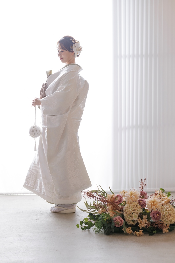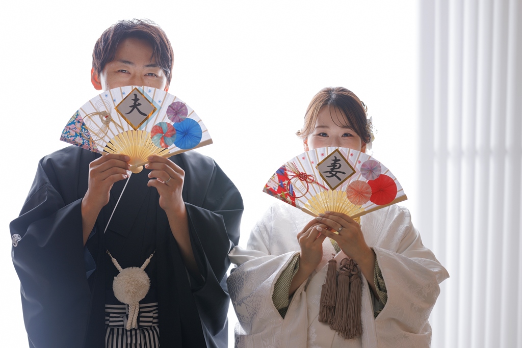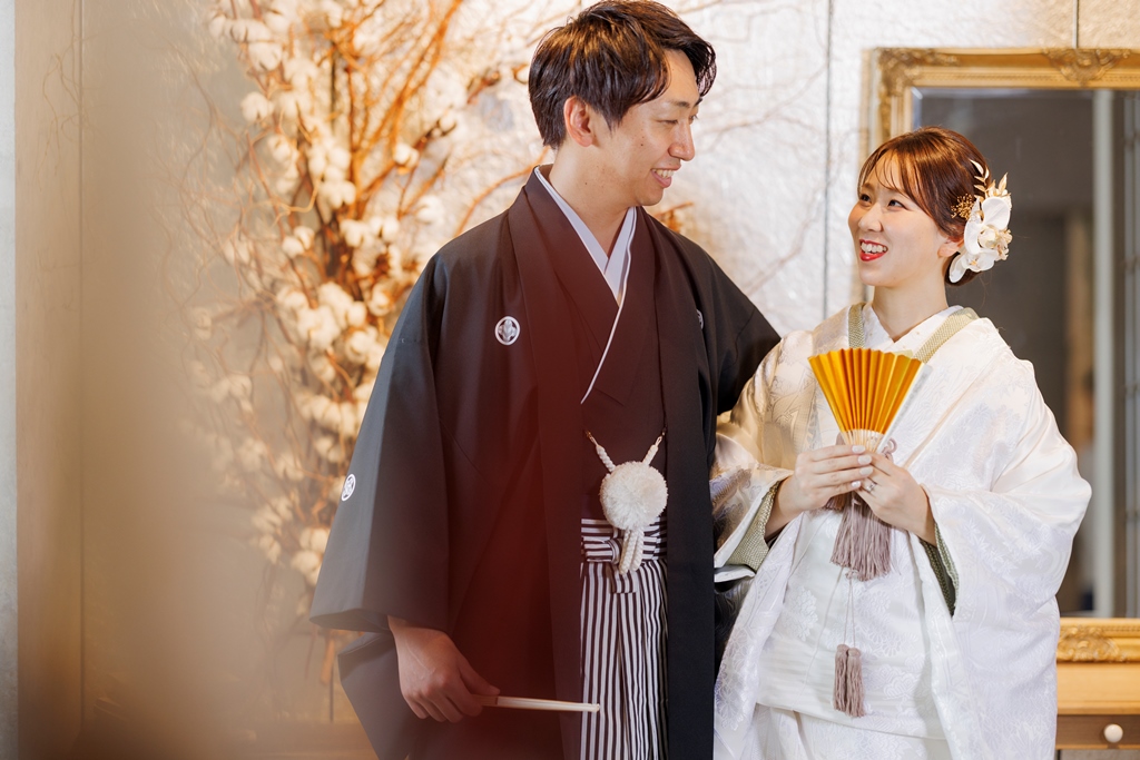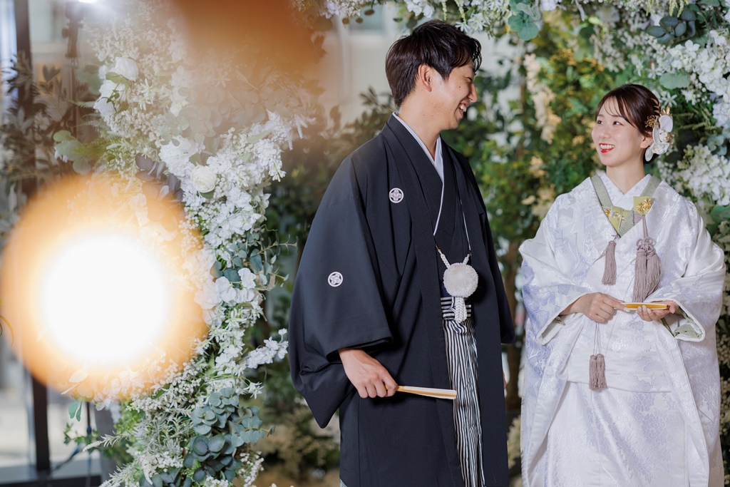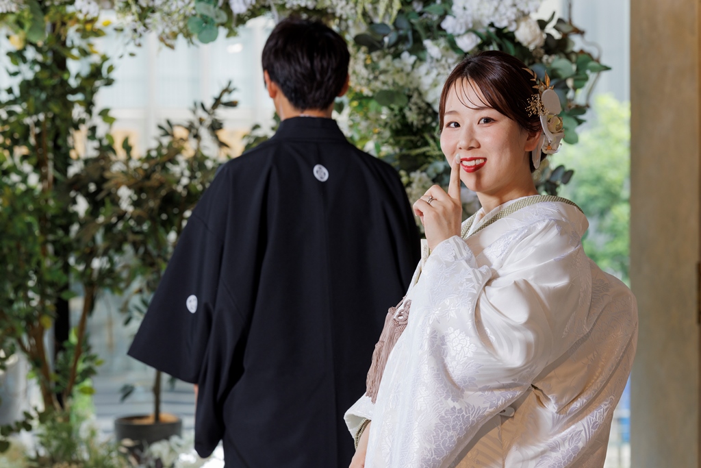 In the studio, you looked stylish in the classic shiro-muku (white wedding kimono) and the trendy light-colored montsuki (formal kimono for men). It was great to capture the joy and fun you both had throughout the shoot.