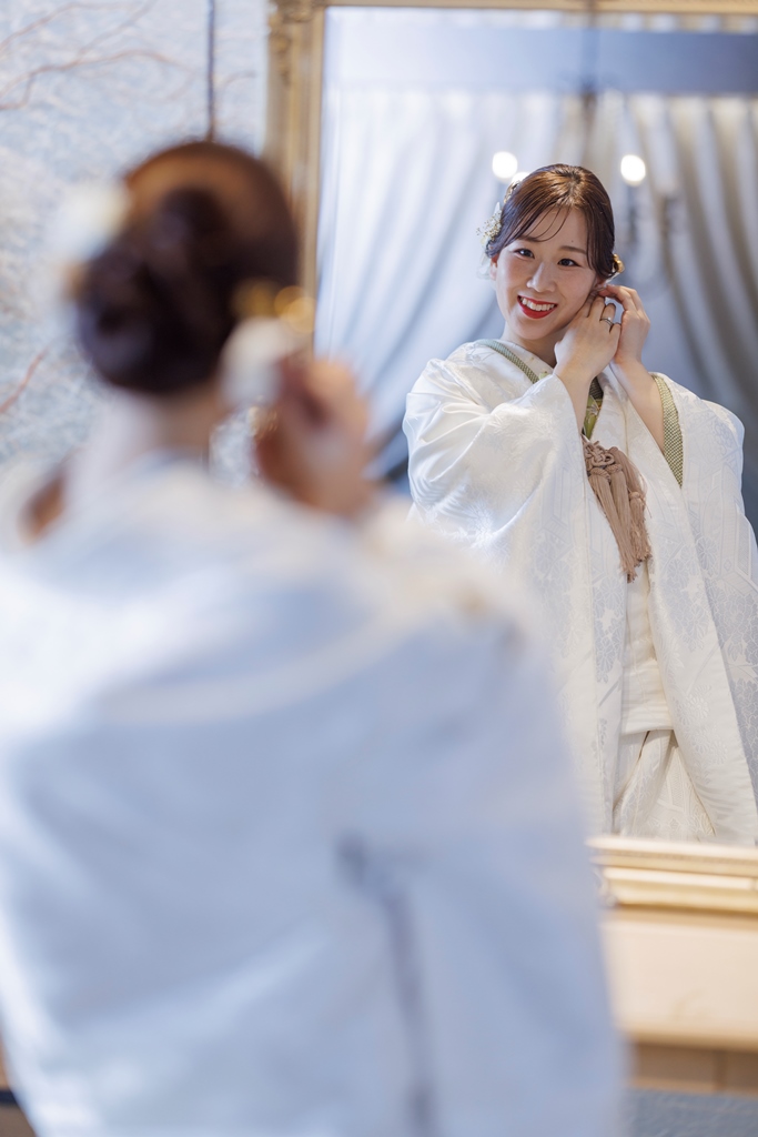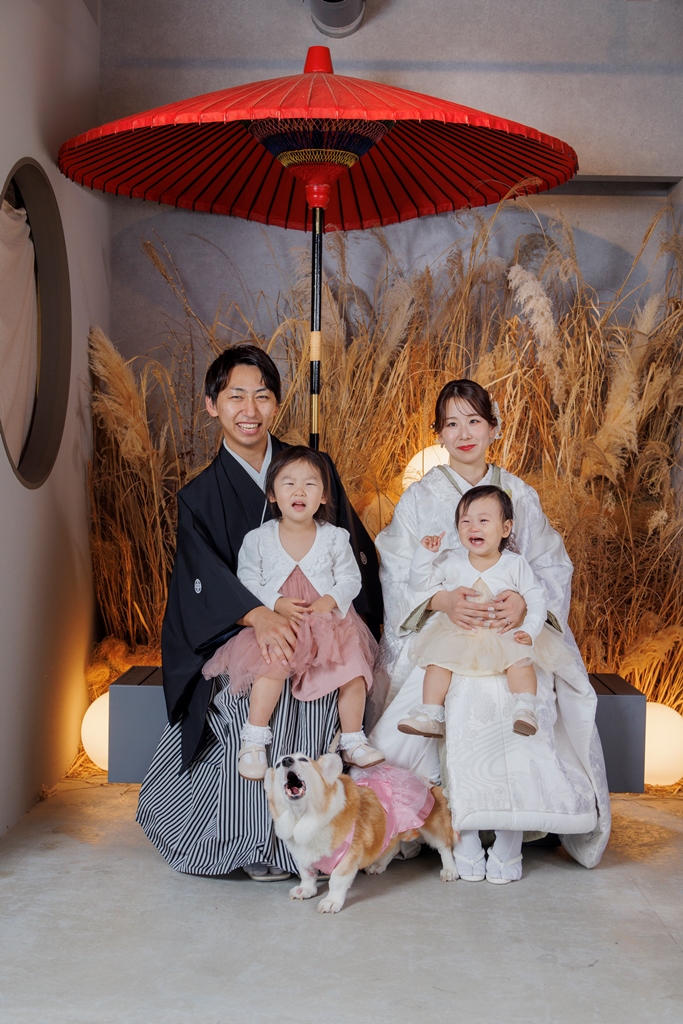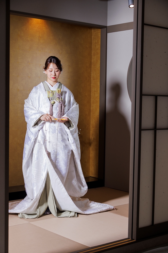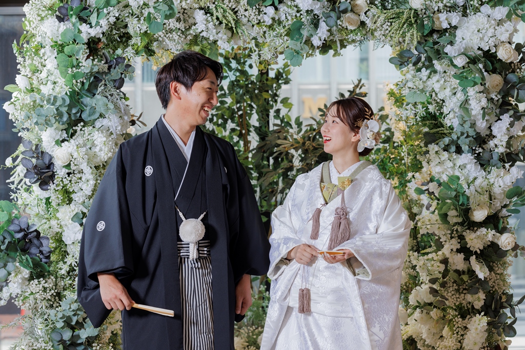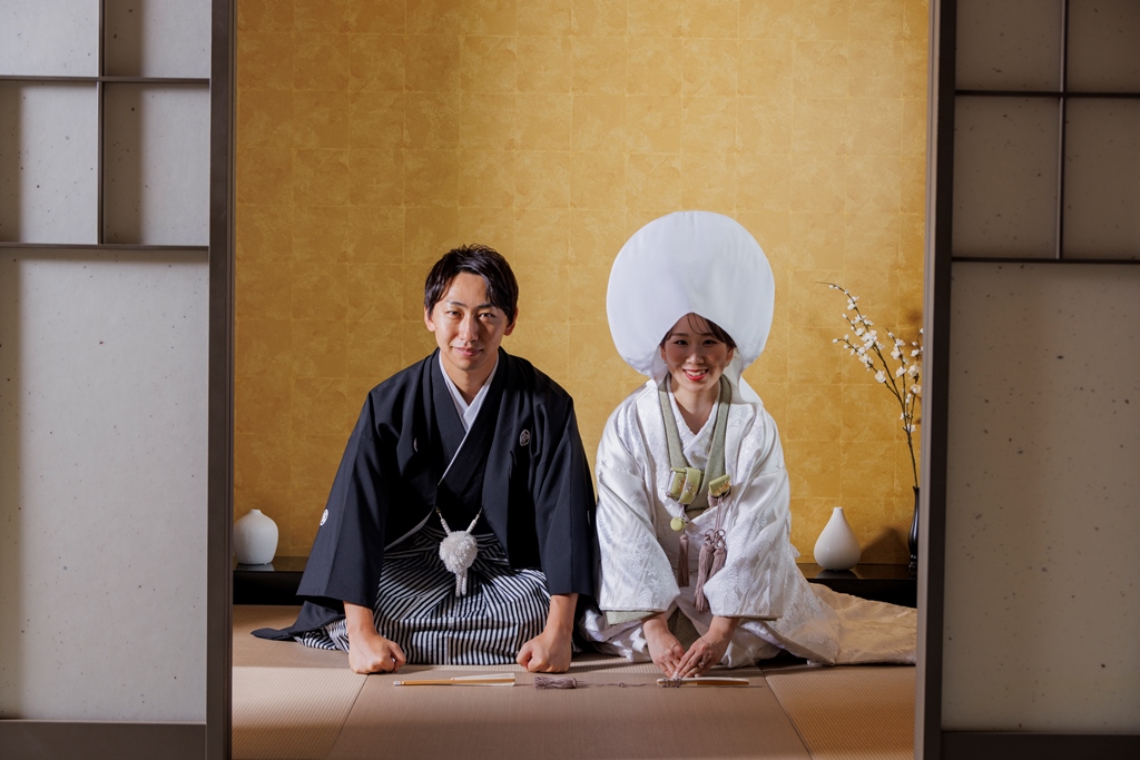 In the studio, you looked stylish in the classic shiro-muku (white wedding kimono) and the trendy light-colored montsuki (formal kimono for men). It was great to capture the joy and fun you both had throughout the shoot.