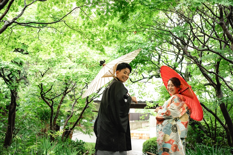 - Since our wedding will only feature a wedding dress, we wanted to capture some photos in traditional Japanese attire at Mejiro Garden. While searching online, I found your company’s website, and all the photos were absolutely beautiful. The deciding factor was that you also offer traditional outfits that match my preferences.