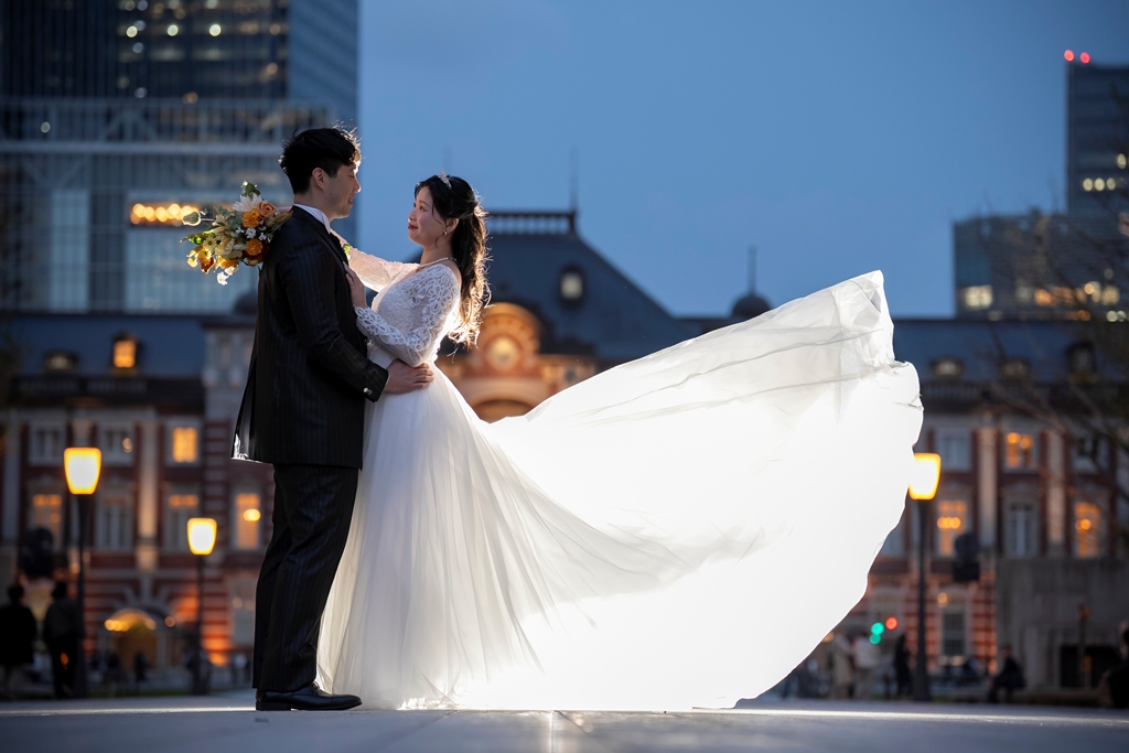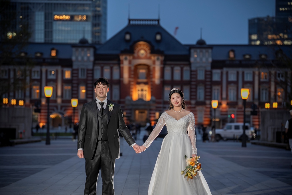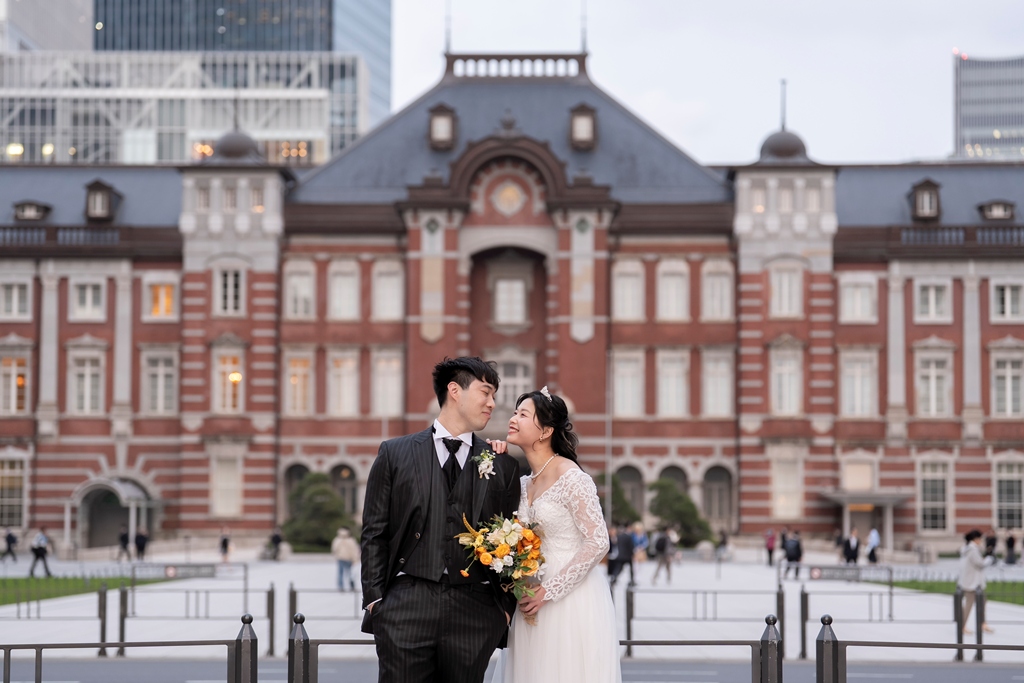 Tokyo Station’s iconic red bricks and the modern elegance of Marunouchi create a breathtaking contrast—classic yet contemporary, timeless yet vibrant. It is truly one of the most magical settings for a Western-style photo shoot.
