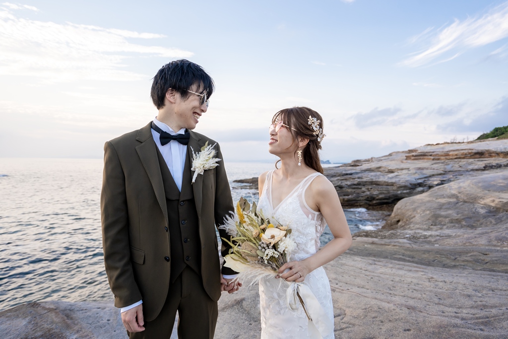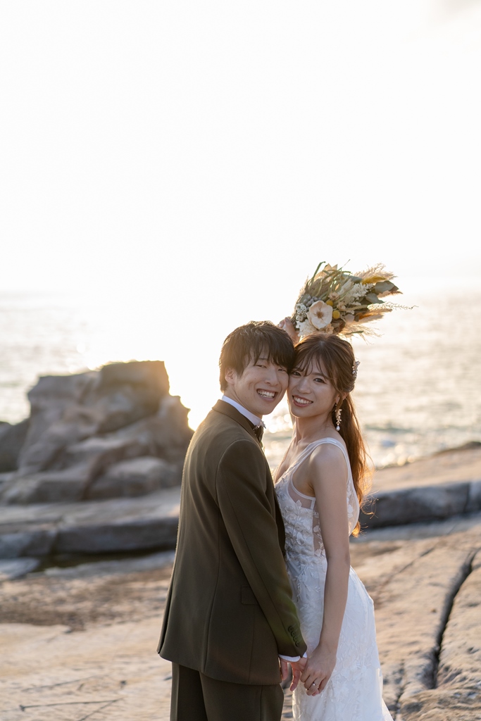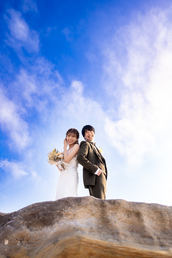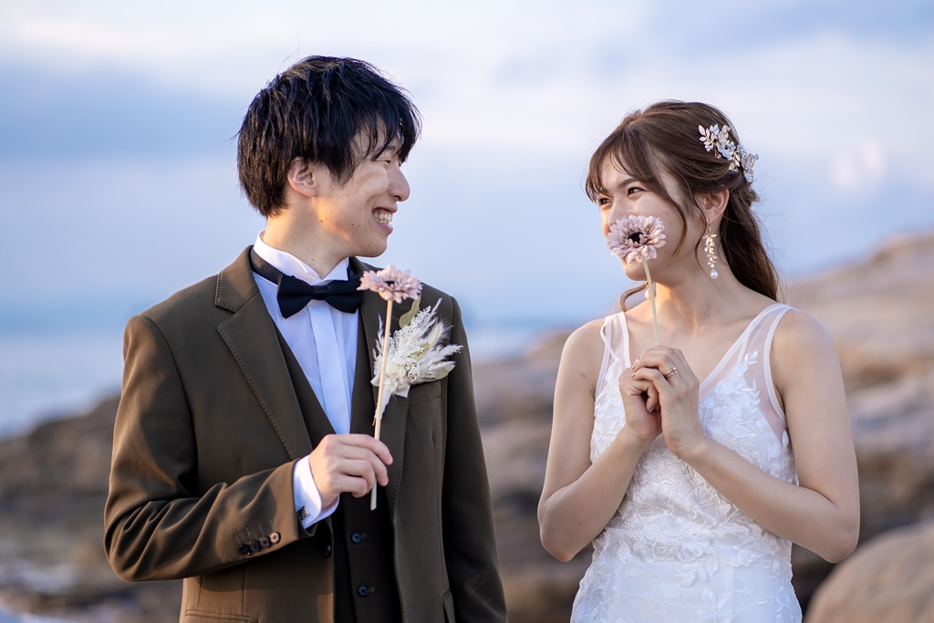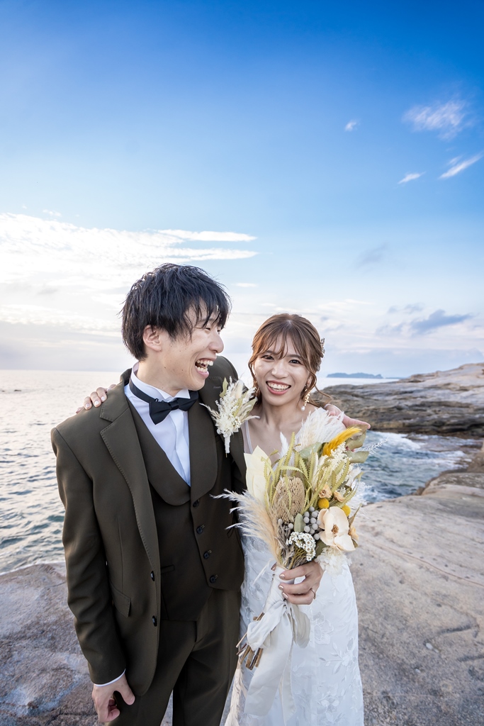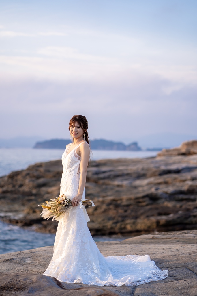 - The request to capture photos not only by the seaside but also in the greenery at Senjojiki was fulfilled. However, I was a bit disappointed because, although I had been informed beforehand that bringing fireworks would be allowed, I was told on the day of the shoot that fireworks should be avoided at that location. I wish this had been communicated earlier. Despite that, the hair and makeup artist and the photographer were very kind, and I was able to get the photos I was satisfied with. Thank you!