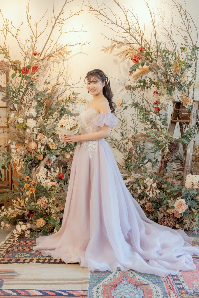 - At first, we didn't know what to do, and both of us were quite nervous. However, the photographer's comments during the shoot were very entertaining, and we gradually relaxed and were able to enjoy the session. For the Western-style shoot, they changed our hairstyles and makeup compared to the traditional attire, allowing us to capture beautiful photos with a different atmosphere.