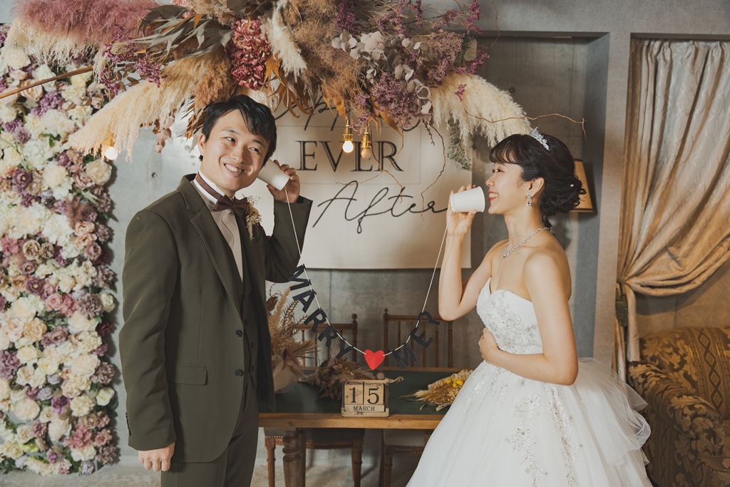 - When we decided to have a photo wedding, the bride wanted to wear a wedding dress, a colored dress, and a kimono, so we were looking for a studio where we could wear three outfits.