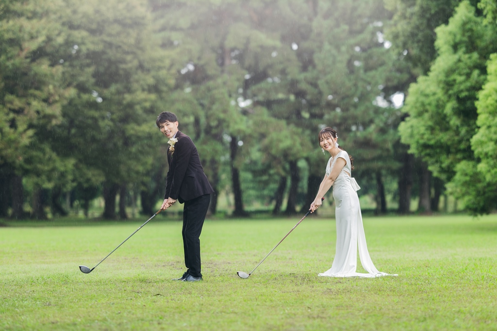 We hope that this shoot and the photos you took will be a wonderful memory for the two of you.The mermaid dress that suited the bride and her hobby of golf went well together during the shoot at Shonai Ryokuchi Park, and I am sure the photos were very unique to the two of you!