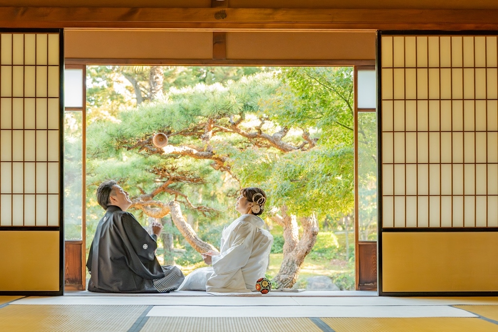 The couple was photographed on location at Rokkaen in both Western and Japanese style!