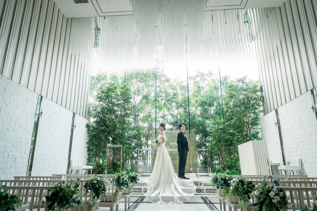 A wedding photo that perfectly captures the essence of a chapel and nature☆彡