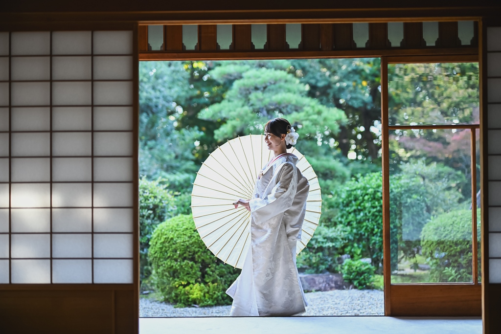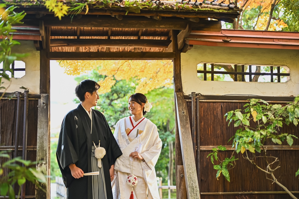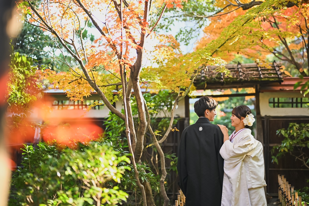 A happy wedding photo time at Higashiyama Villa, where both the greenery and autumn leaves shine brightly. ♡