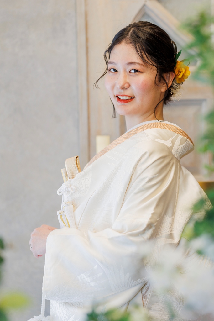 I hope that it has become an unforgettable memory for you☺.Photos of the bride wearing a cotton hat in kimono, and photos of her in kimono with her hair arranged,