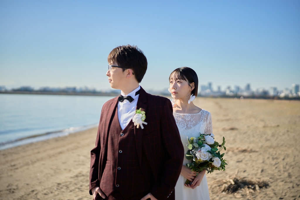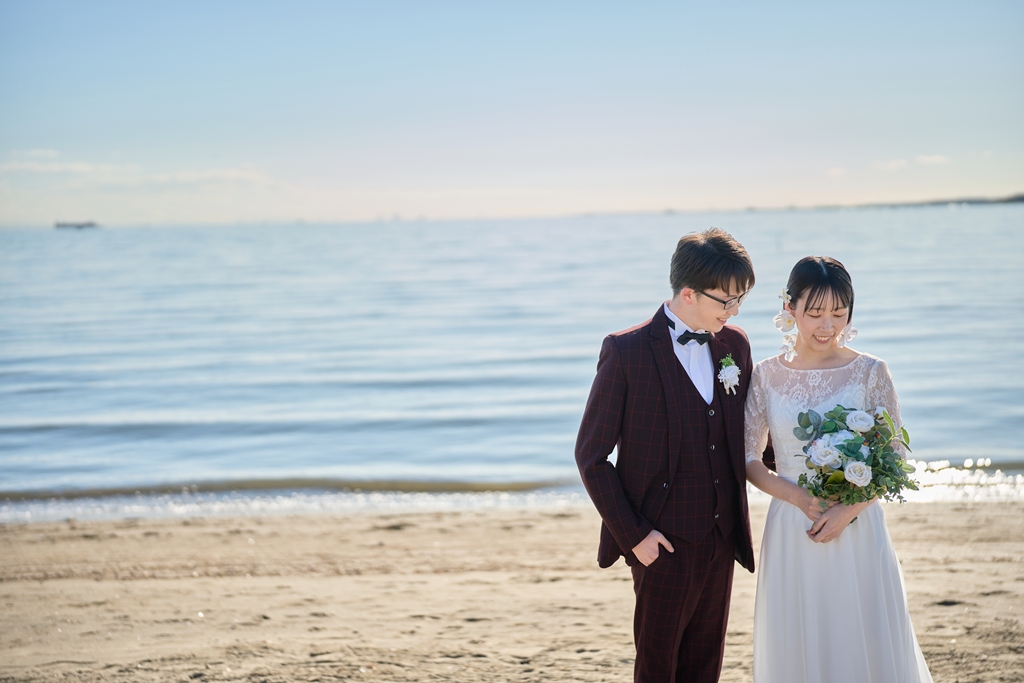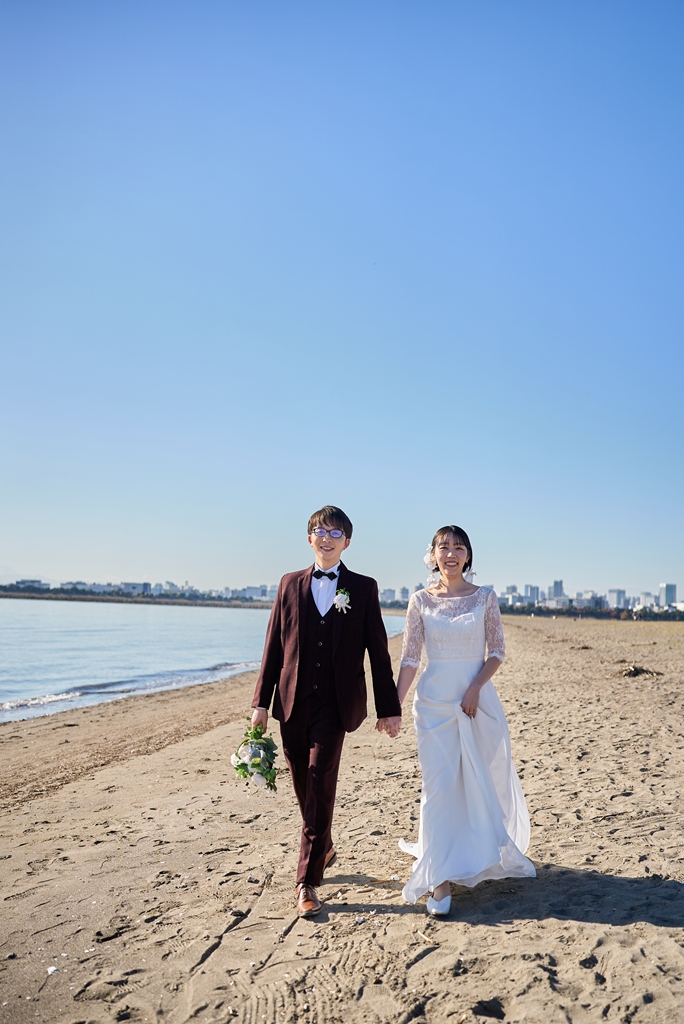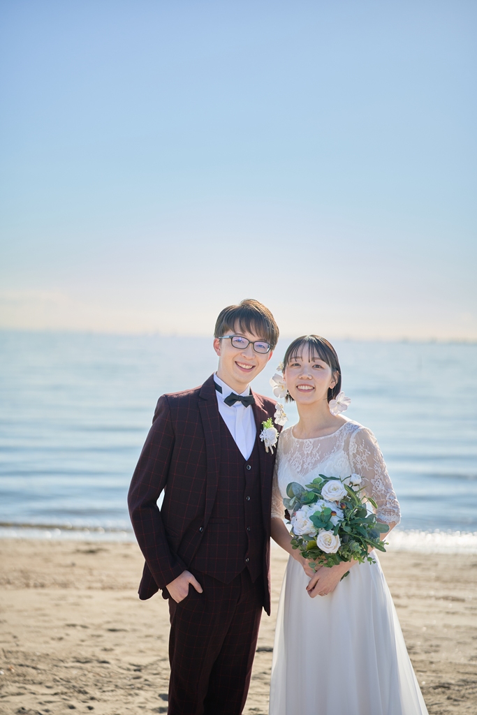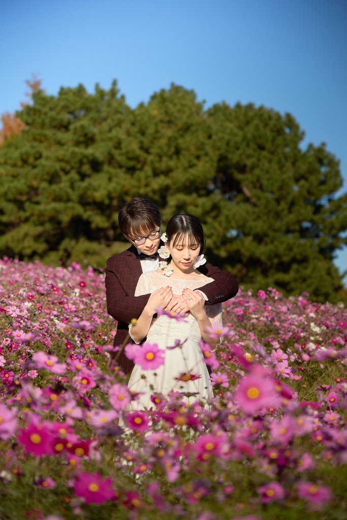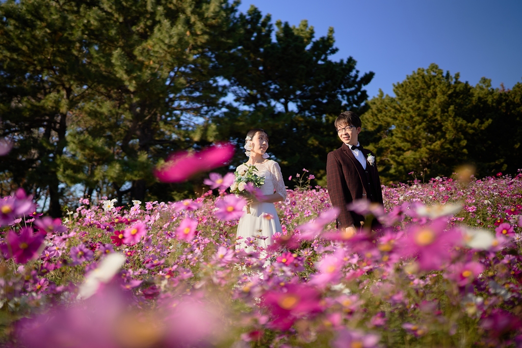 Thank you once again for all your hard work on the location photos at Kasai Rinkai Park!Under the clear autumn sky, with the sun shining on you two and the sea in the background, you were able to spend a special day together with your shining smiles.