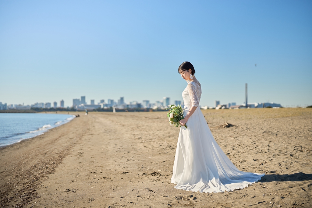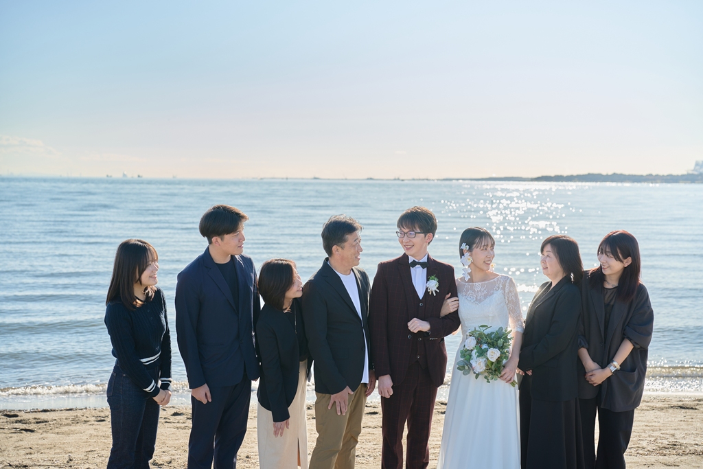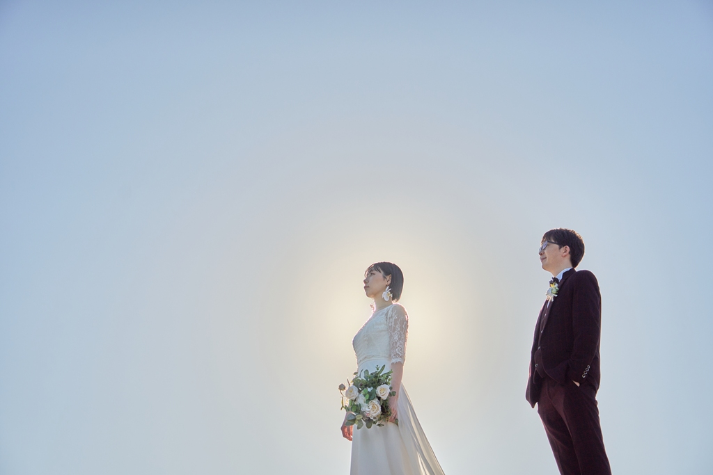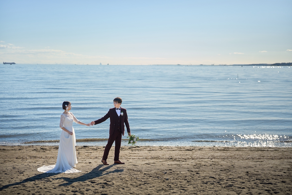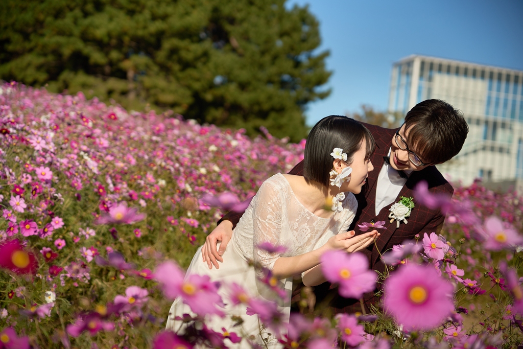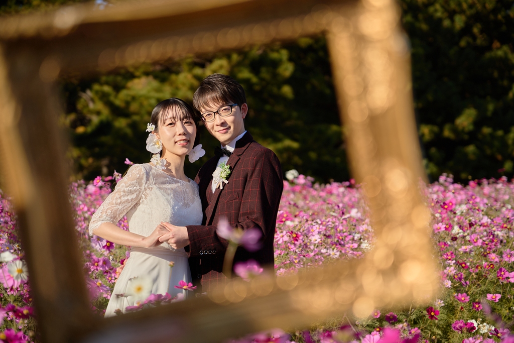 Thank you once again for all your hard work on the location photos at Kasai Rinkai Park!Under the clear autumn sky, with the sun shining on you two and the sea in the background, you were able to spend a special day together with your shining smiles.