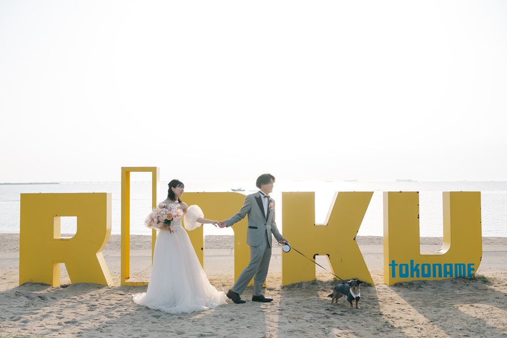 Wedding photos with your beloved dog at Rinku Beach 🐕