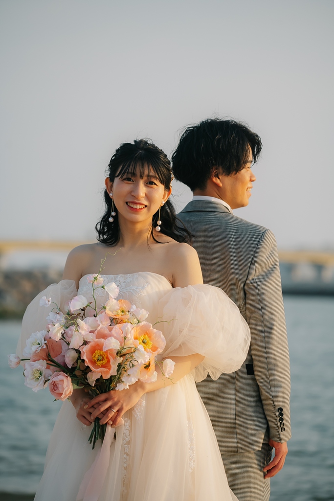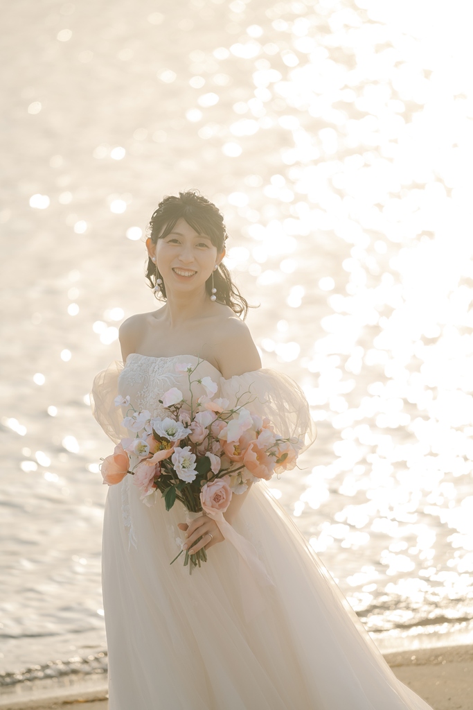 - I don't usually take photos, so I didn't know how to pose, but the photographer gave me precise instructions, so I was relieved. Since we were shooting at the beach, I was worried that my hair would fly away, but the makeup artist touched it up as needed, so my appearance was always good.