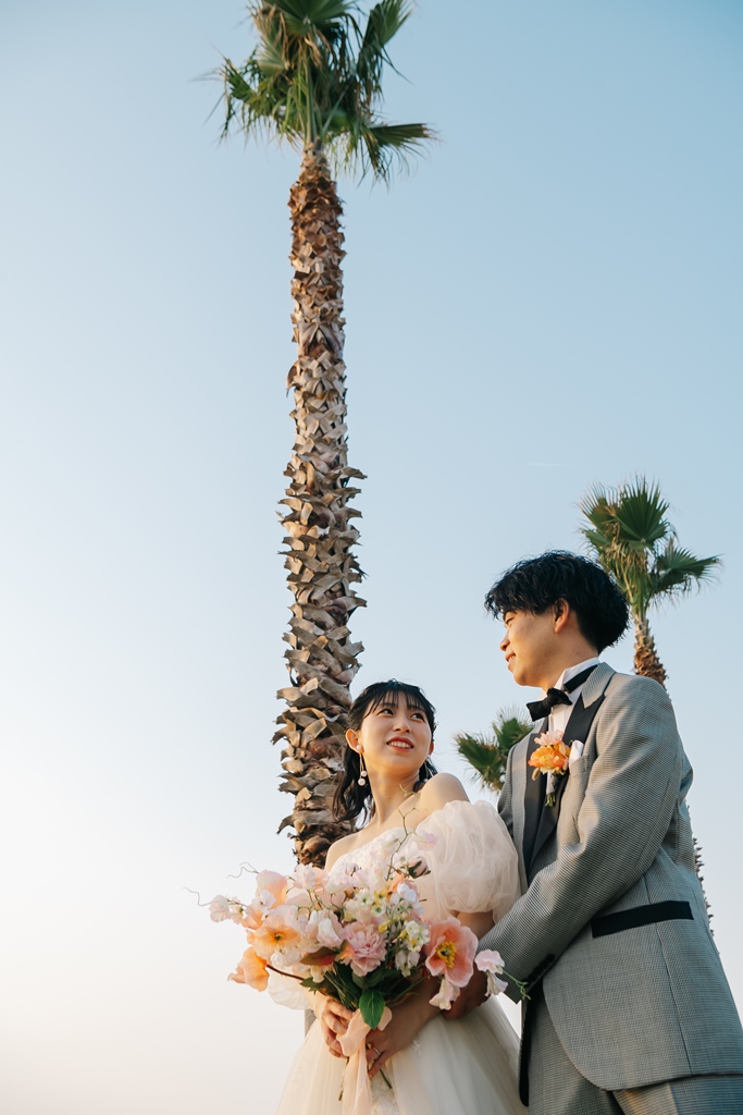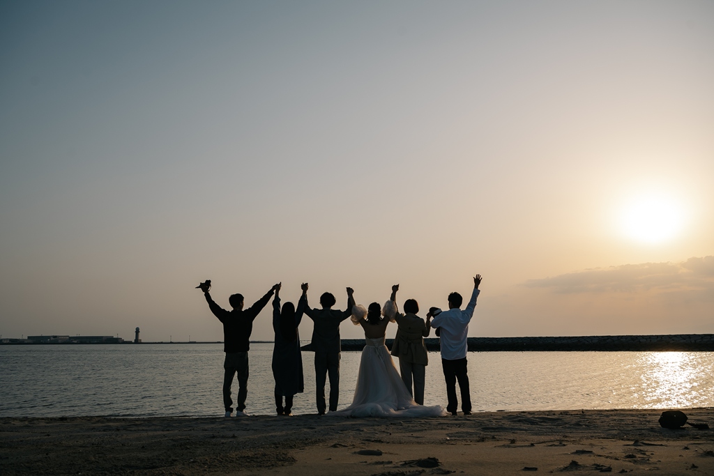 STAFF A word of thanks from the staff. Congratulations! Thank you so much for your hard work at the studio at Rinku Beach. Seeing you two having so much fun preparing for the day made us share in your happiness. You looked great in those cute outfits, and all the photos came out amazing! Thank you so much for entrusting The Sky Wedding with your important photo shoot. All of our staff wish you both a long and happy life together.