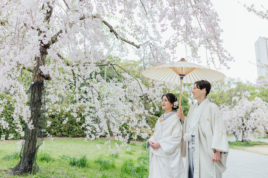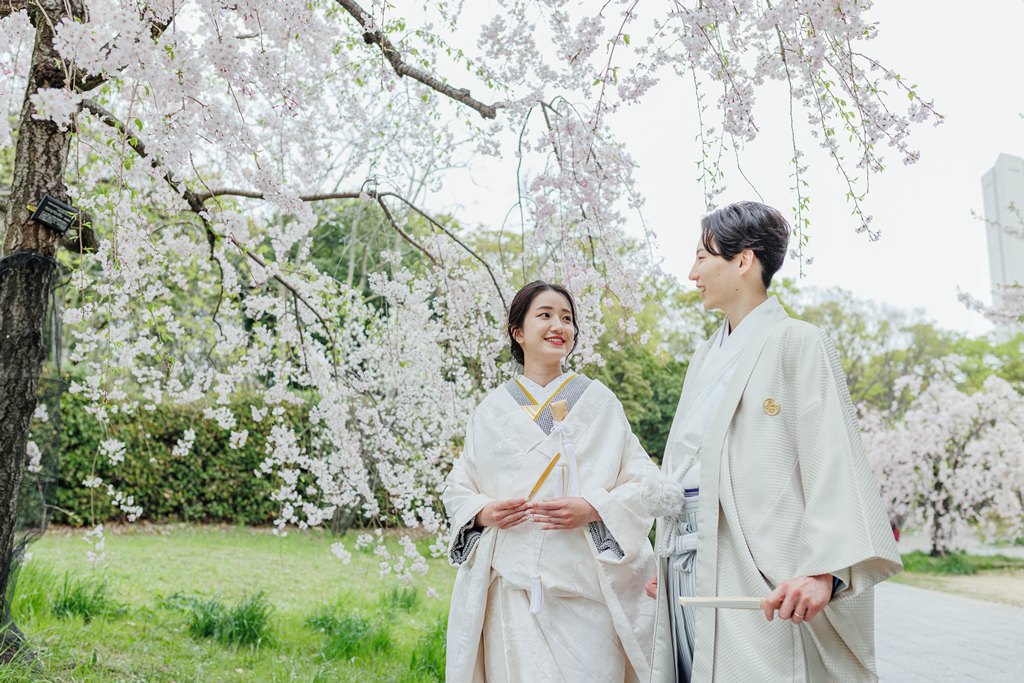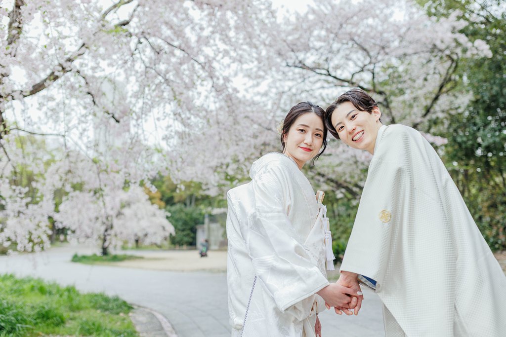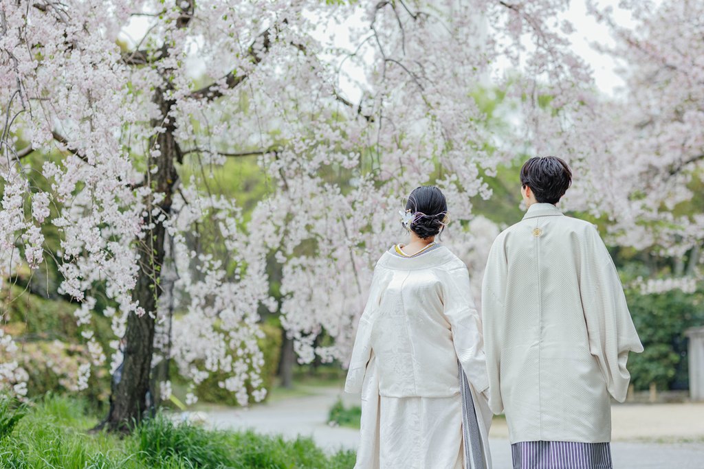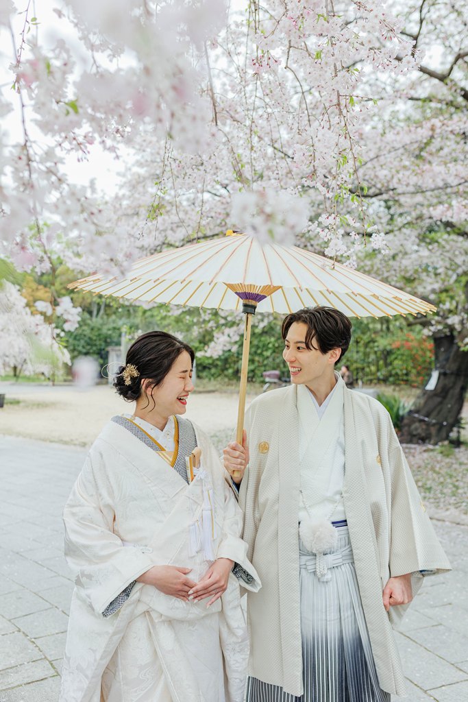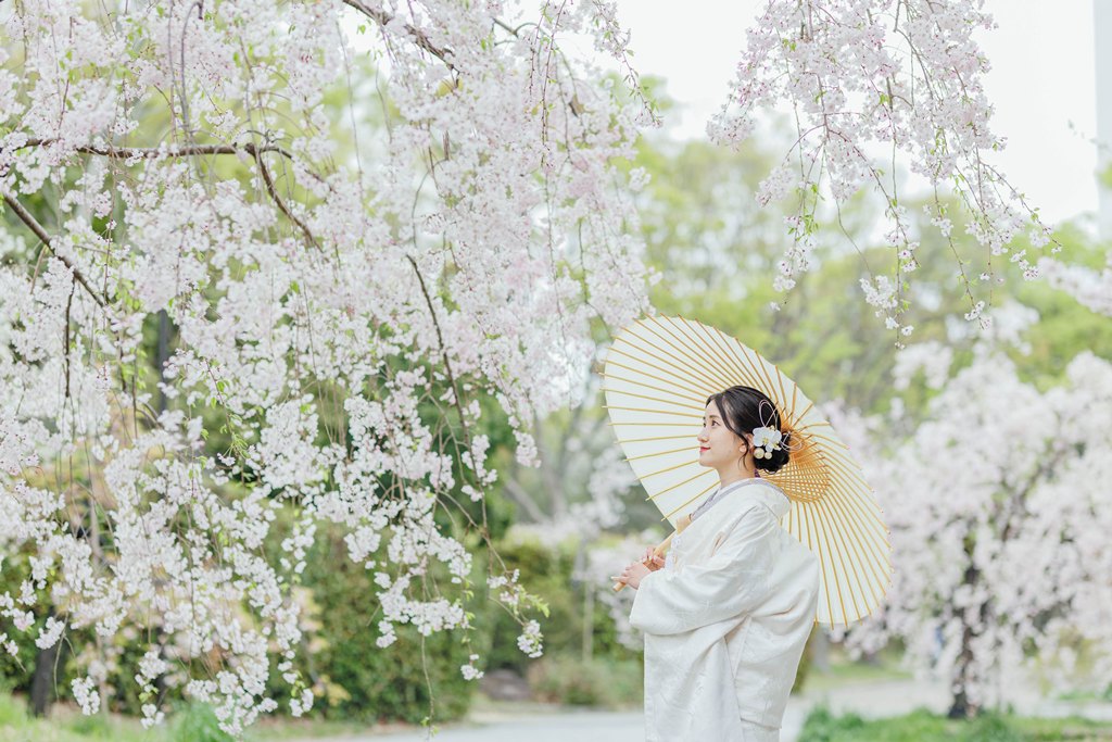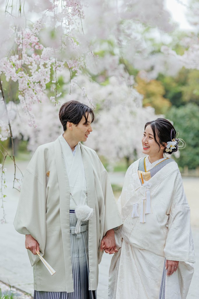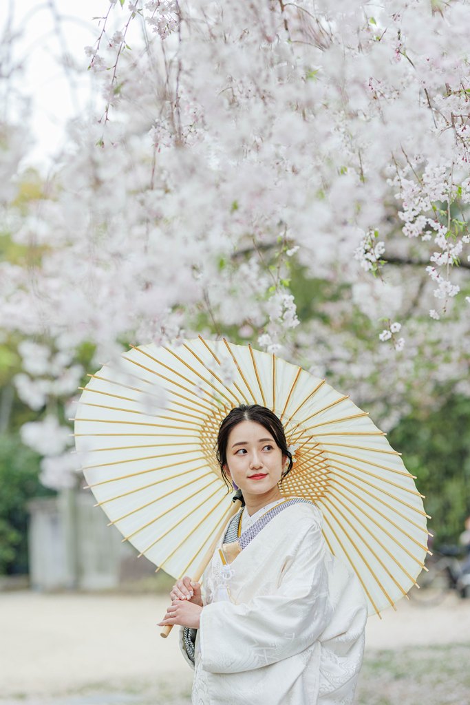 The color of the cherry blossoms matches the color of your kimono, and all of the photos are very cute.