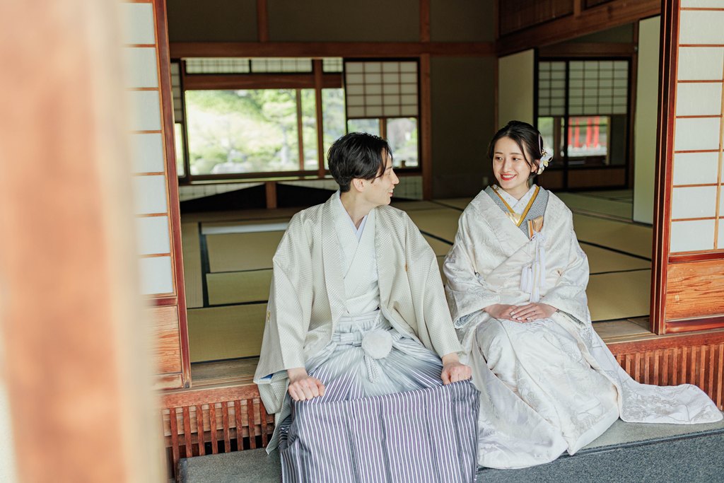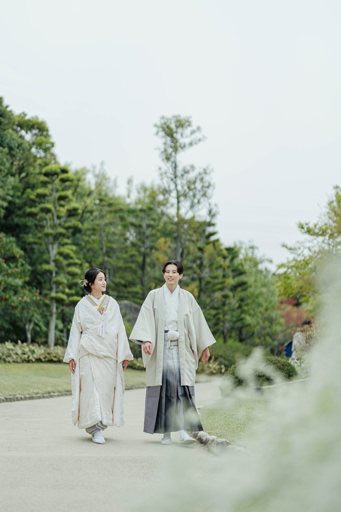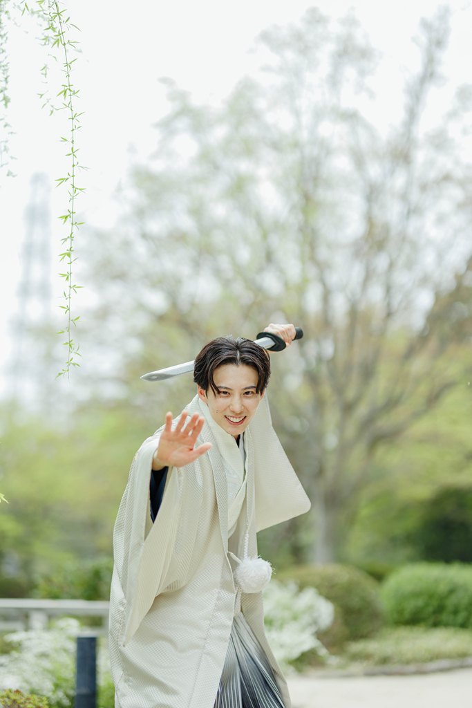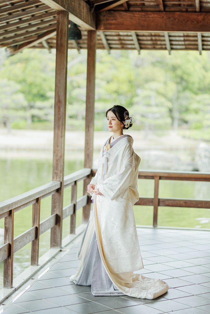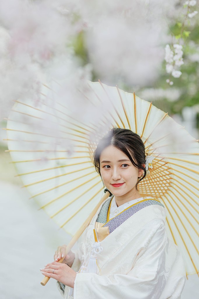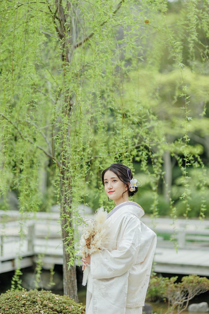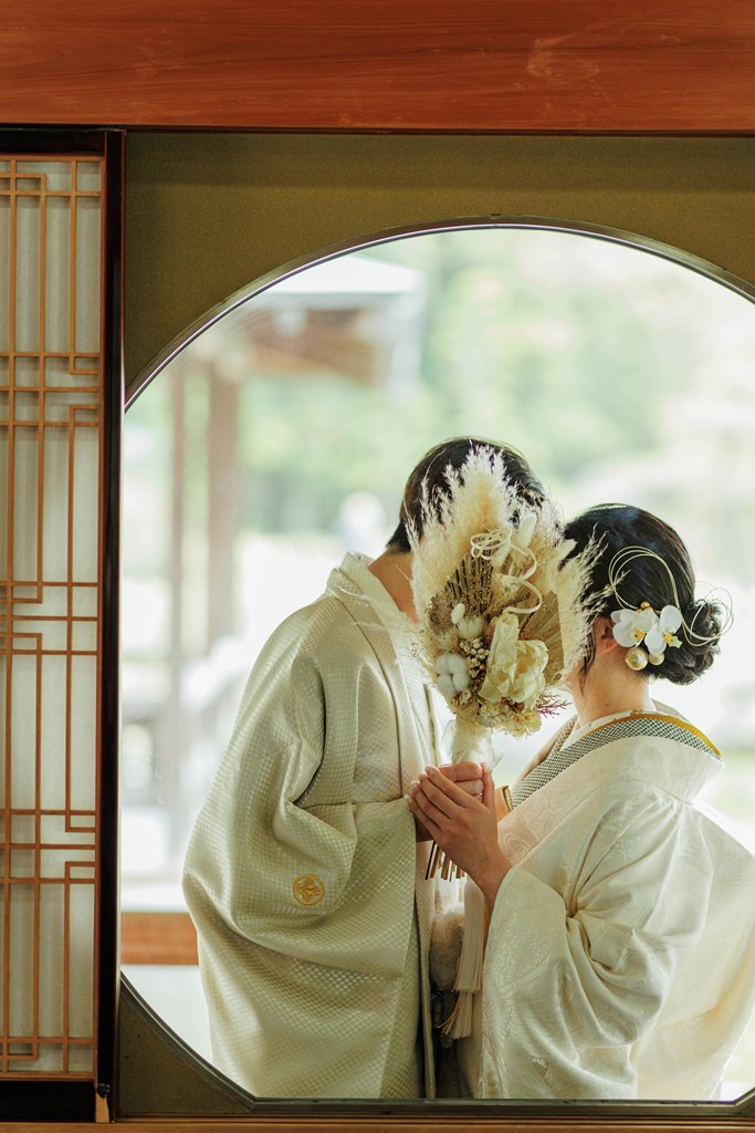 The white dried flower bouquet also matches the color of the kimono and is very cute ♡.