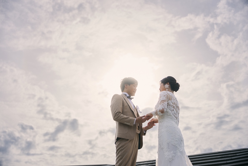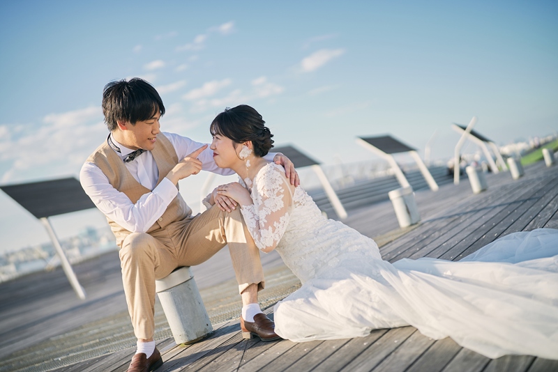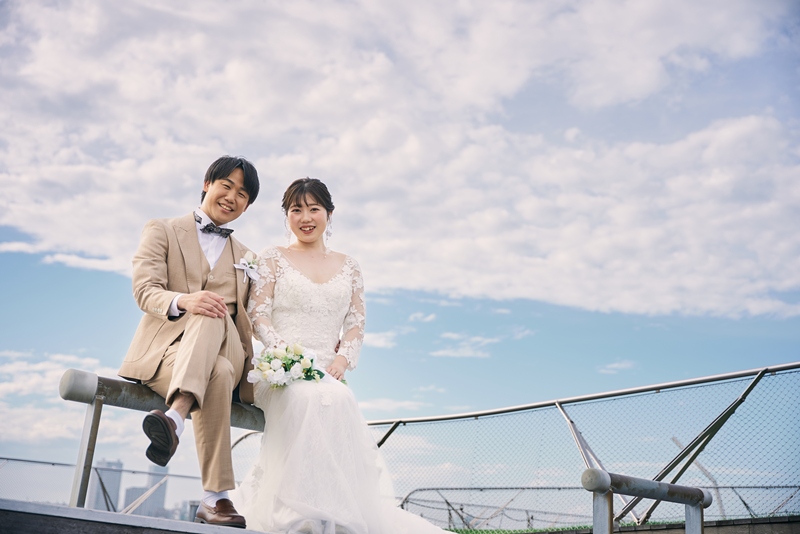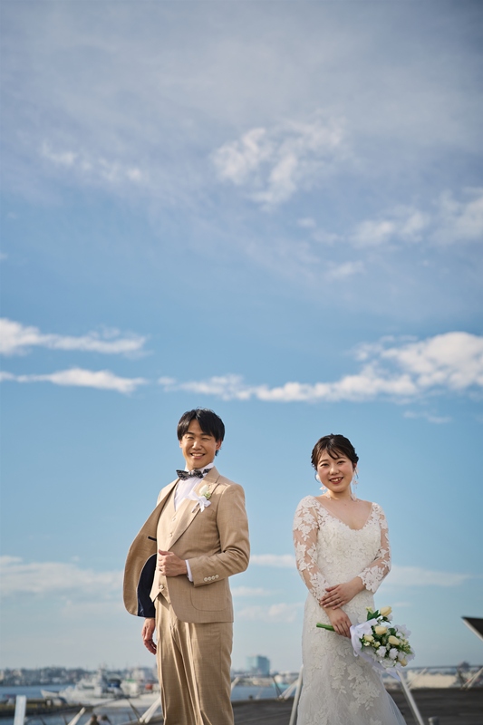 Although the weather forecast predicted rain right up until the day before, it turned out to be beautifully sunny, and we were so relieved! As the shoot went on, the weather improved even more, and by the latter half, we had clear blue skies — resulting in a series of fresh, stunning photos.