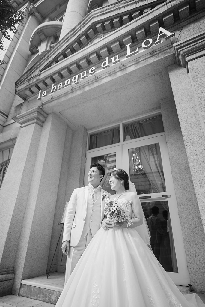 When the two of you stood side by side, illuminated by the solemn and beautiful light of the chapel, it was as if we were watching a scene from a movie—dramatic and breathtaking. The simplicity and elegance of your attire harmonized perfectly with the serene atmosphere of the chapel, and the smiles and glances you exchanged radiated a brilliance that will never fade.We believe that a pre-wedding shoot is not just about commemorative photos, but about capturing “a meaningful beginning to the life you will walk together.” By stepping away from the everyday and standing on a special stage, your bond and resolve as a couple take visible form. That essence was beautifully present in your chapel session at La Banque du LoA.