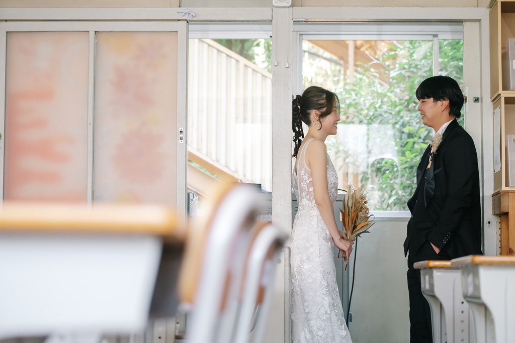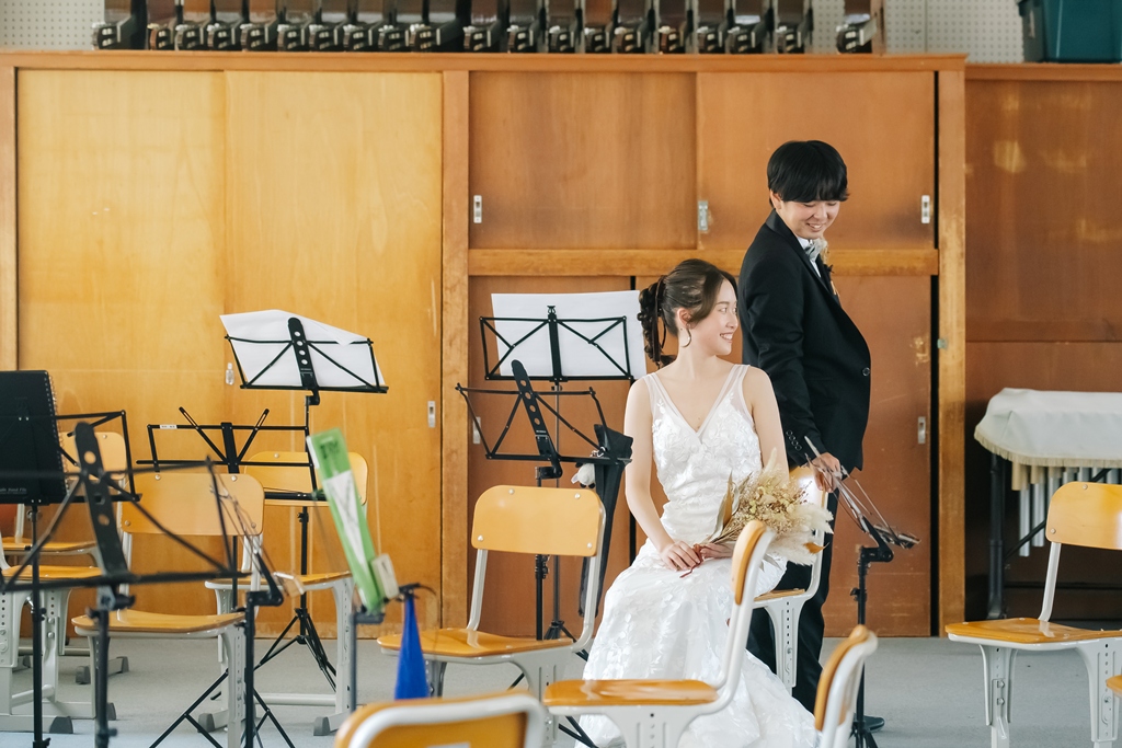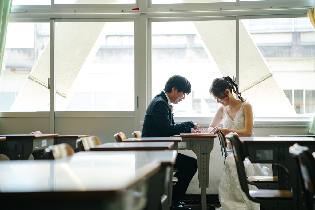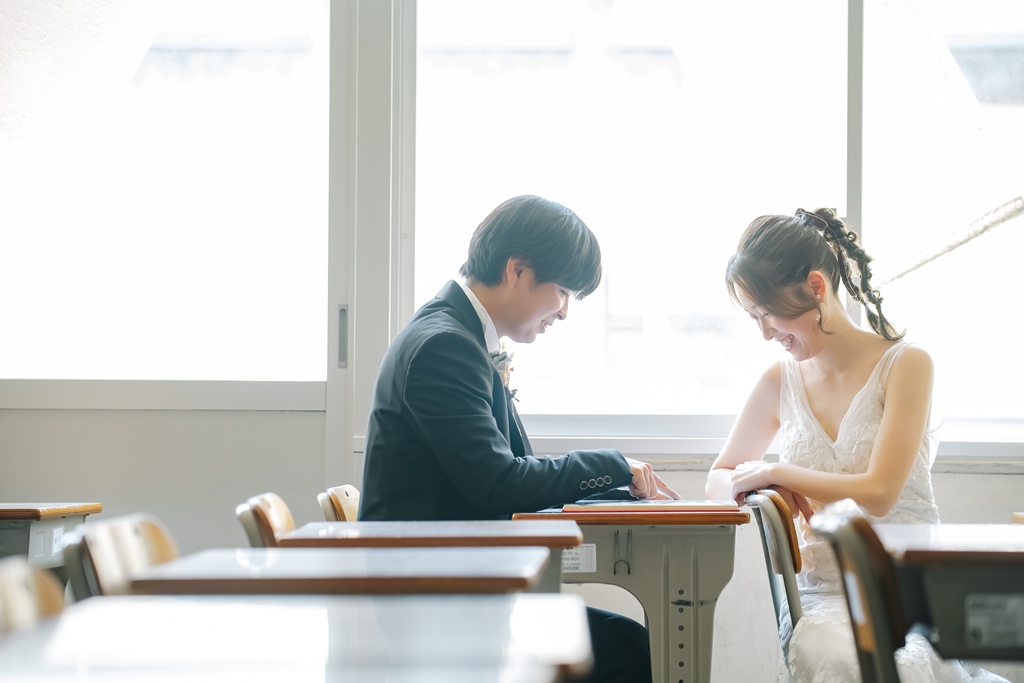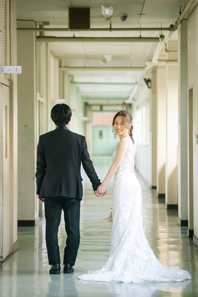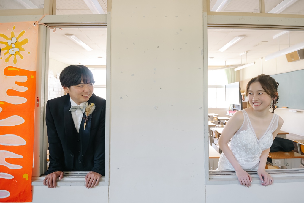 Enjoy the stylish charm of your Western attire to the fullest, while also feeling the warmth that only a memorable location like Agui Junior High School can provide—this truly is a pre-wedding experience unique to you both. Treasure this moment and continue to create countless happy memories together.
