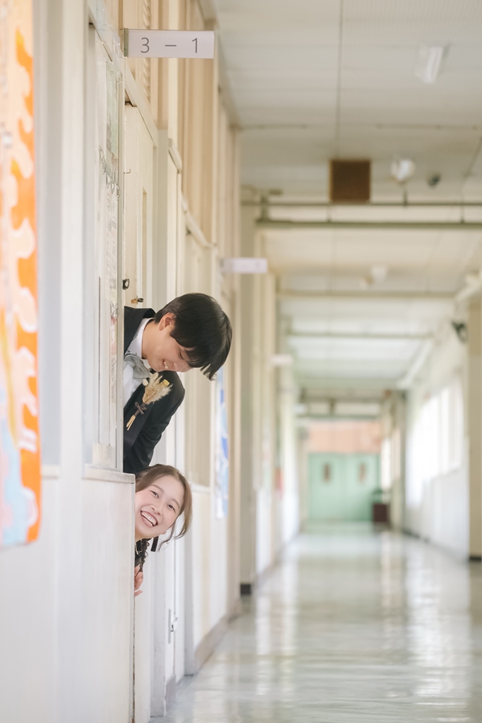 Because the school is a familiar and nostalgic setting, your natural smiles and gestures stand out, turning every moment into a priceless memory for the future. The classrooms, schoolyard, and hallways all became the stage for your unique story, and when combined with the elegance of your Western attire, they created an unforgettable pre-wedding experience unlike any other.