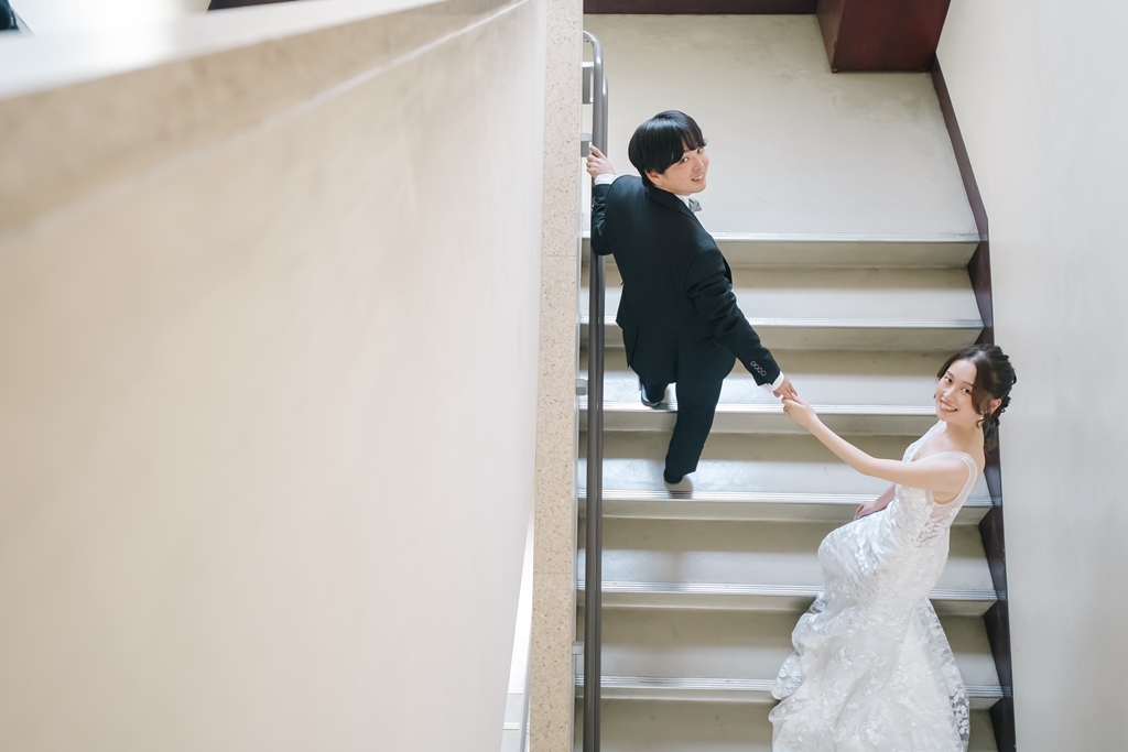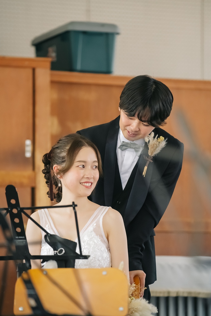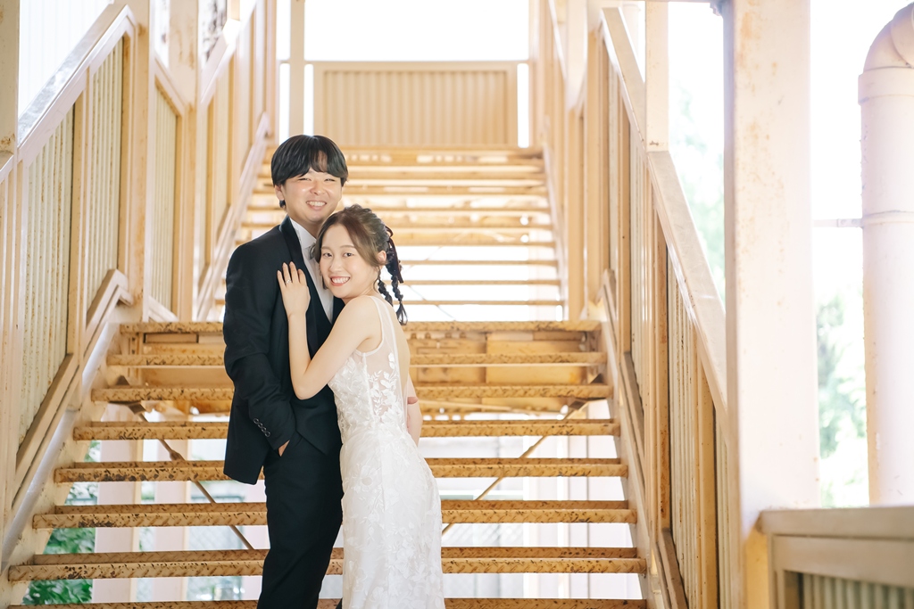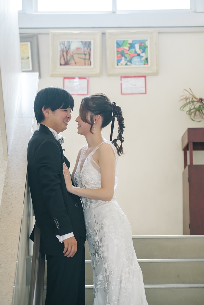 STAFF A word of thanks from the staff. Thank you very much for letting us share a special pre-wedding photoshoot in Western attire at the meaningful location of Agui Junior High School. The outfits you chose perfectly express both sophistication and your unique personalities, and the care and thought you put into each look shine beautifully in the photos.